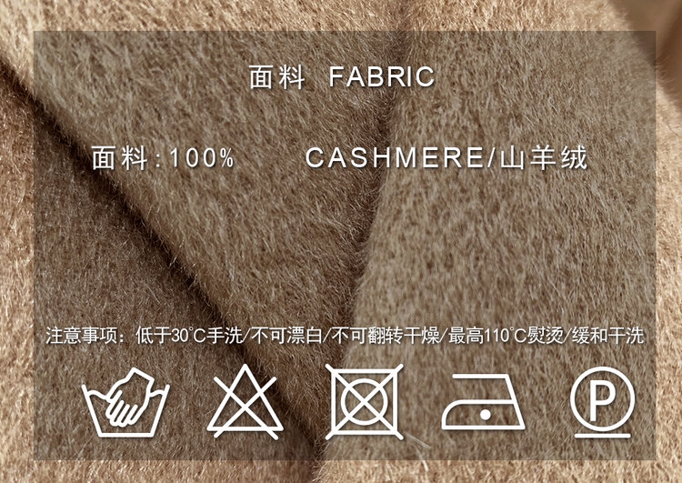 遴选厚全羊绒双面呢,光泽低调雅致,温暖升级,剖缝处嵌入优质欧根纱衬工艺,使成衣挺阔有骨感。