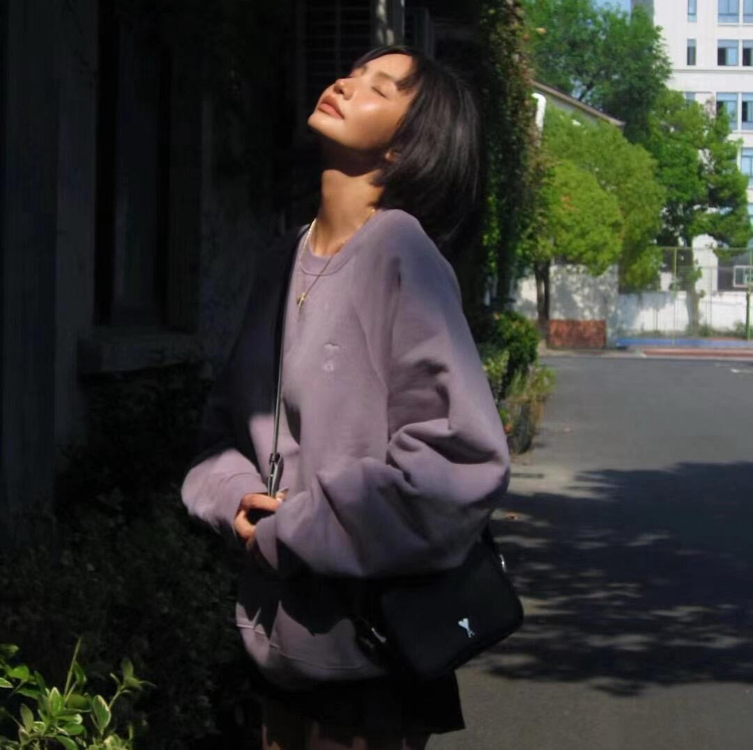 丁香紫是一种柔软的粉感薰衣草色调,看到它,瞬间想起薰衣草精油的味道,好舒心,随便搭一条裤子,厚度刚刚好、刚需款满满的活力感、超治愈,又是减龄神器