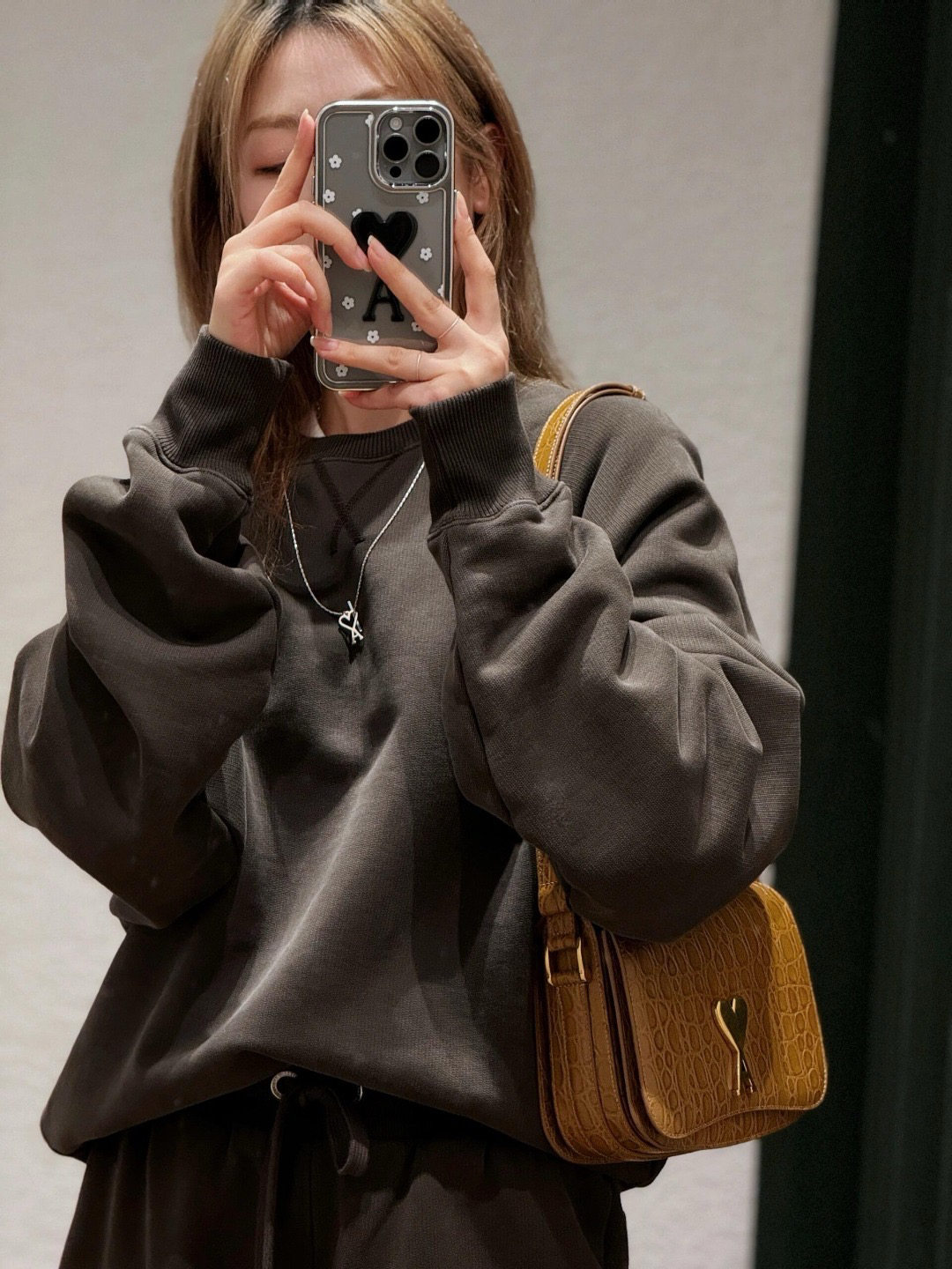 微微宽松的剪裁恰到好处的修饰身材,不显臃肿,对标定染的低饱和色调内敛且高级 ,日常简单易搭配,实穿度1000%