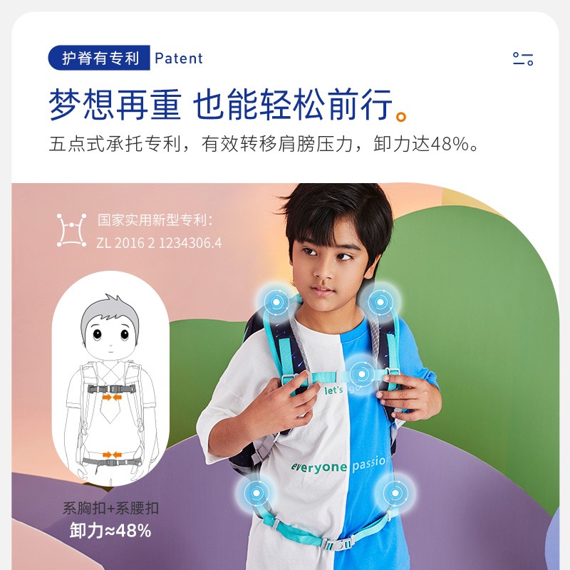 9楼大将作 梦乐护脊轻便防水男女1~3年级通用书包减负2023年新款19L容量