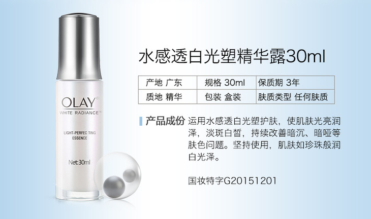 现货▲Olay/玉兰油小白瓶水感透白光塑精华露面部祛斑精华液保湿小滴管 30ml 泰版
