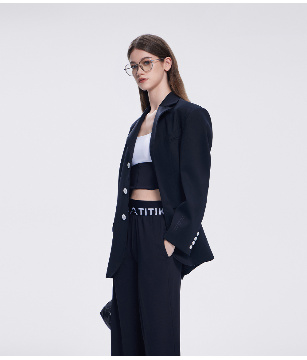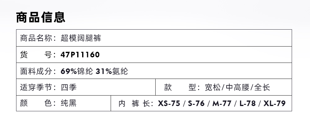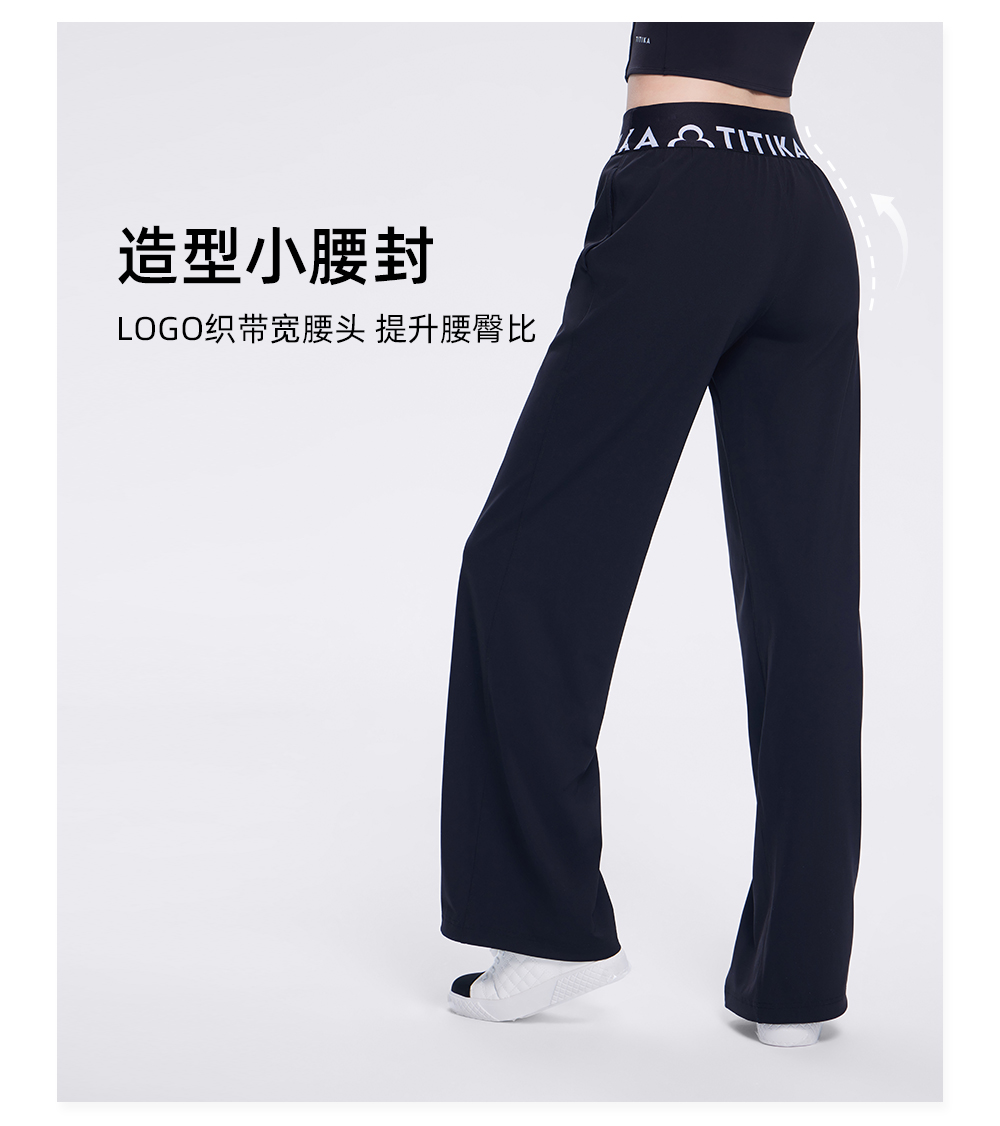 TITIKA黑色阔腿裤中高腰超模裤宽松休闲裤运动健身户外垂感长裤11160