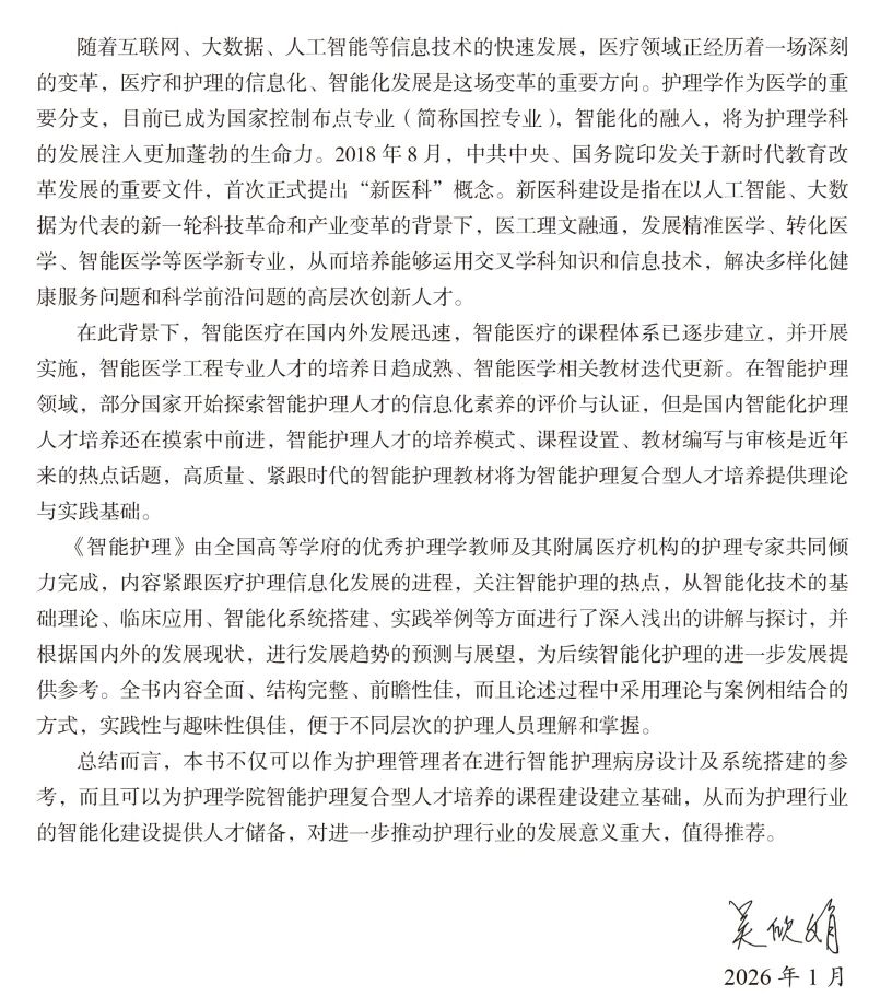 以智能护理场景为核心,拆解 AI、物联网等技术在临床护理、居家护理中的实操应用,避免理论与实践脱节。