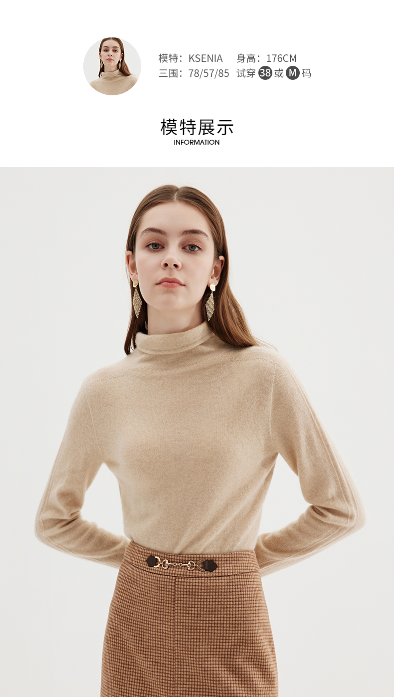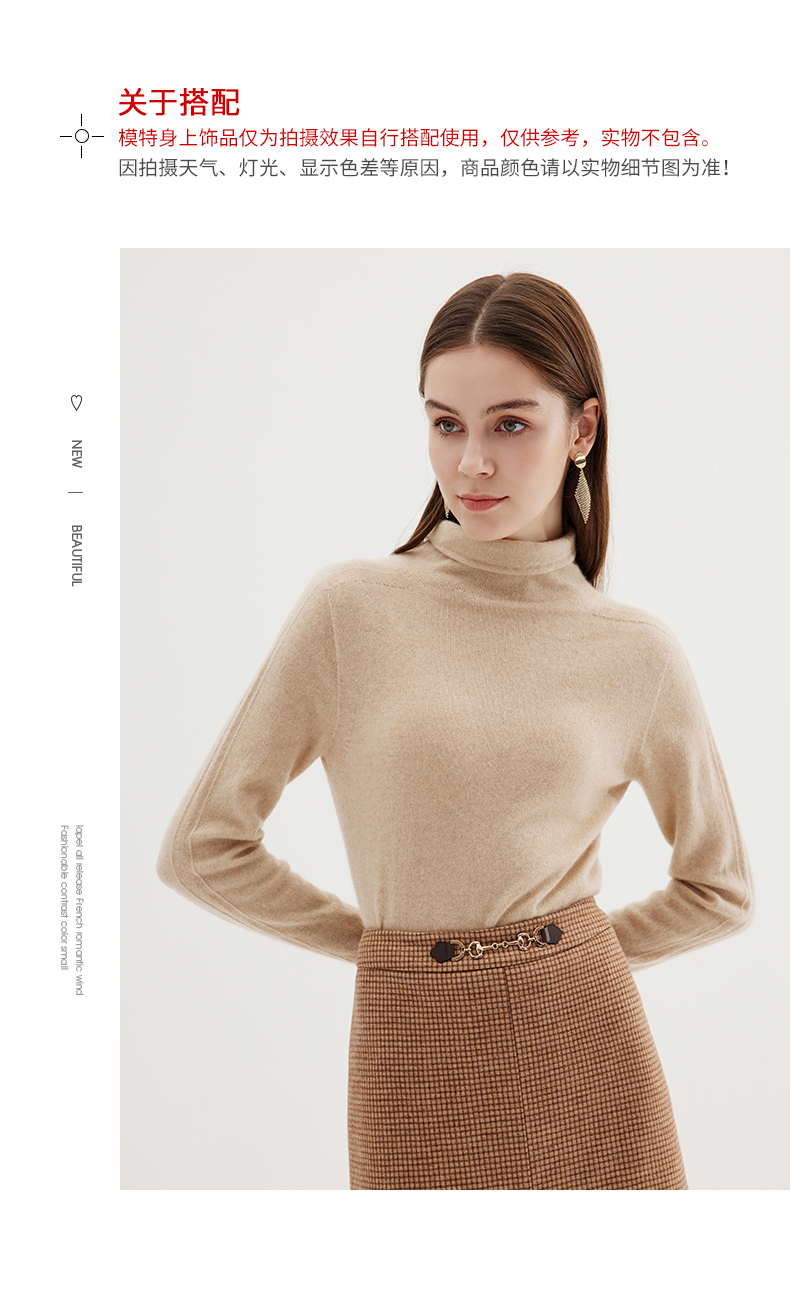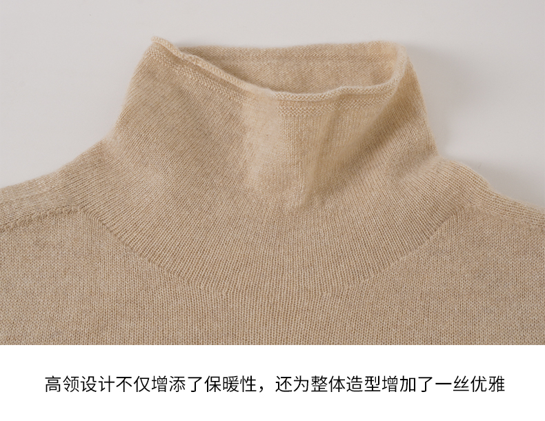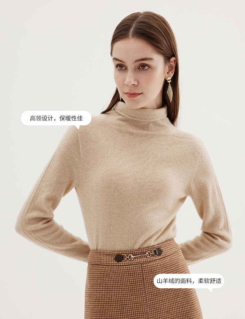 EITIE爱特爱冬季新款100%山羊绒舒适保暖高领套头纯色显瘦针织衫7201906