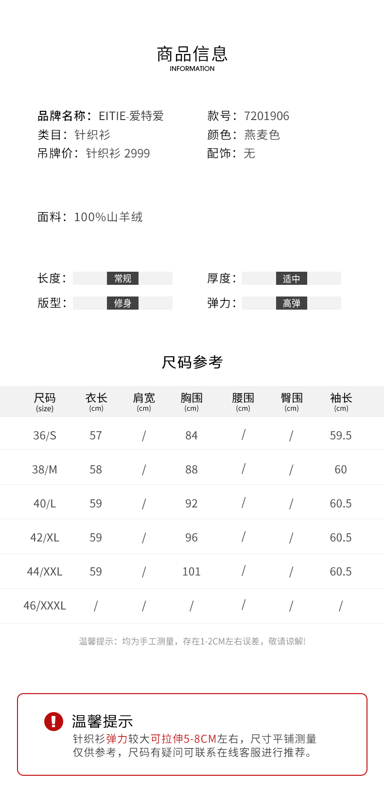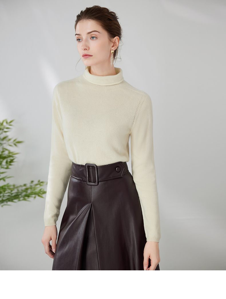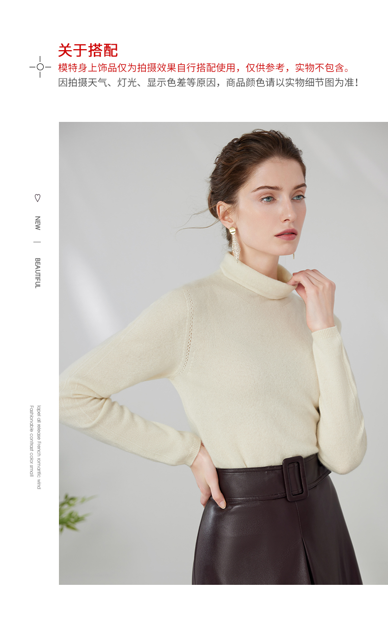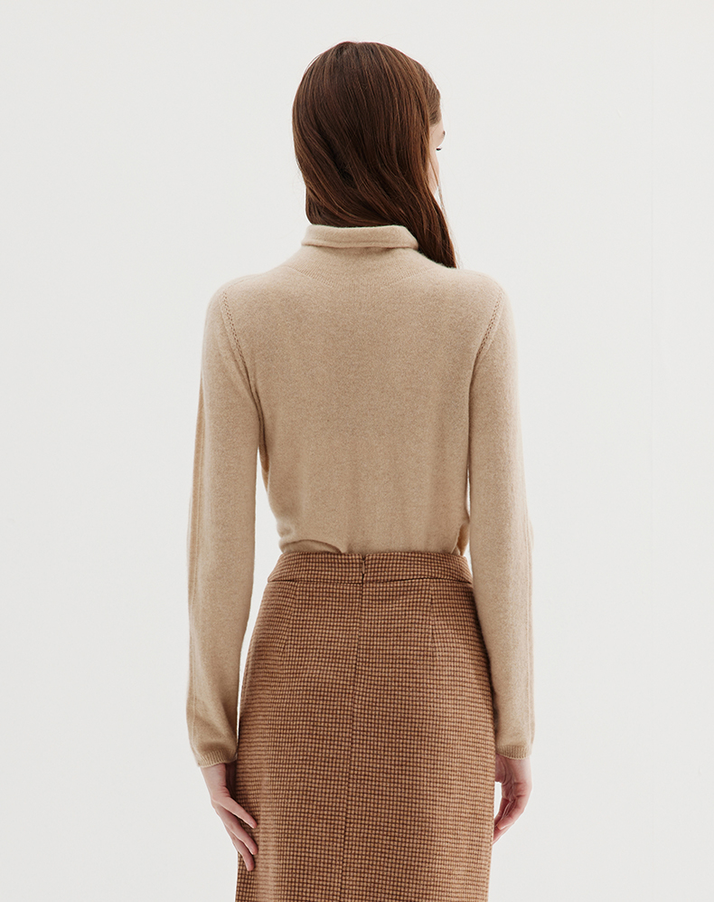 EITIE爱特爱冬季新款100%山羊绒舒适保暖高领套头纯色显瘦针织衫7201906