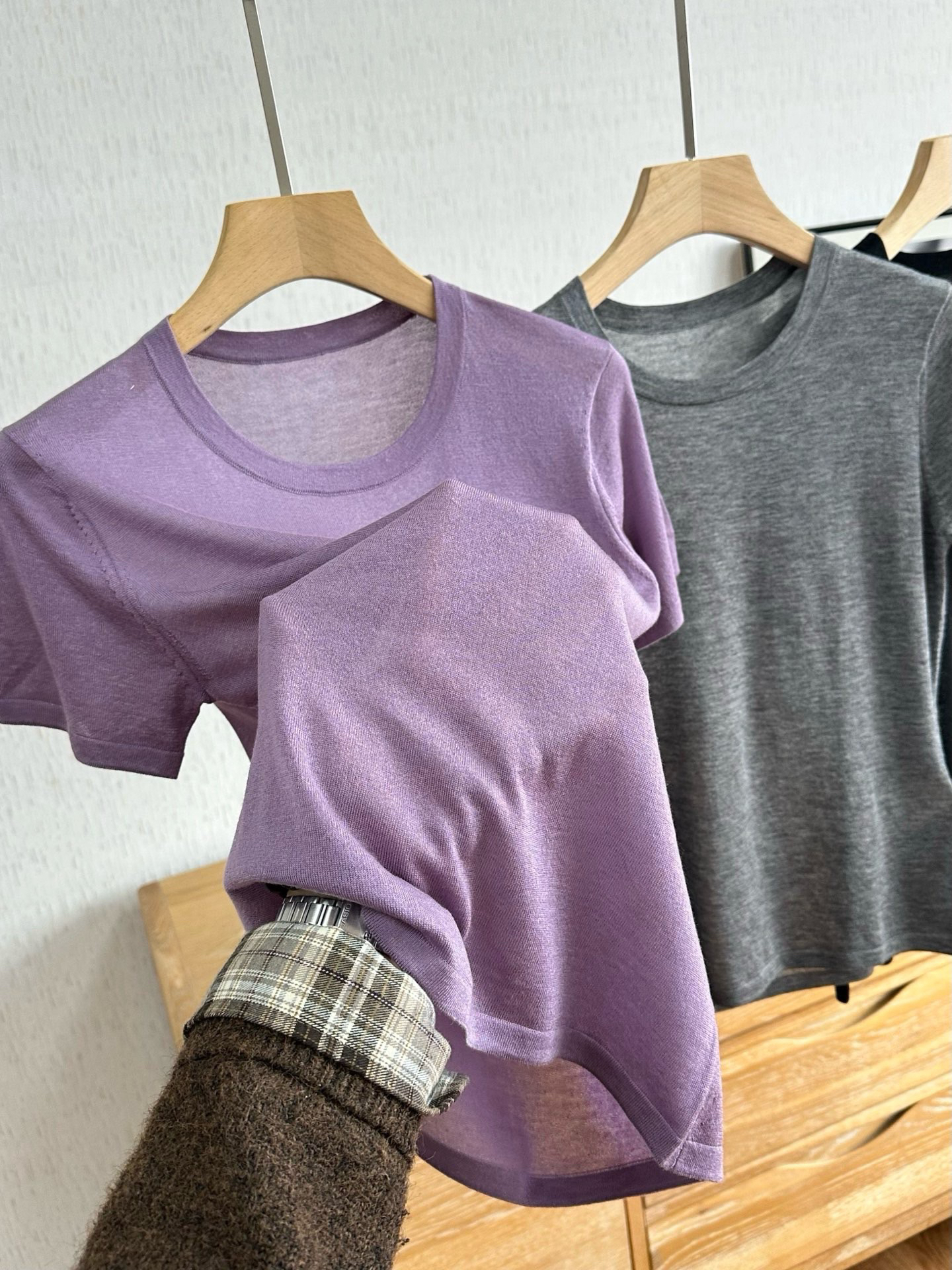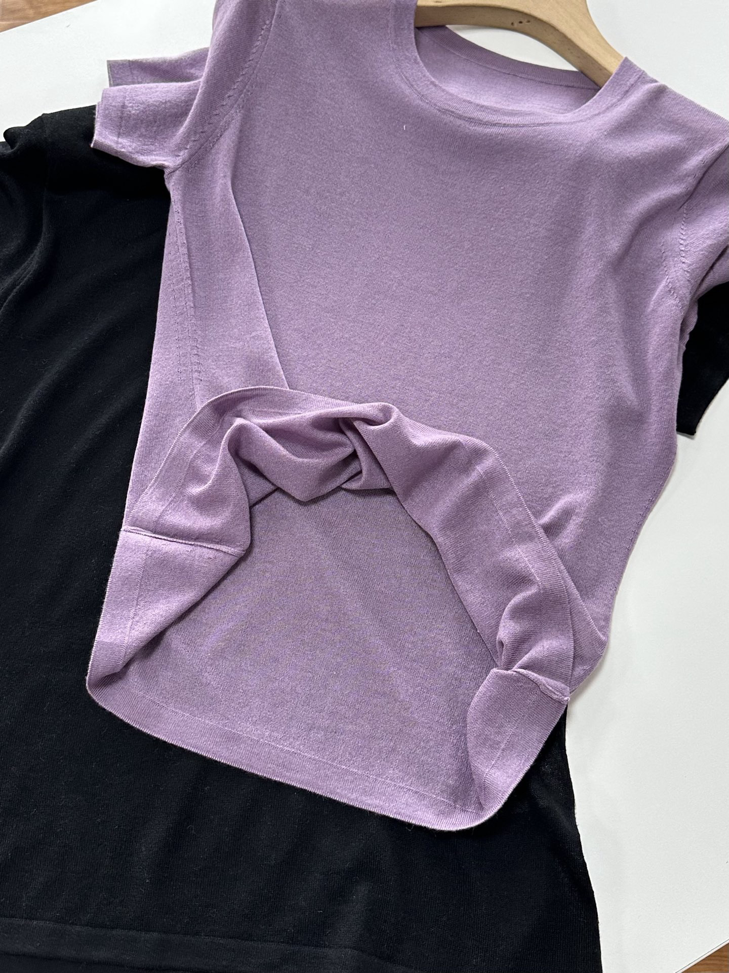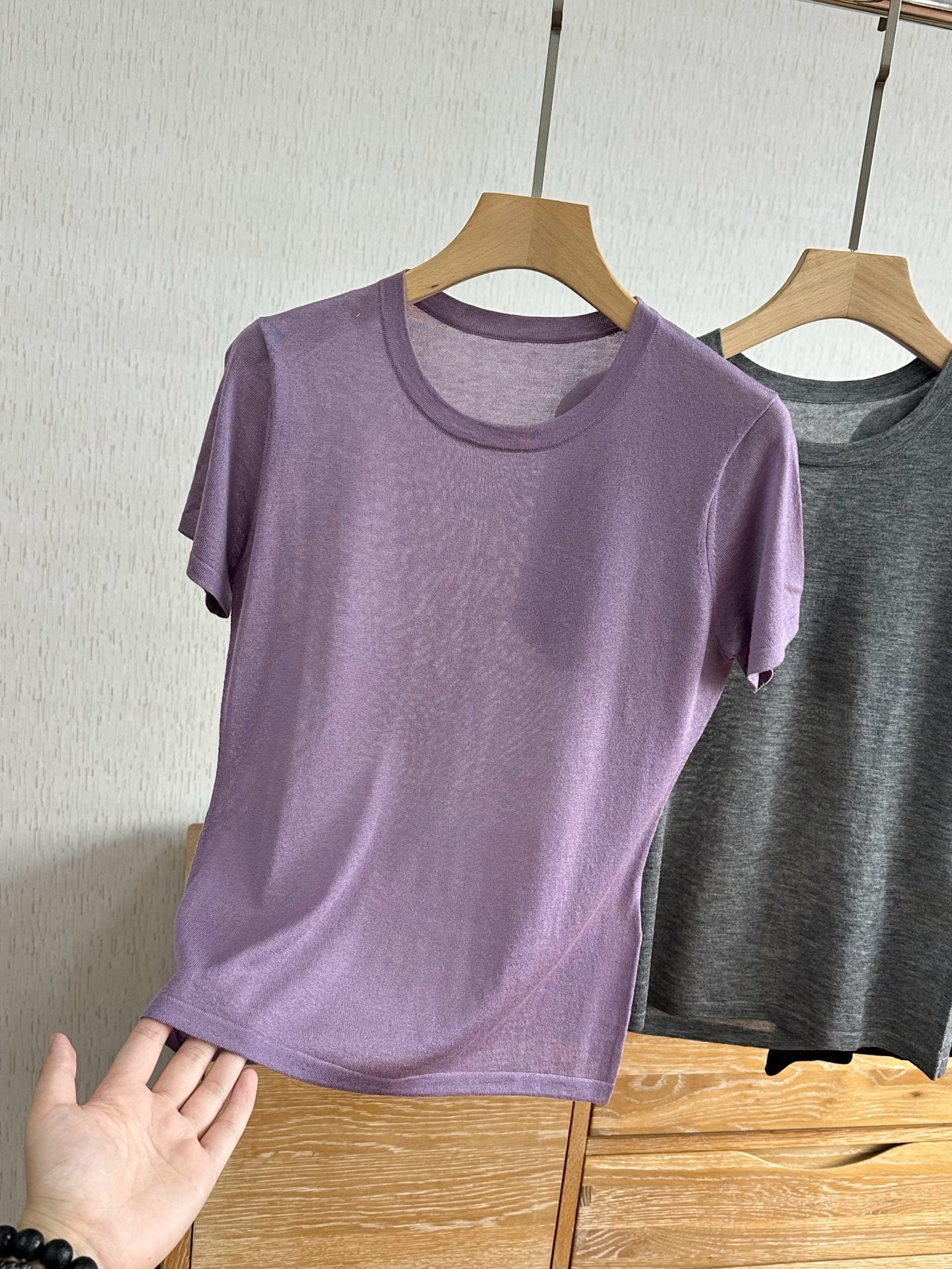 细如发丝,薄如蝉翼,重点是还显瘦!!越薄的衣服越容易显胖这是众所周知的,但是好的纱线能改变一件衣服的形态,这就是它的价值,所谓贵有贵的道理!!真正的四季款,羊毛温润细腻所以秋冬贴身不返凉,天丝赋予清透垂坠所以夏季贴身柔滑舒适,解锁云朵般裸感体验。