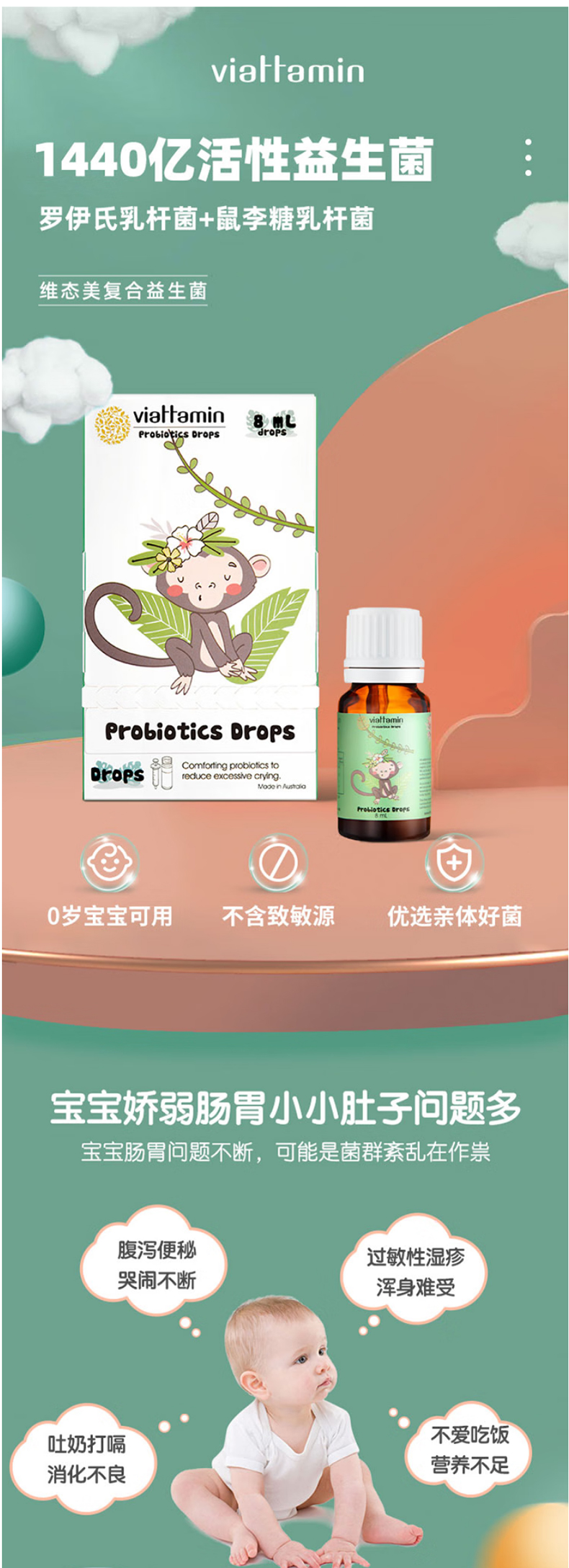 【保质期至24年11月15日】维态美益生菌滴剂婴儿宝宝罗伊氏乳杆菌鼠李糖乳杆菌LGG澳洲进口8mL
