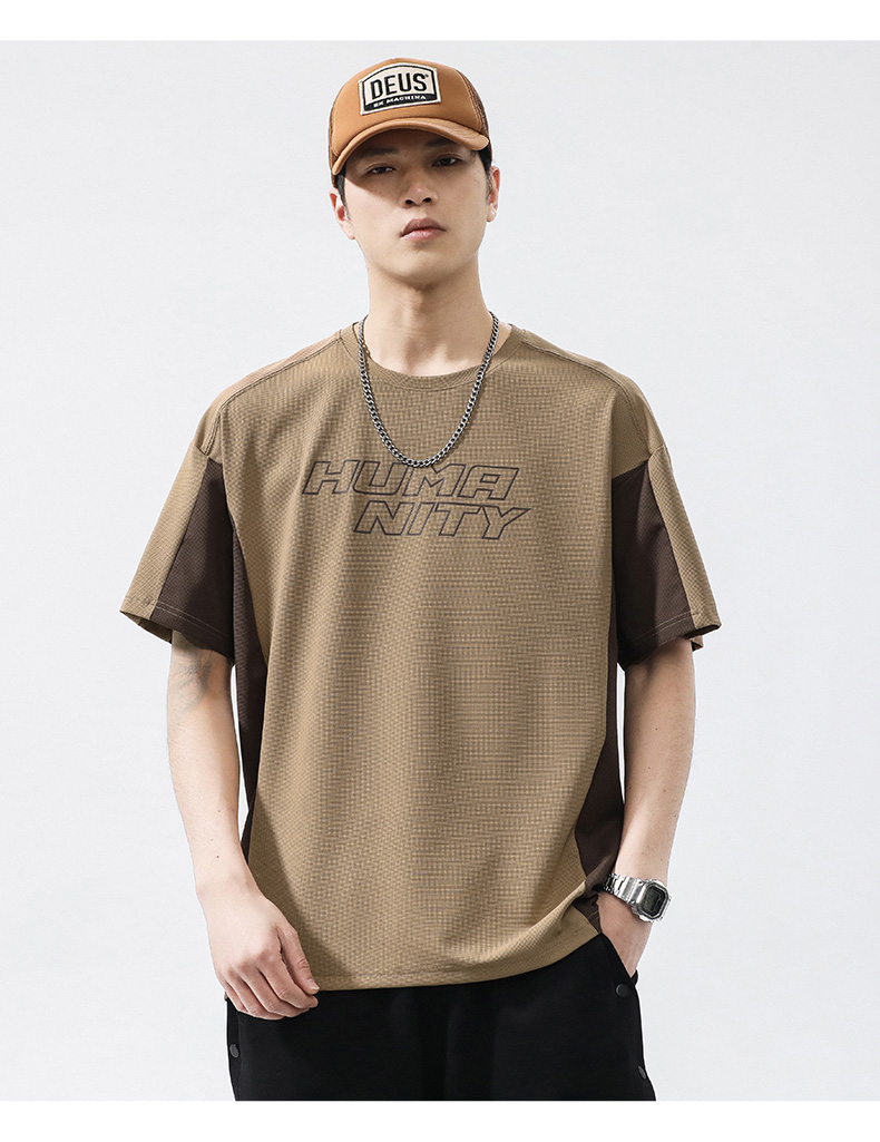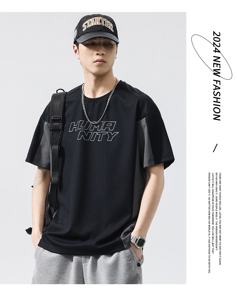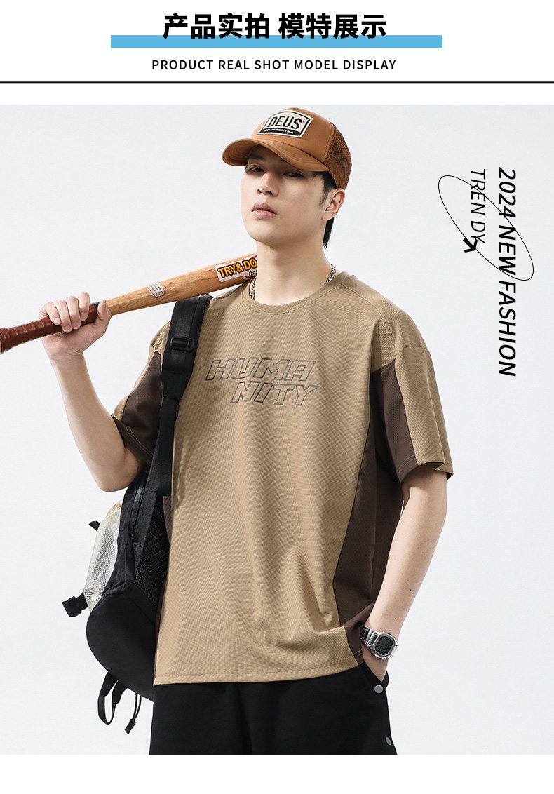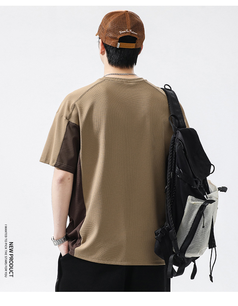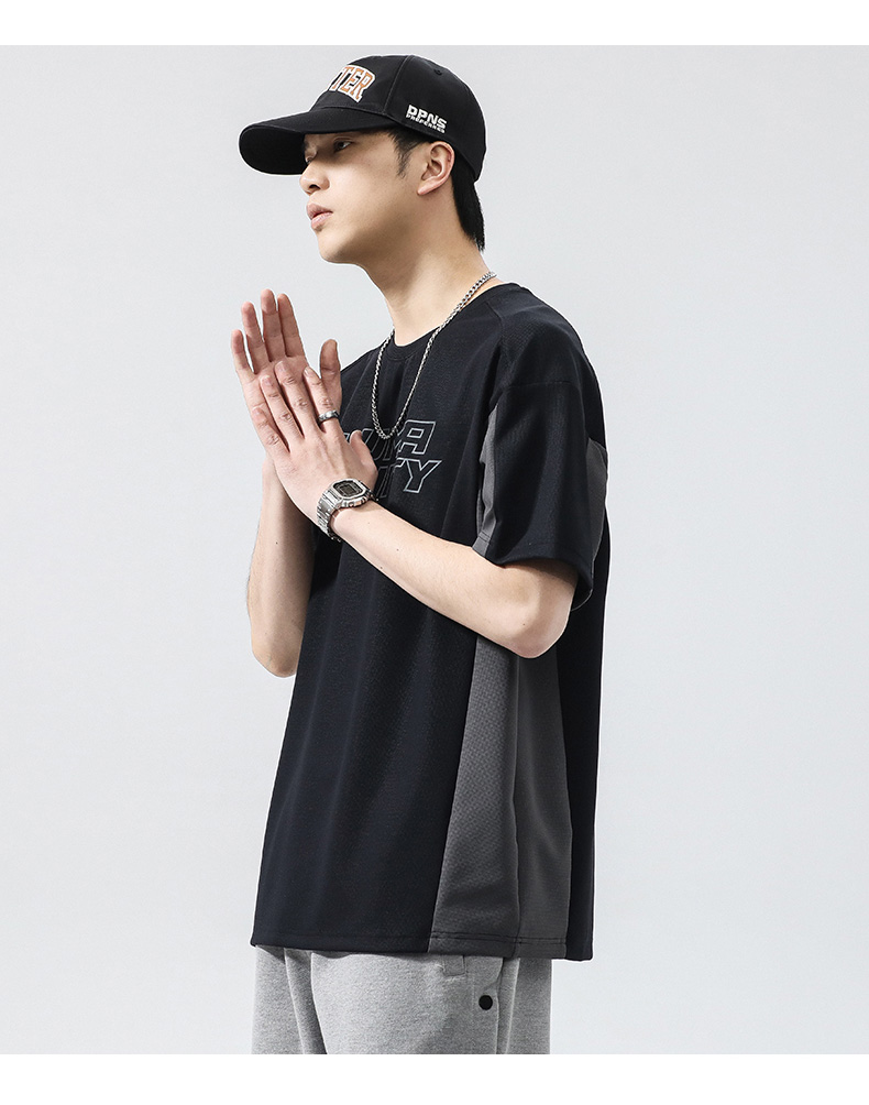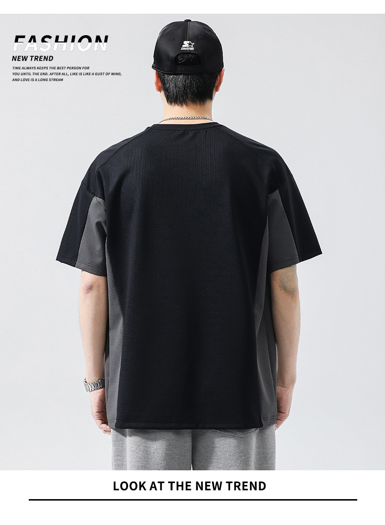【冰丝高弹】【新款DQ】大依优型大码短袖T恤圆领拼接加肥加大男士大号弹力透气舒适半袖夏装潮款