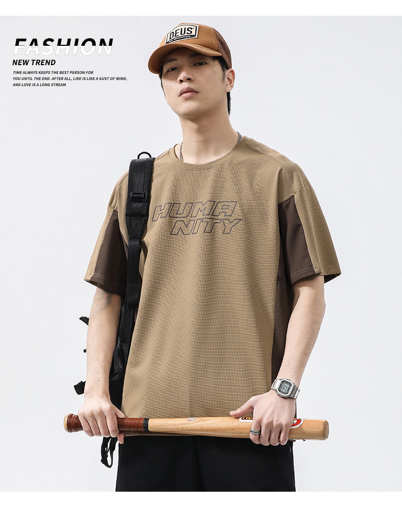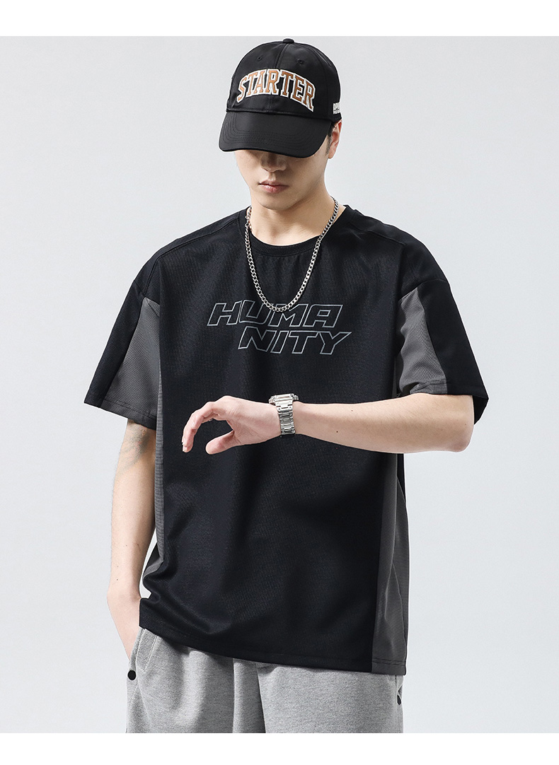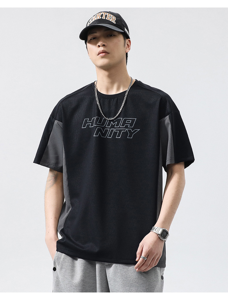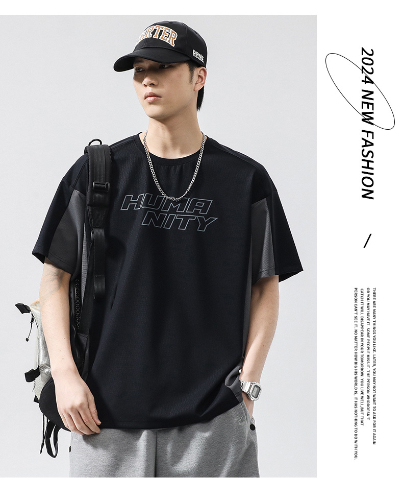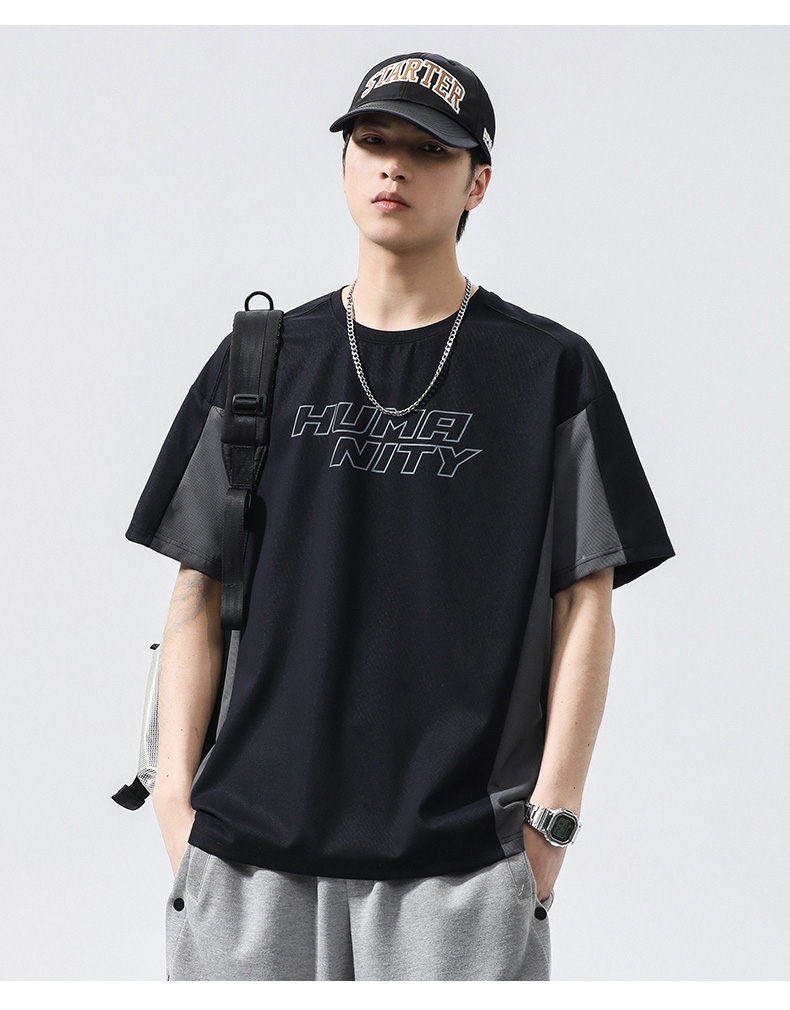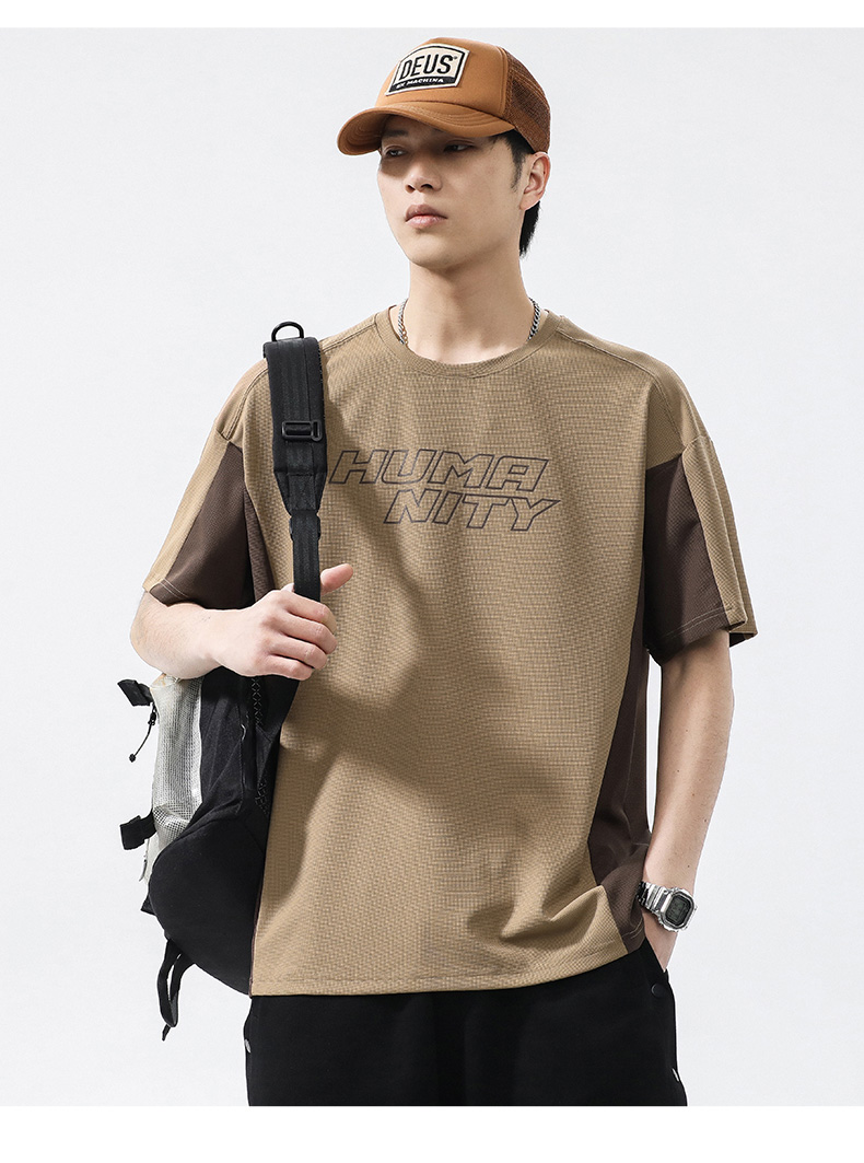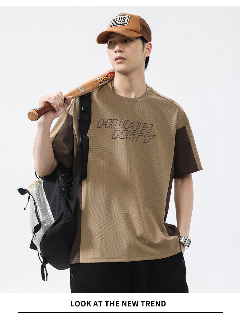 【冰丝高弹】【新款DQ】大依优型大码短袖T恤圆领拼接加肥加大男士大号弹力透气舒适半袖夏装潮款