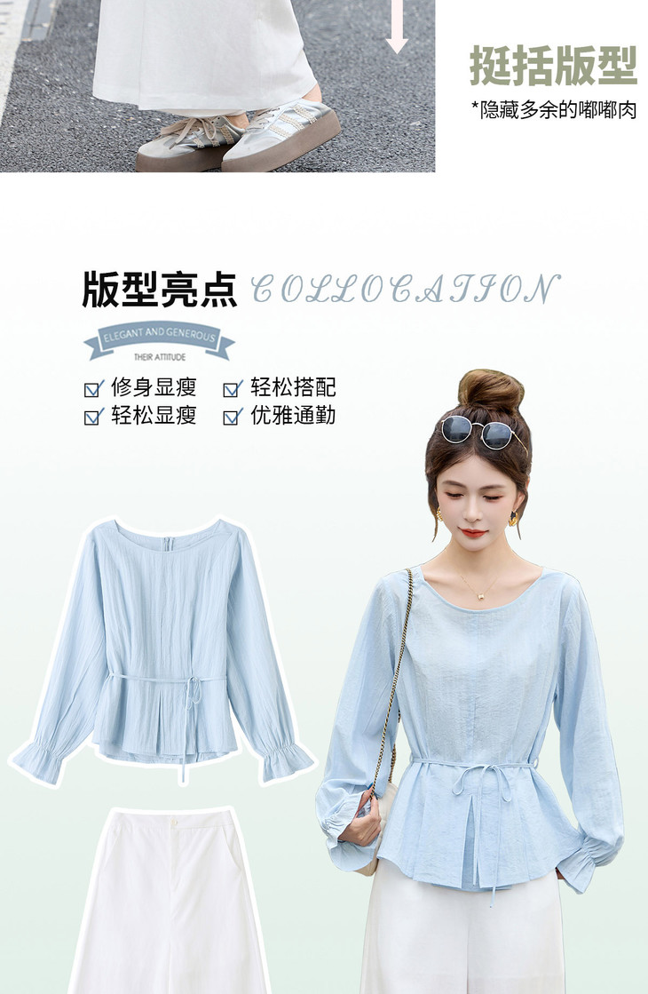 通勤风时尚套装女2025早秋新款气质休闲宽松圆领上衣阔腿裤两件套LYSX2580