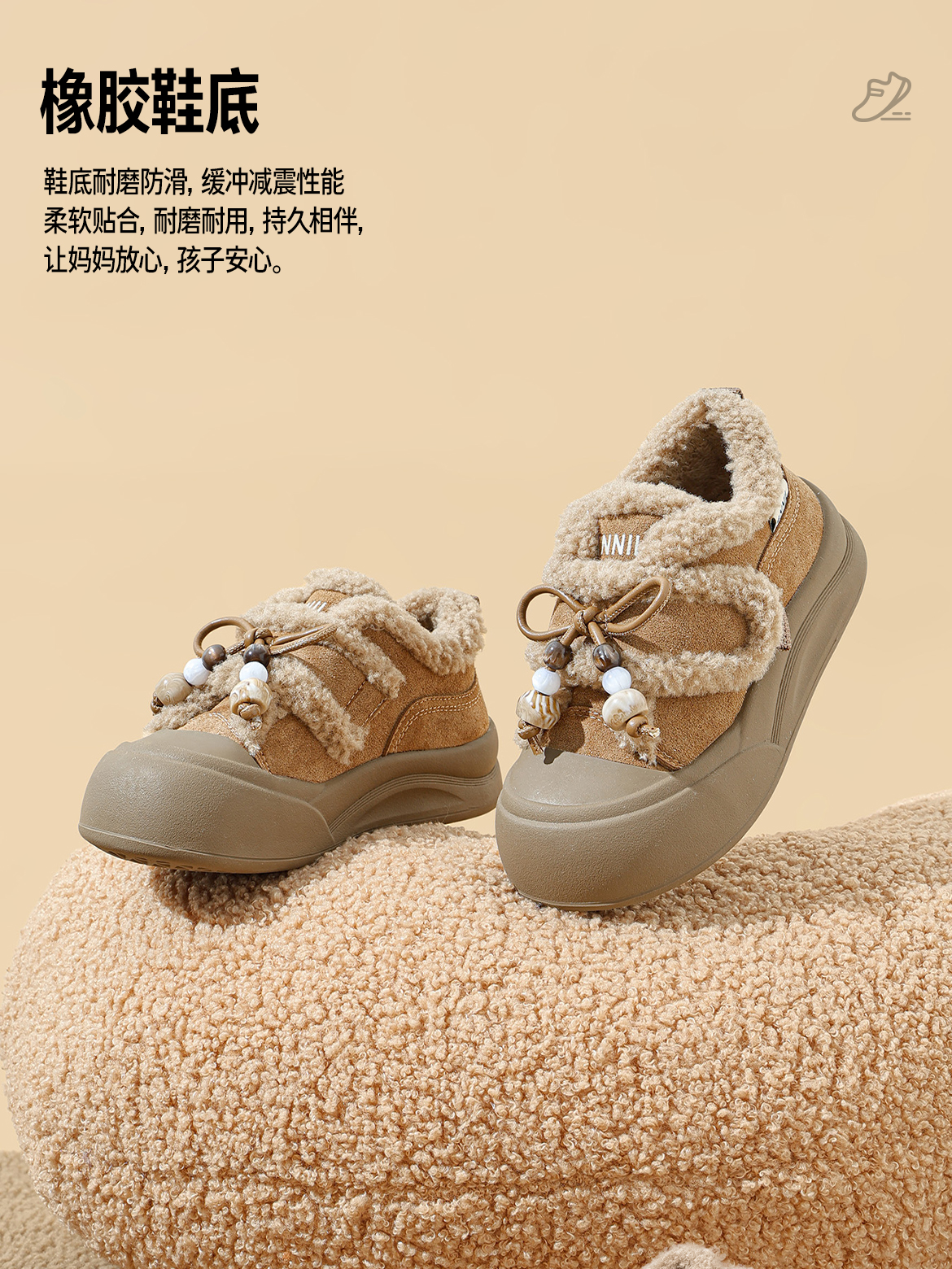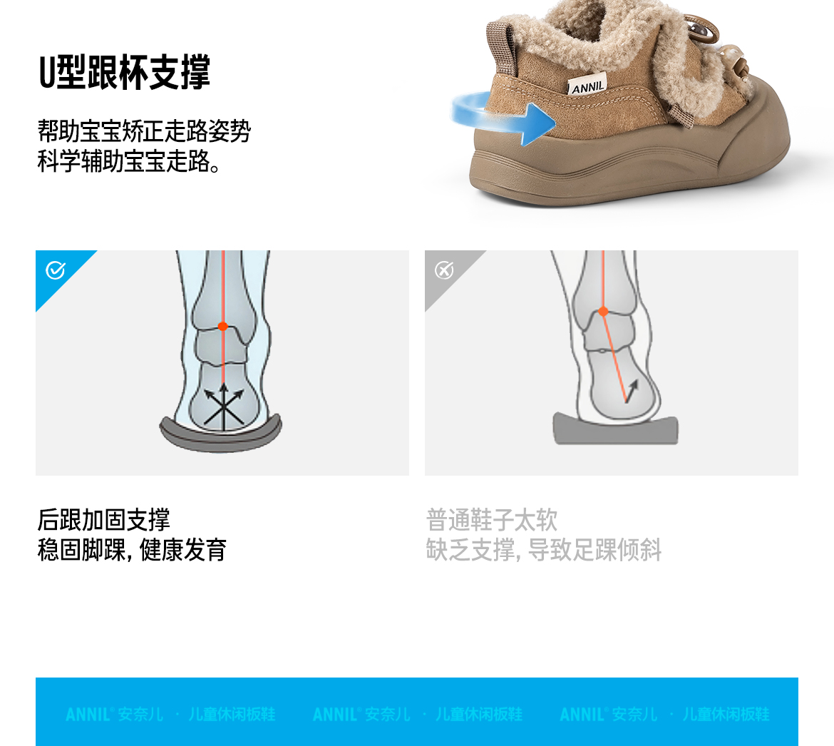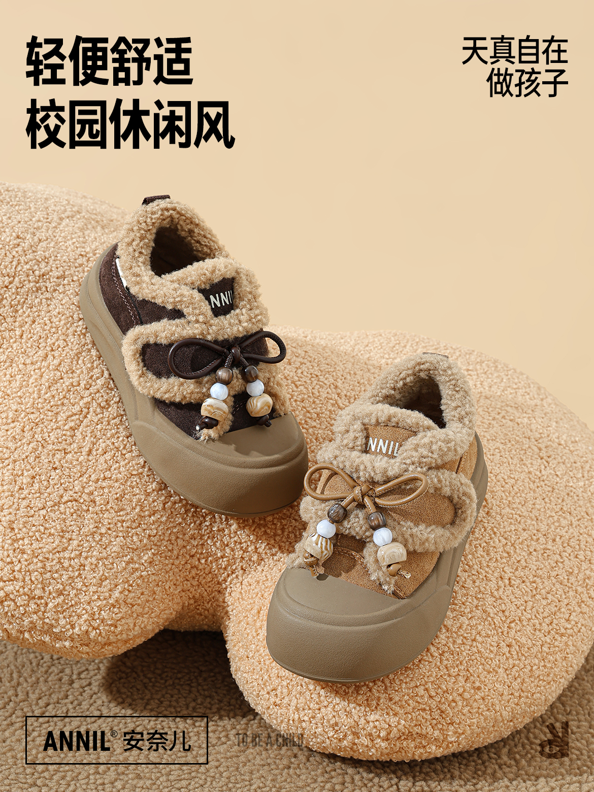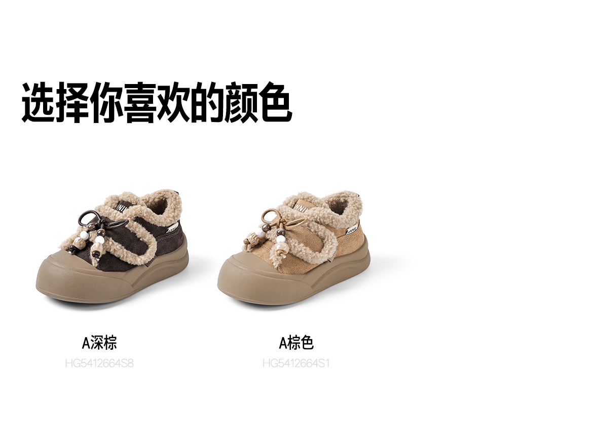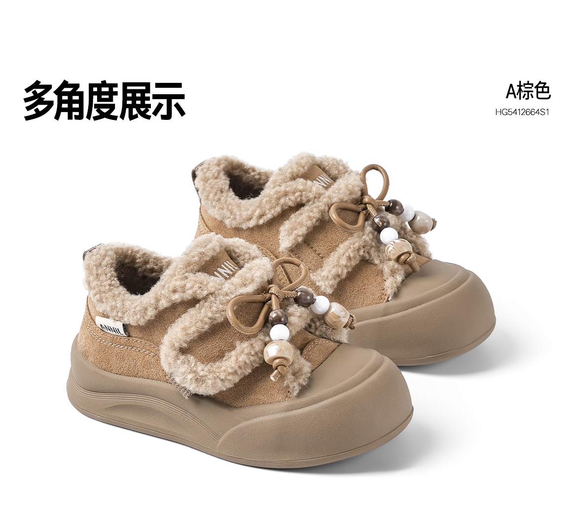 ANNIL/安奈儿童鞋女童可爱加绒毛毛鞋冬季加绒加厚休闲鞋宝宝可爱棉鞋鞋子HG5412664