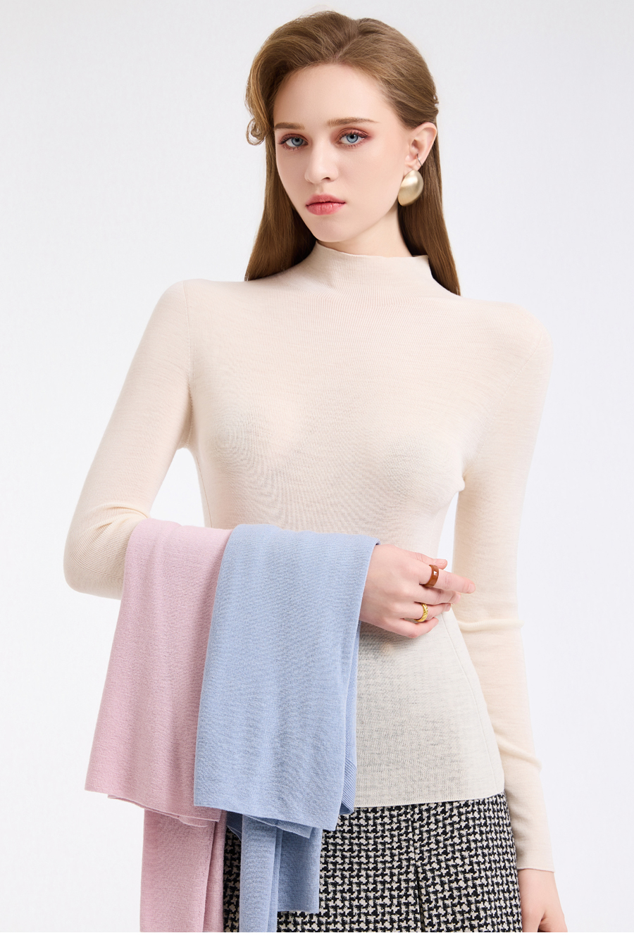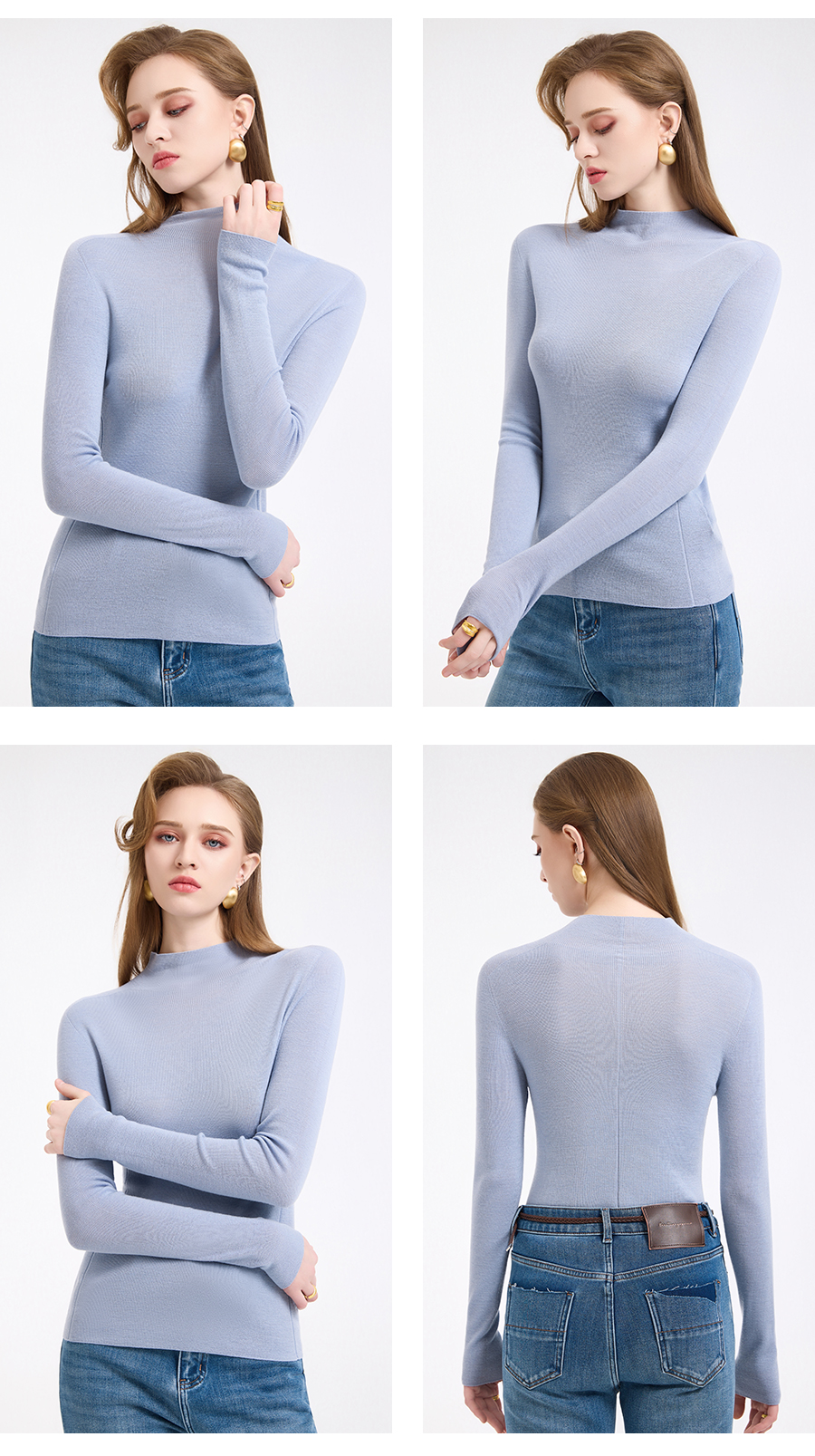 【三色可选】【100%绵羊毛】乔万尼新品云柔亲肤半高领长袖羊毛衫打底衫ED4M805