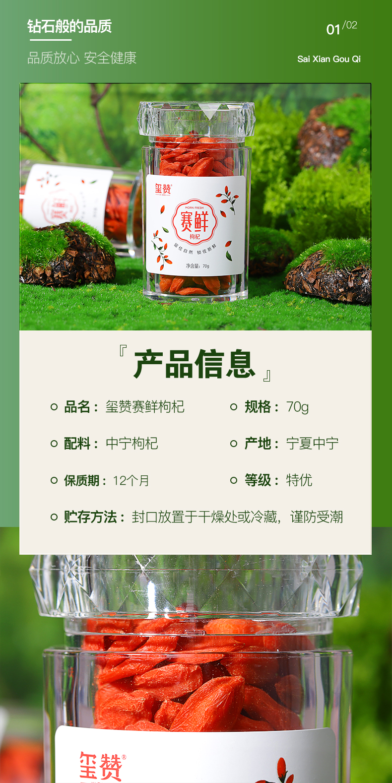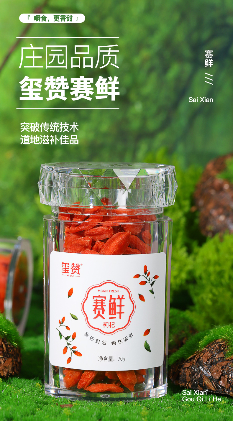 玺赞公司位于中国枸杞之乡—宁夏中宁县。在中宁枸杞红柳沟小产区建高标准枸杞种植基地一万三千亩—玺赞生态枸杞庄园,实现了研发、种植、加工、营销、文旅、生态“六位一体”的现代枸杞全产业链企业,本店是玺赞微店
