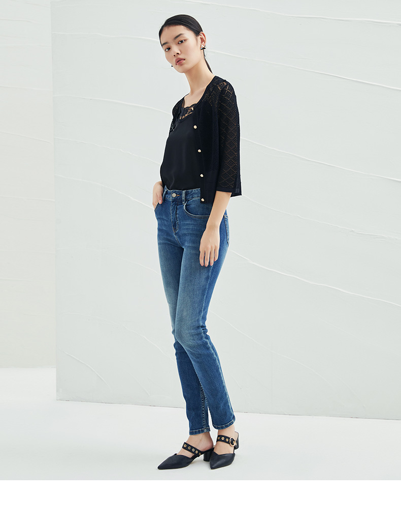 EITIE爱特爱品牌女装夏款时尚通勤职业条纹显腿长高腰阔腿裤6105810