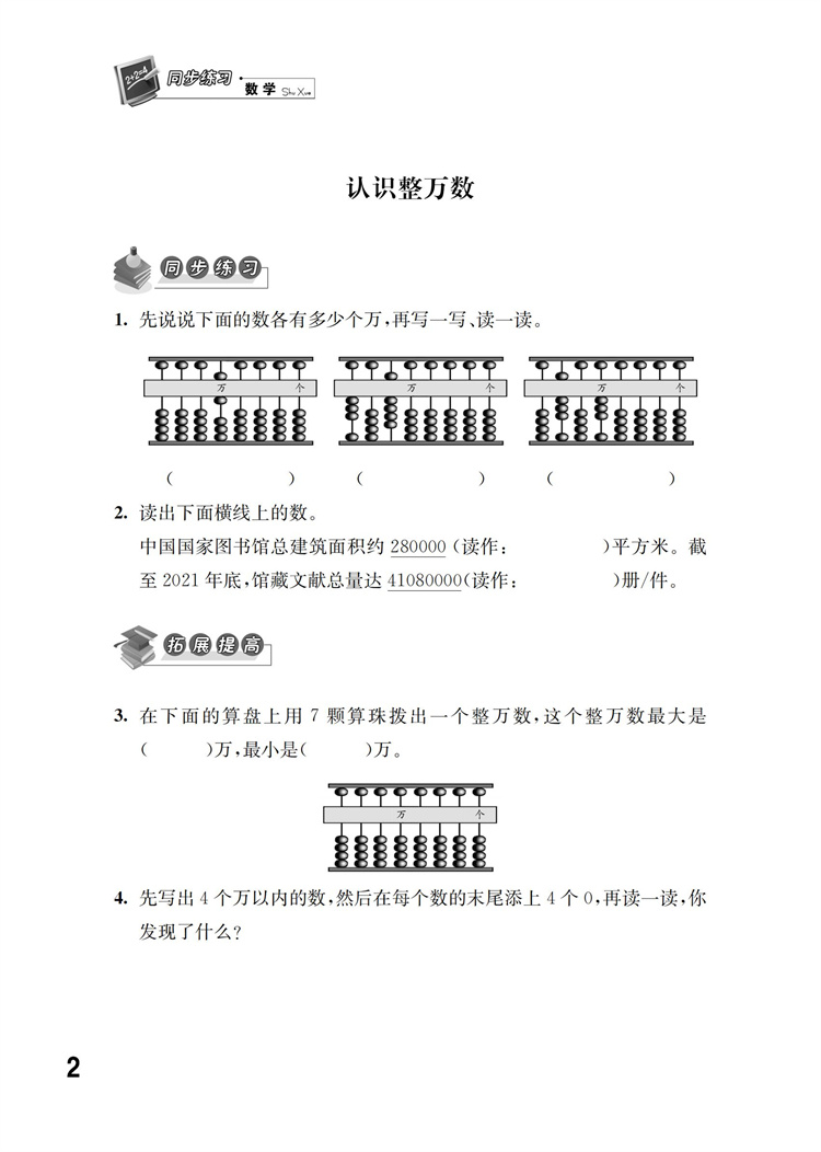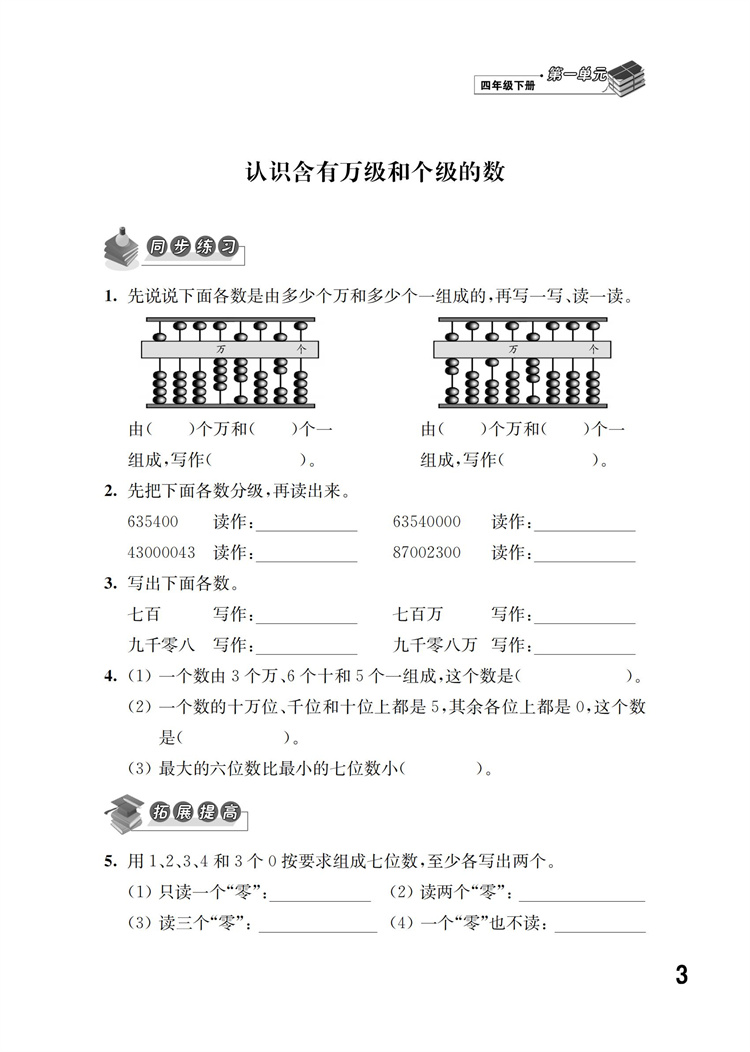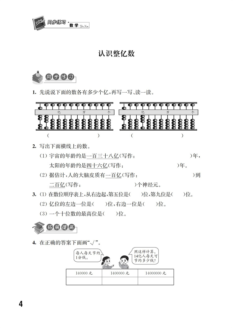 2026春 同步练习 小学数学四年级下册 苏教版 含参考答案 4年级下册