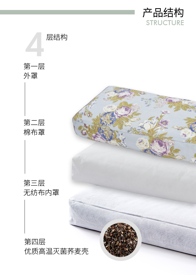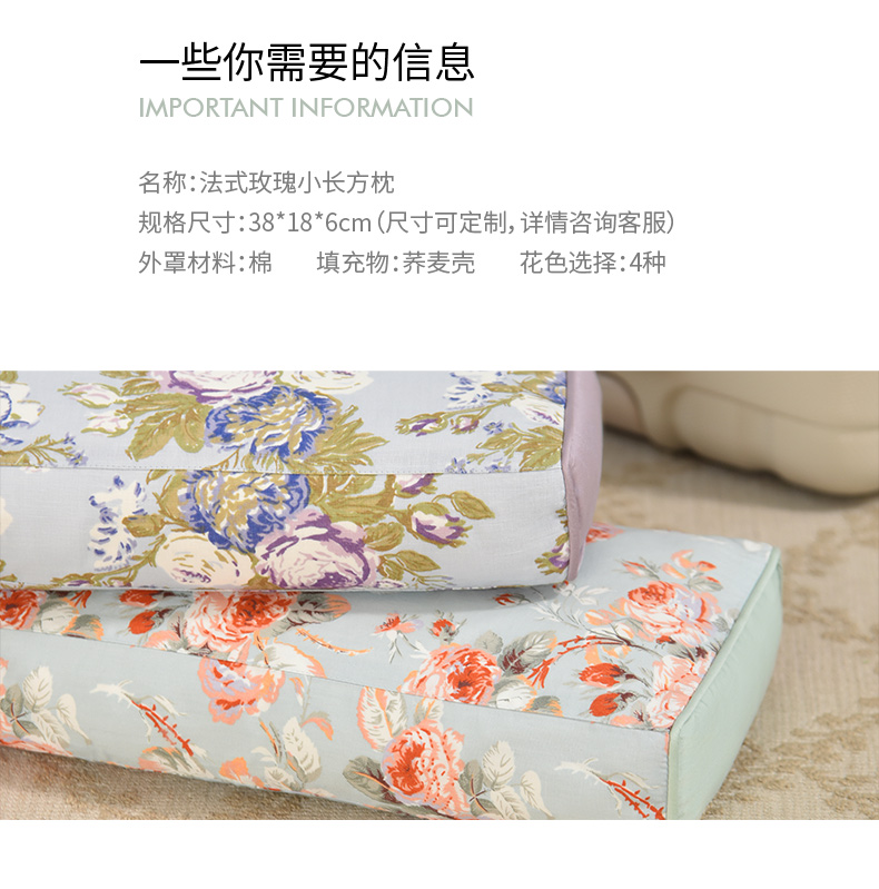 法式玫瑰小长方枕旅行便携小成人枕纯荞麦壳