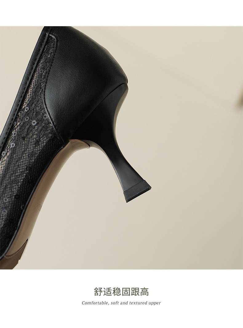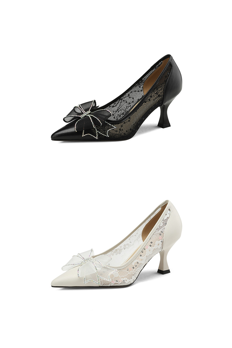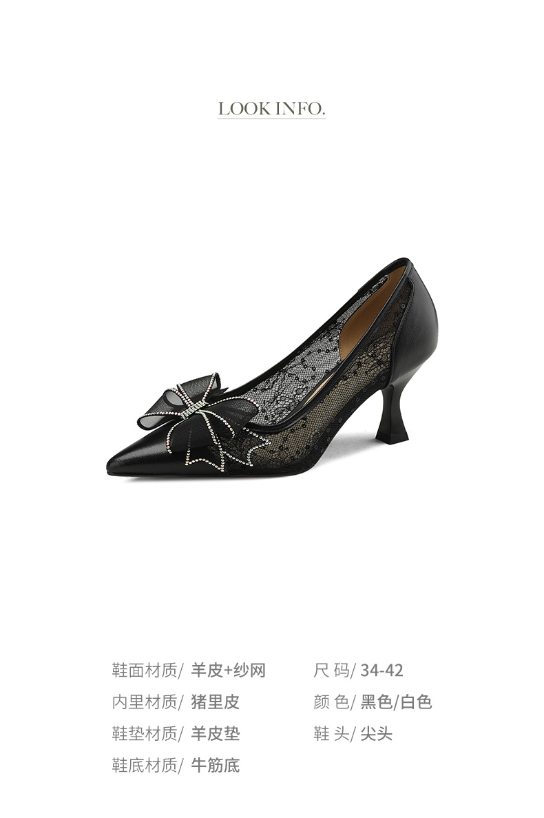 性感百搭,蝴蝶结蕾丝纱网高跟鞋DB-M5556