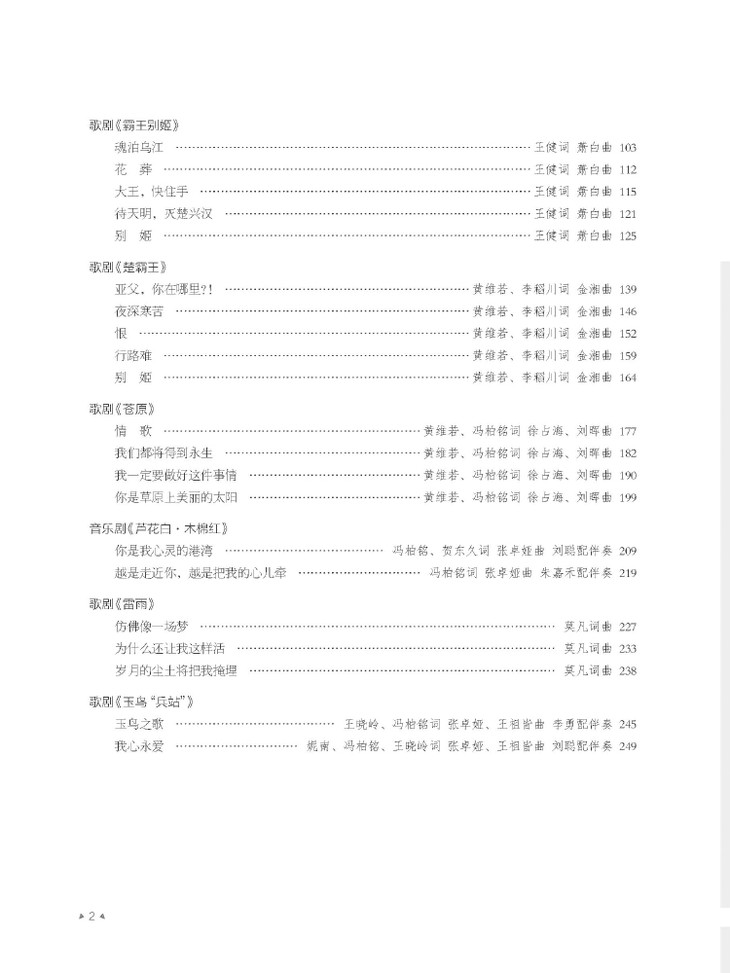 本册为中国歌剧百年——经典唱段集萃第四册,收录了1990-1999年间创作演出的《归•去•来》《党的女儿》《马可•波罗》《张骞》《安重根》等15部歌剧中的34首唱段,如《铺平大道通长安》《卞姜,你在哪里?》《大王,快住手!》《你是草原上美丽的太阳》等。这一时期的中国歌剧无论是创作方法、艺术风格以及审美取向,都有了极大的改变。特别是轻歌剧和音乐剧的引进,使新创演的剧目均在原有的艺术模式上迅速突破。