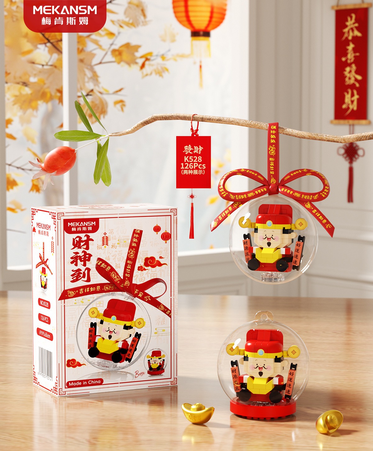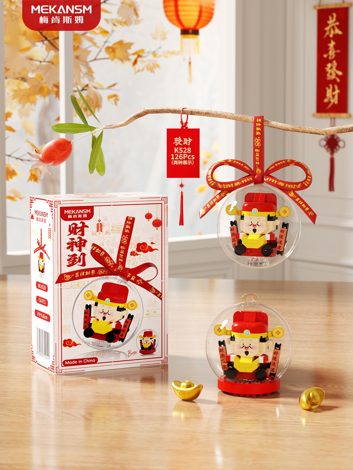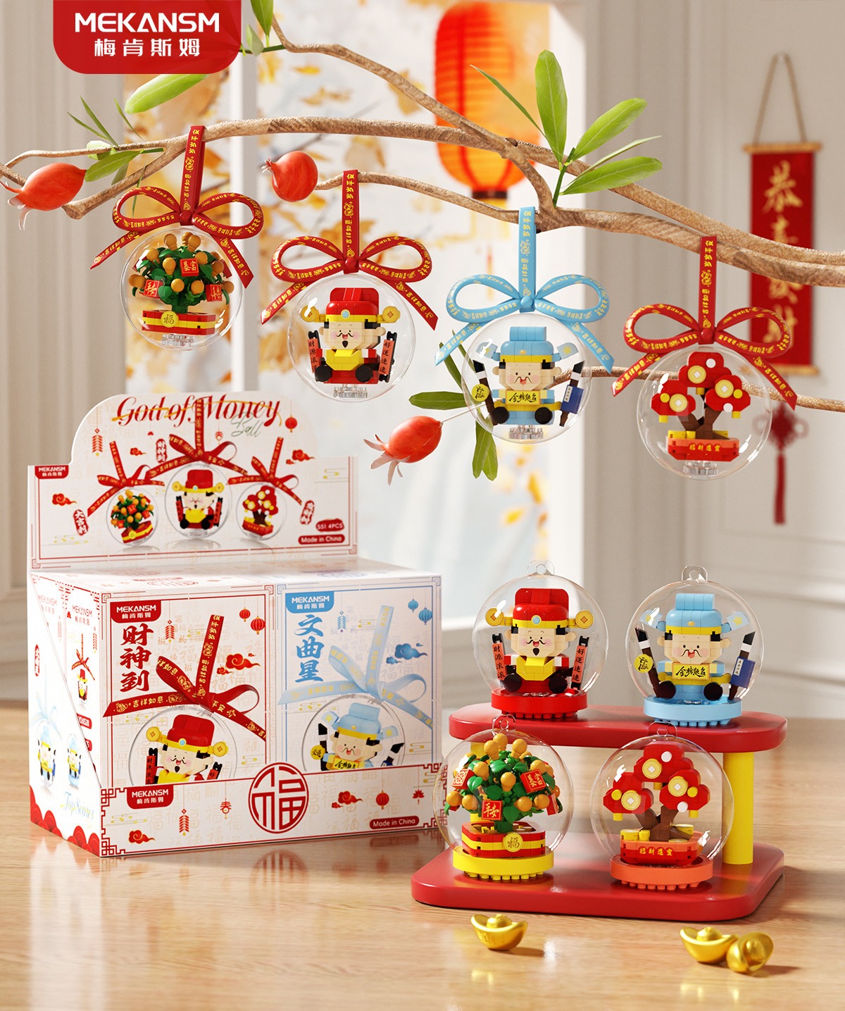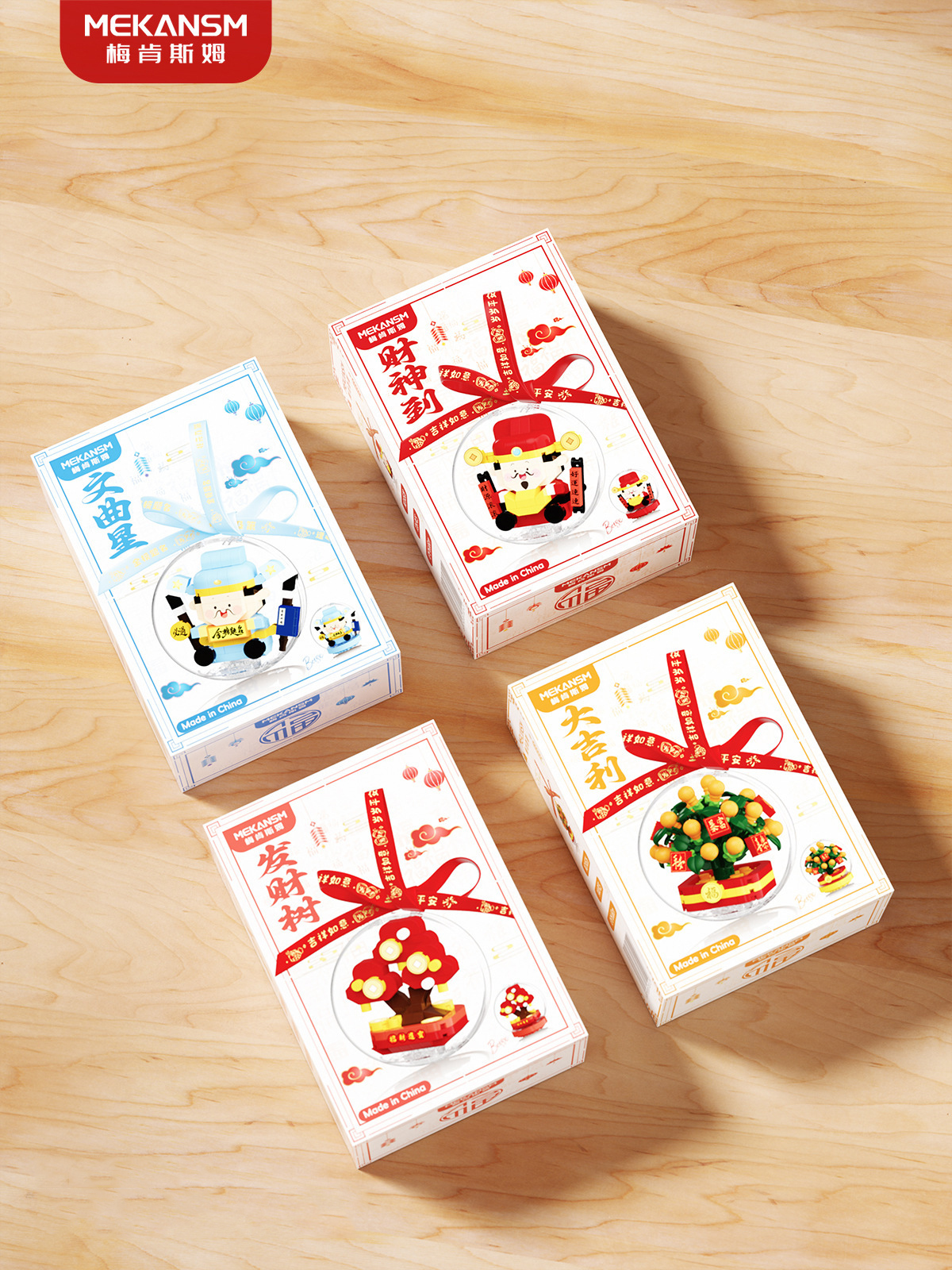 新年礼物兼容乐高马年吉祥物财神爷文曲星桔子树儿童益智玩具摆件