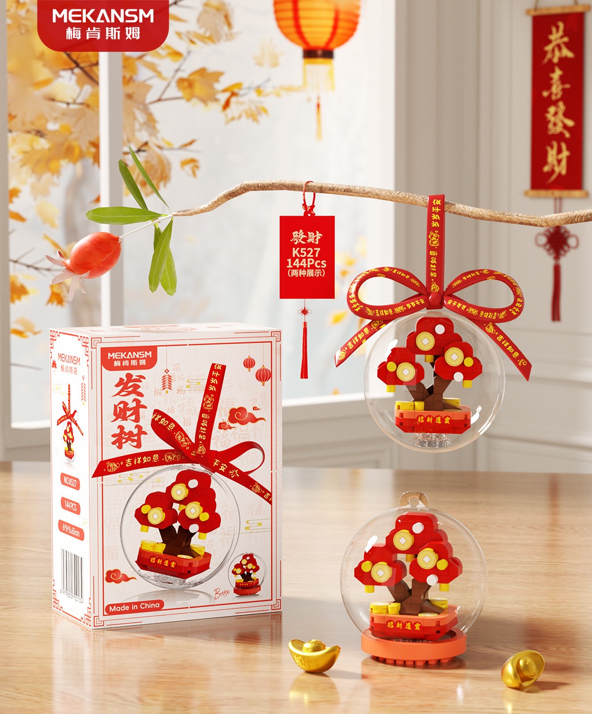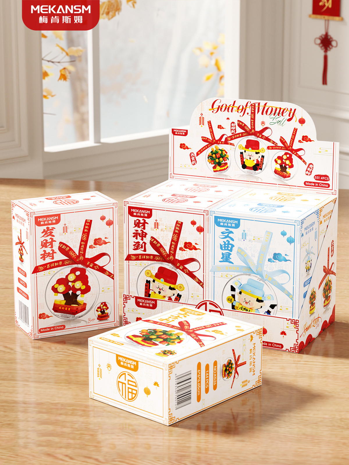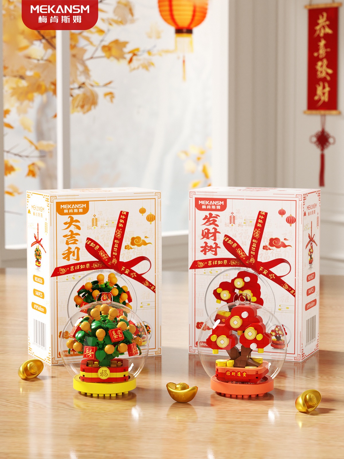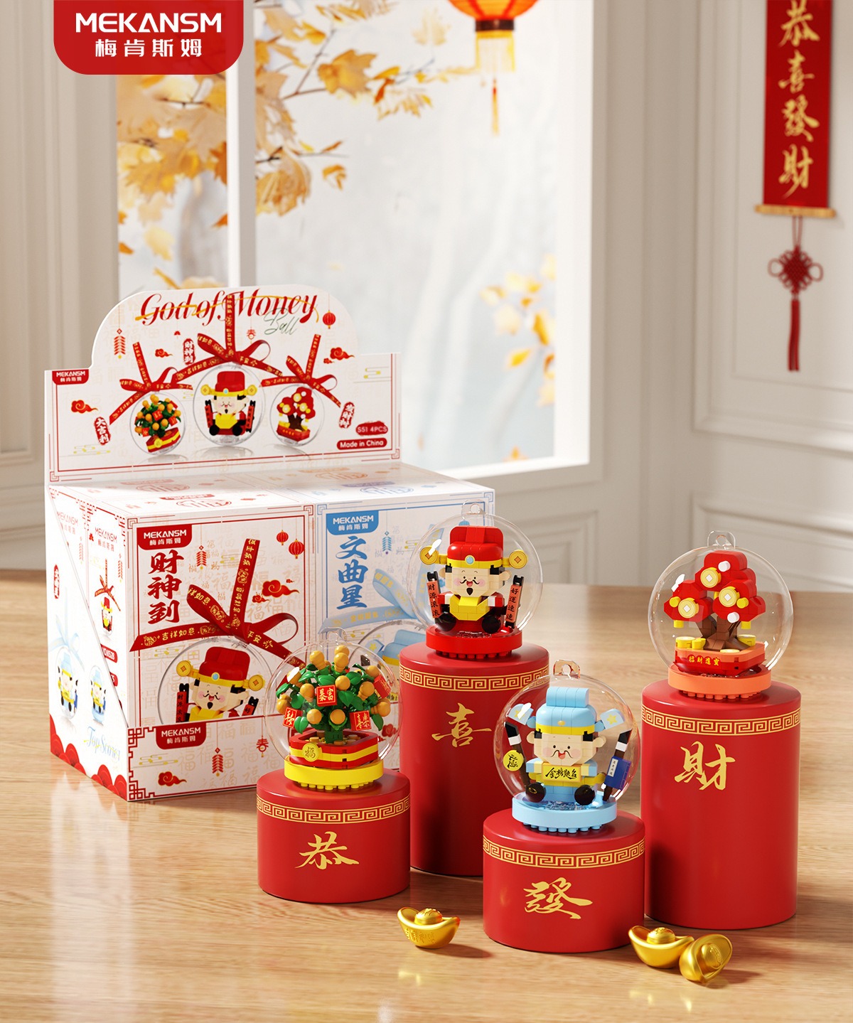 新年礼物兼容乐高马年吉祥物财神爷文曲星桔子树儿童益智玩具摆件