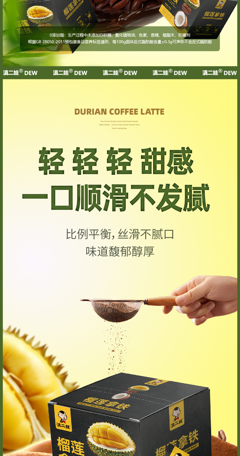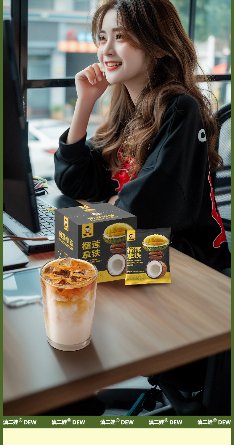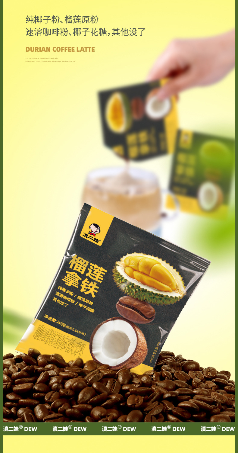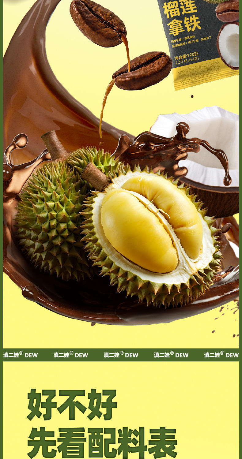 【瞬间沉浸榴莲香,6袋20g装】榴莲拿铁120g速溶咖啡 无添加黑咖啡 美式6袋/20g装 口感浓郁 香气四溢-QQ