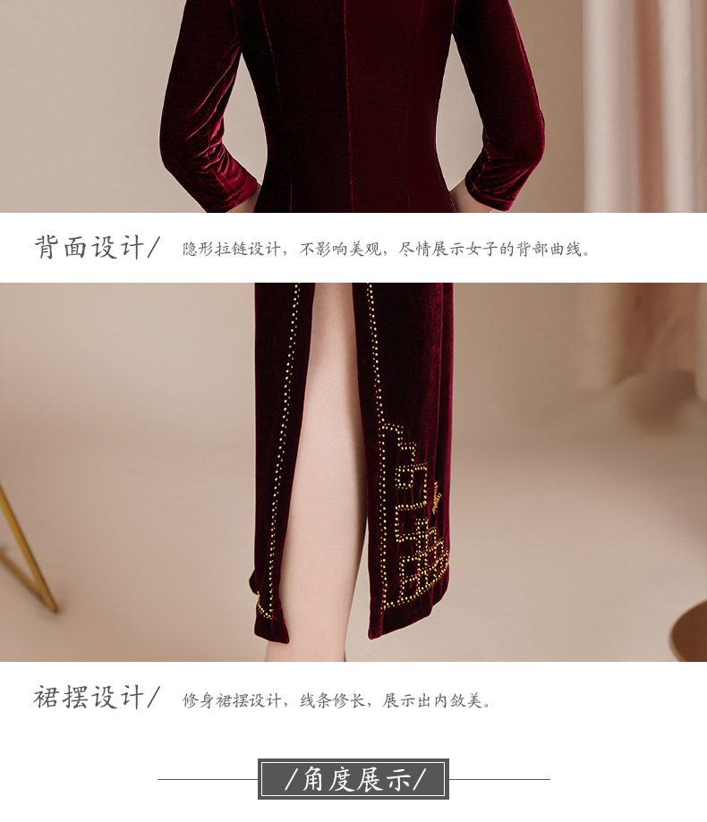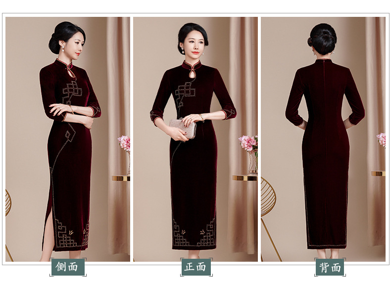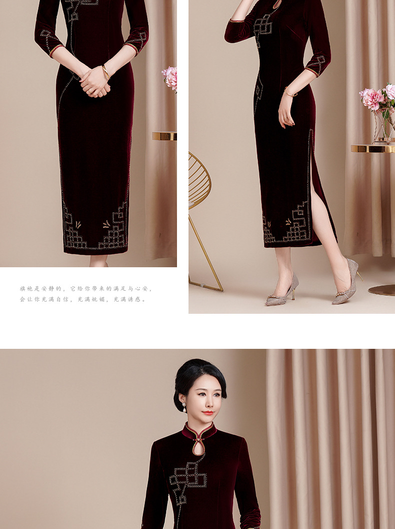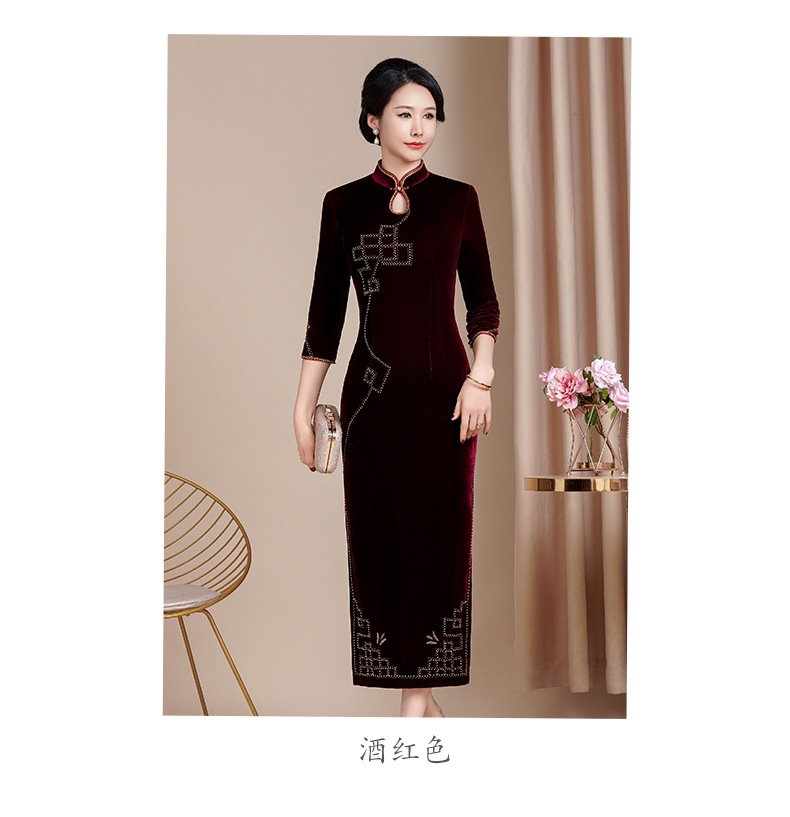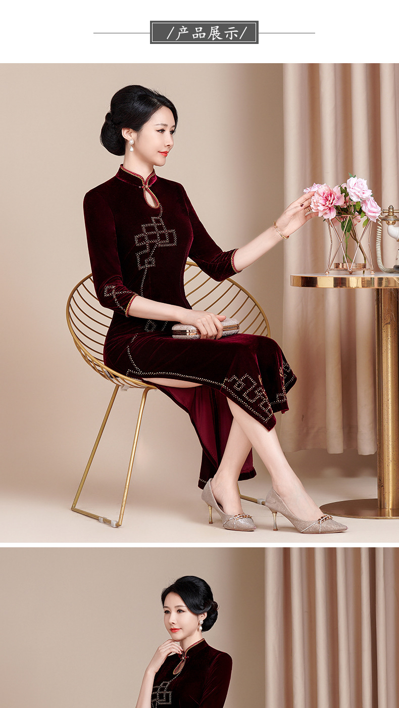 HYX秋冬新款修身改良丝绒旗袍女高级感喜婆婆喜妈妈敬酒服长款礼服
