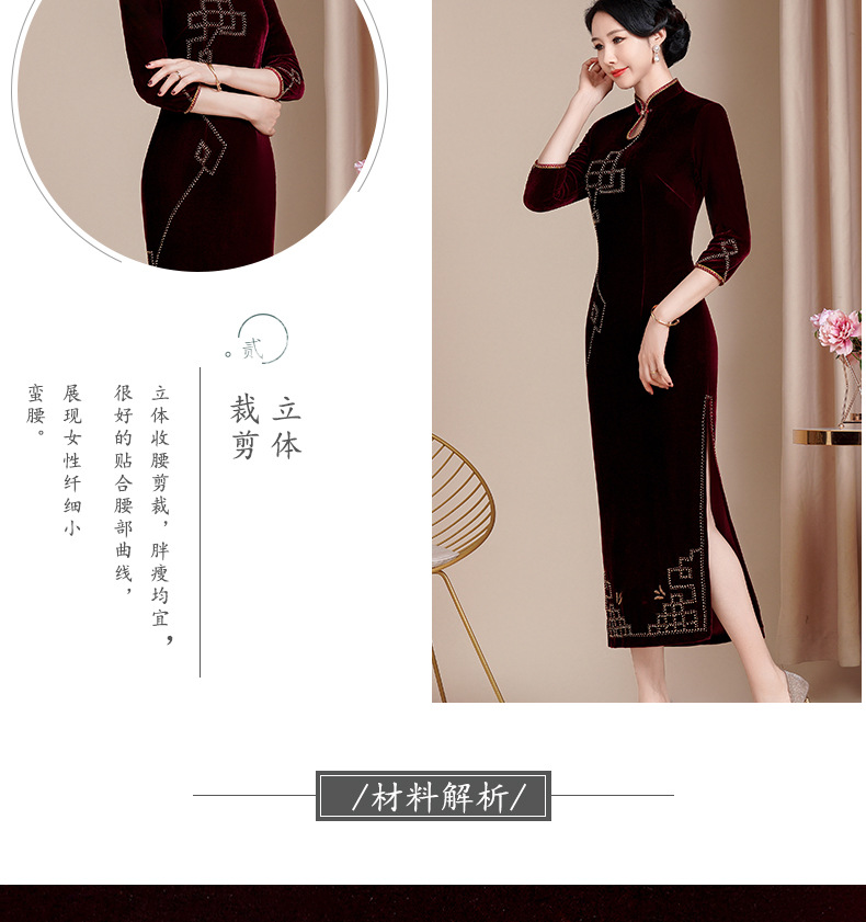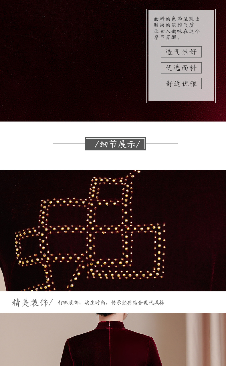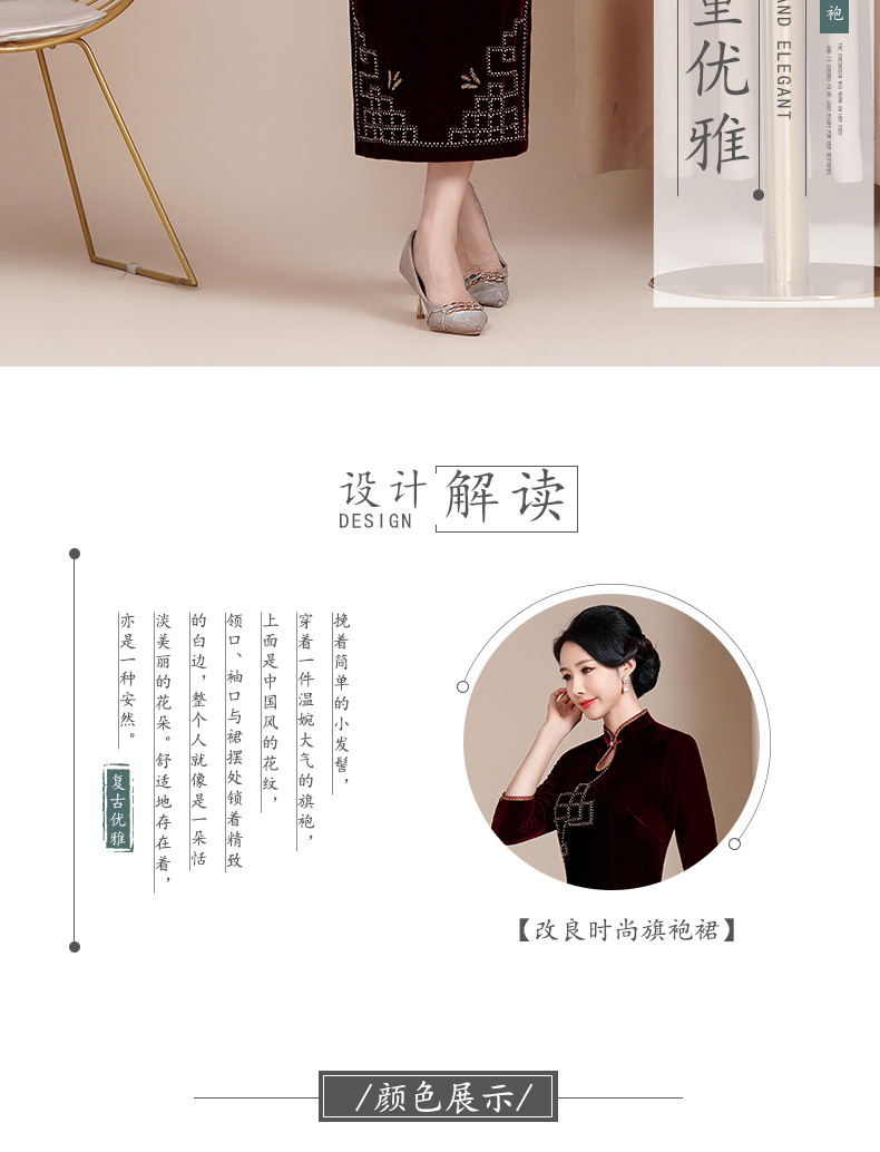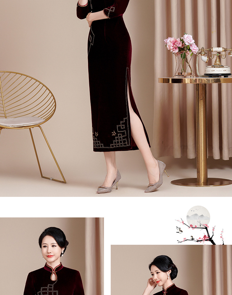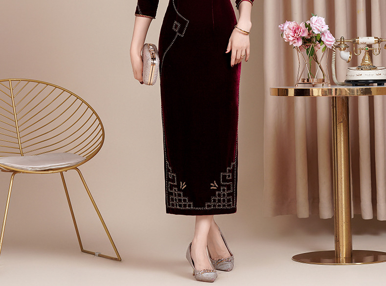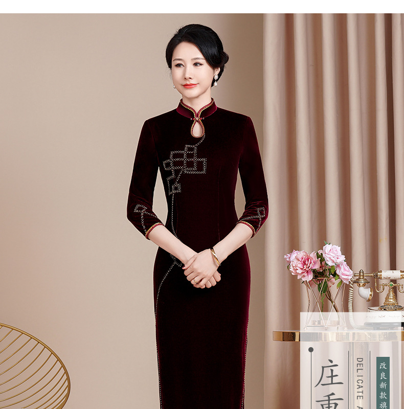 HYX秋冬新款修身改良丝绒旗袍女高级感喜婆婆喜妈妈敬酒服长款礼服