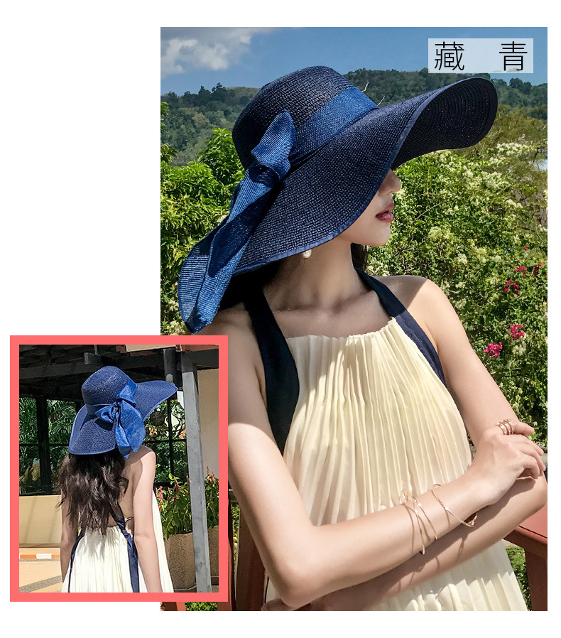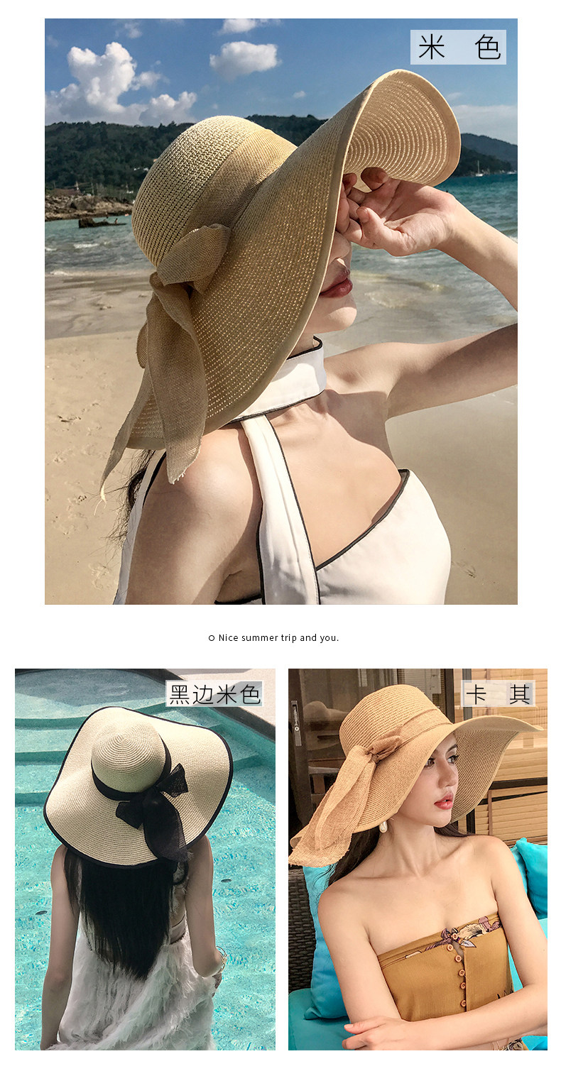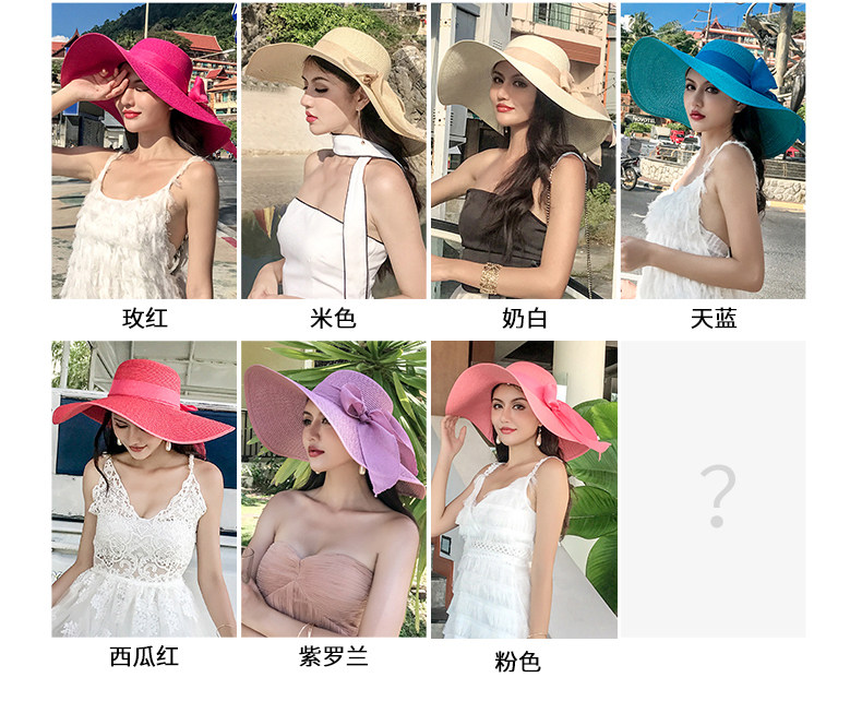 CT-SQ0526草帽女拉菲草遮阳帽防晒大沿边显脸小帽子女韩版潮百搭时尚沙滩帽