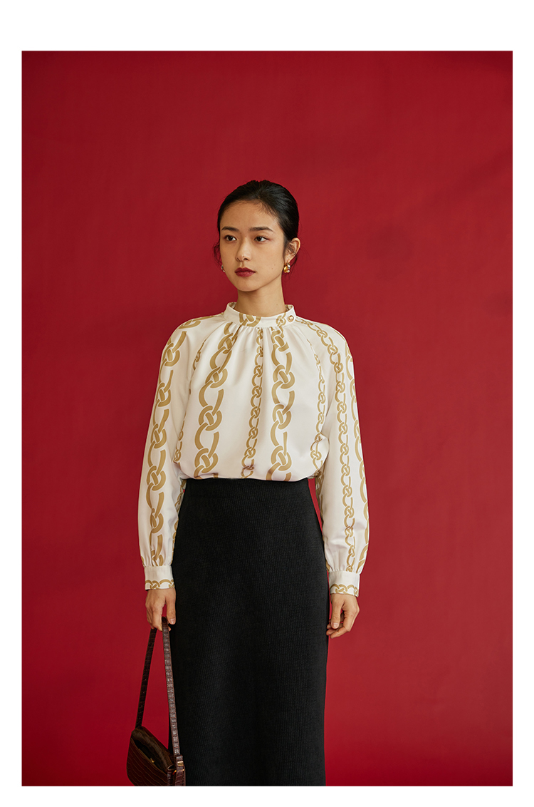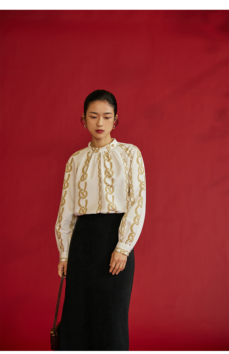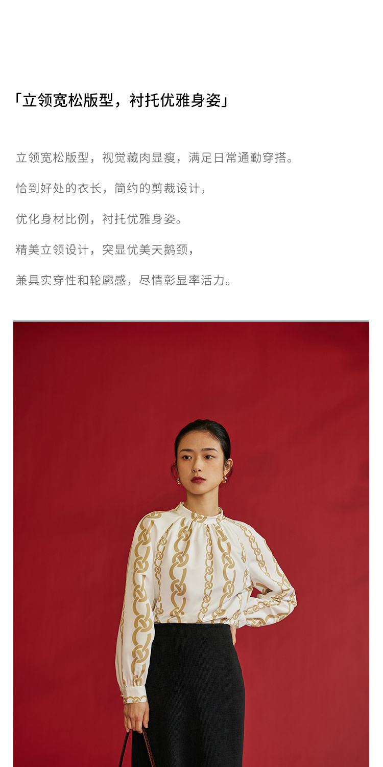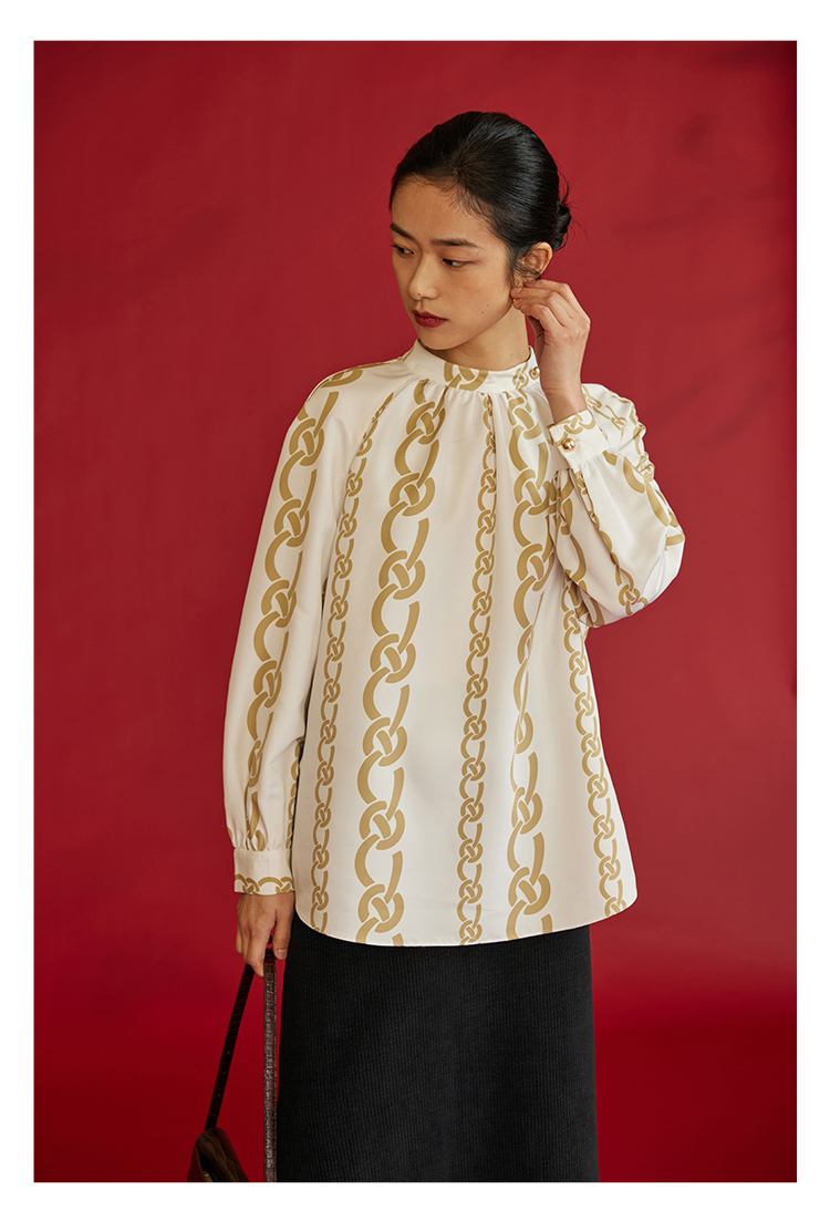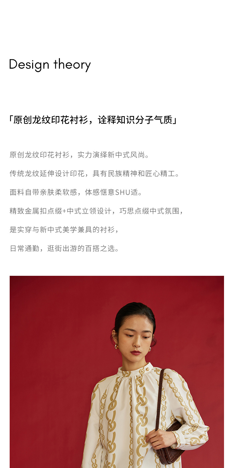 HeyDress龙纹印花衬衫法式宽松立领中国风衬衣别致叠穿上衣