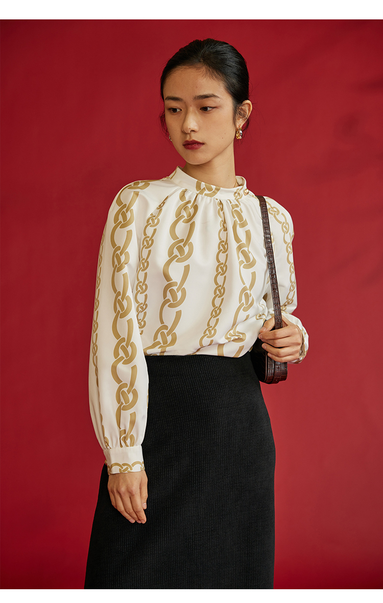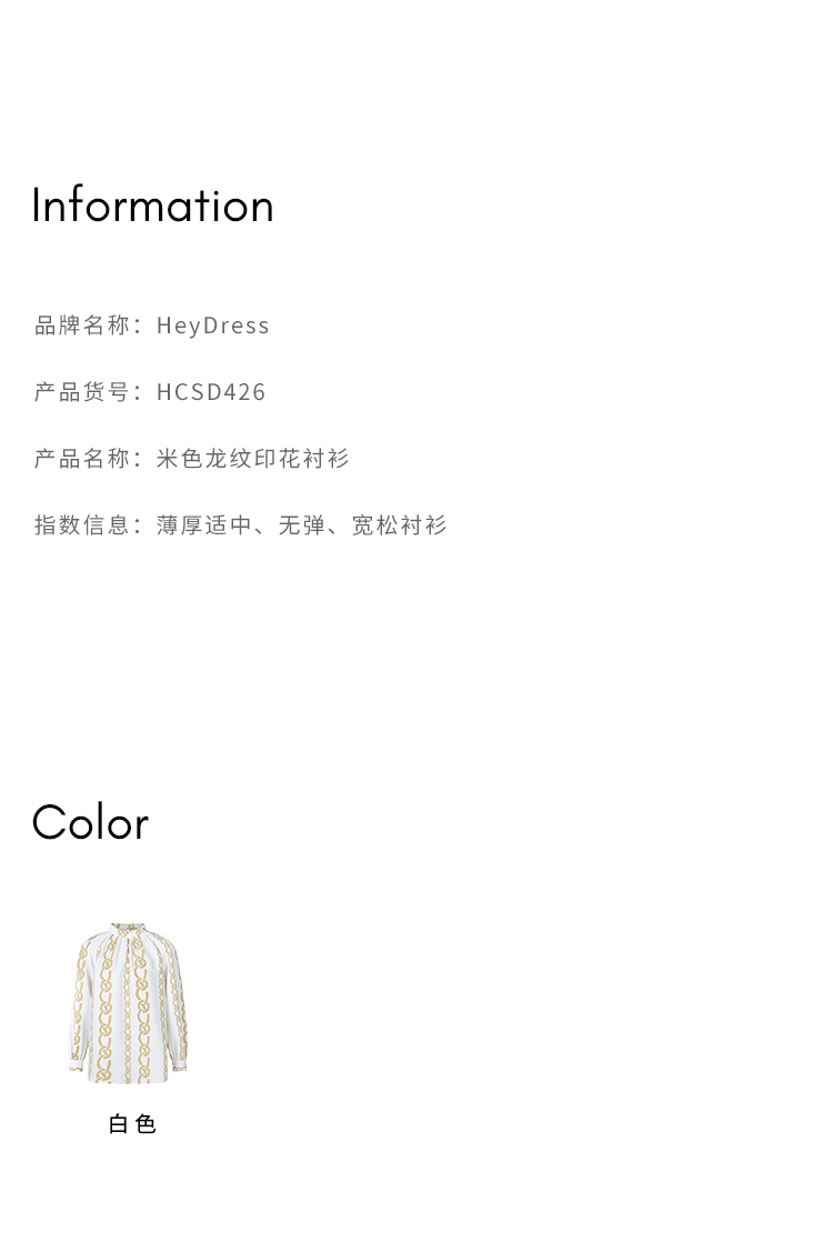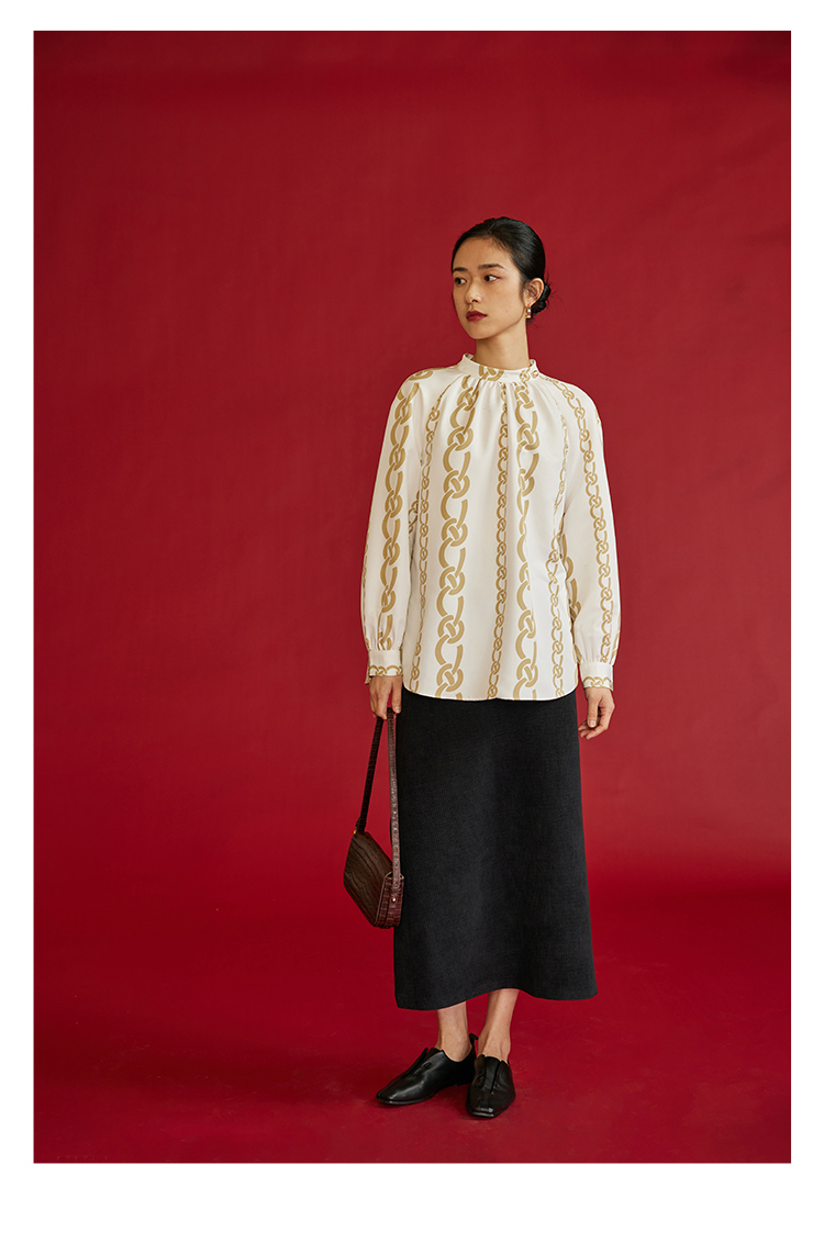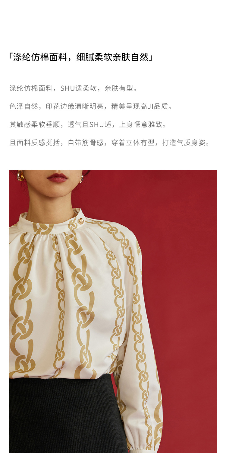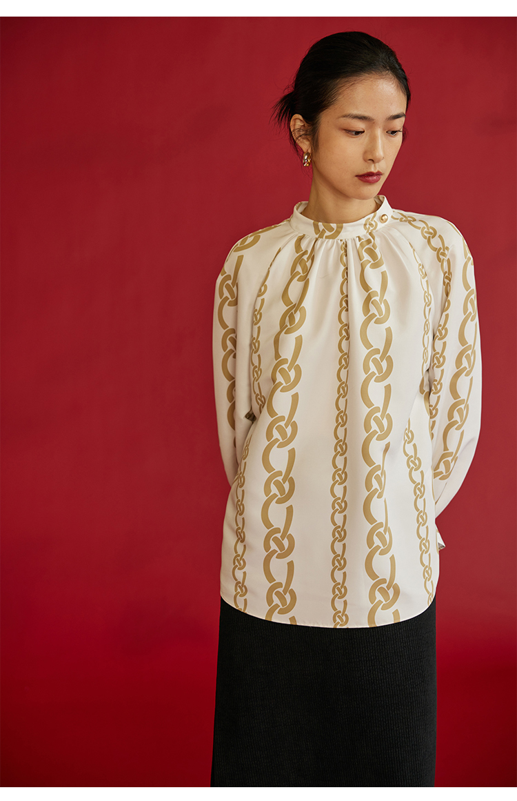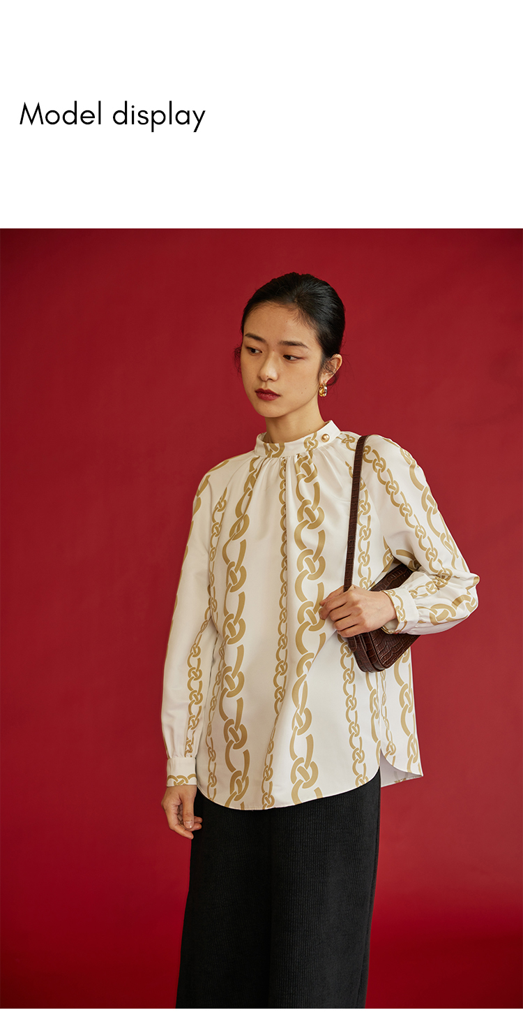HeyDress龙纹印花衬衫法式宽松立领中国风衬衣别致叠穿上衣