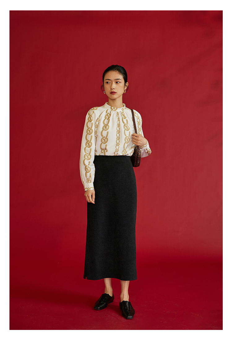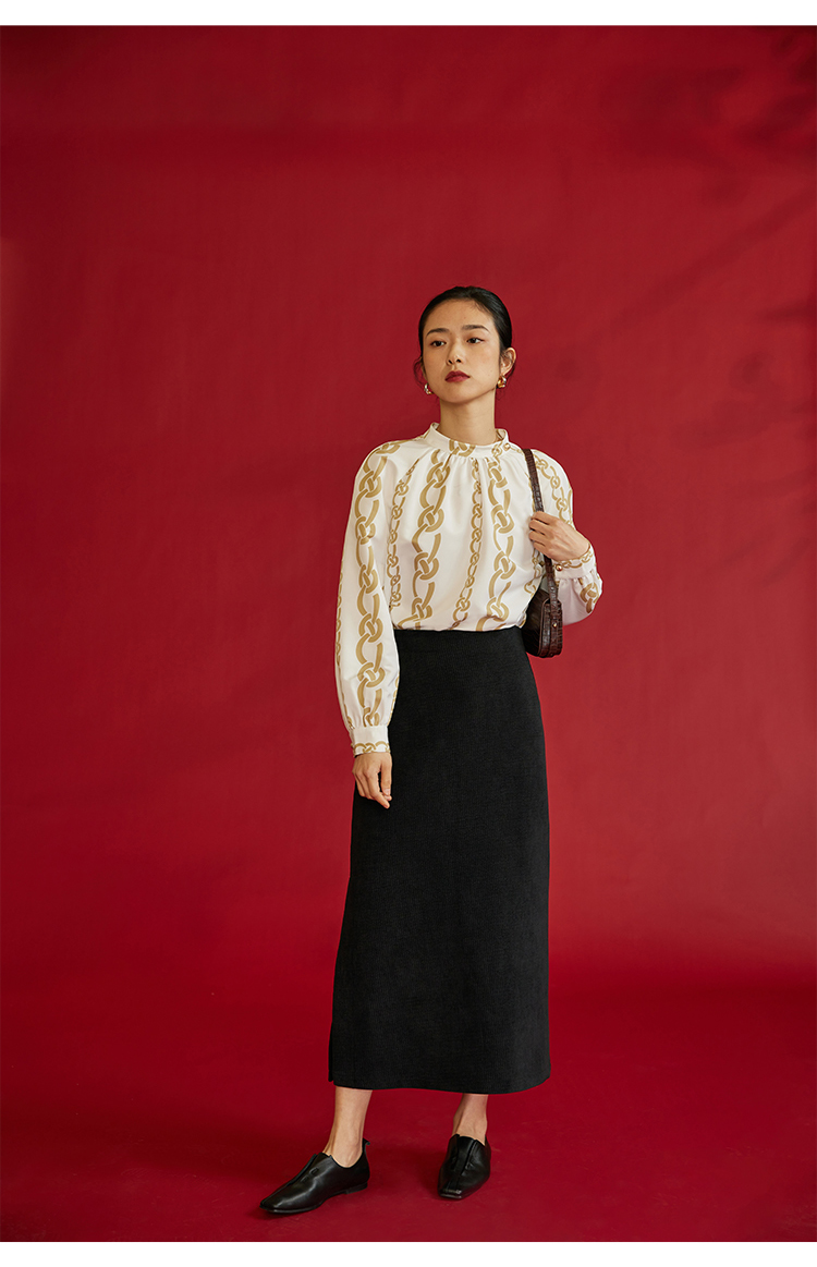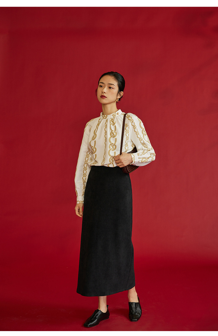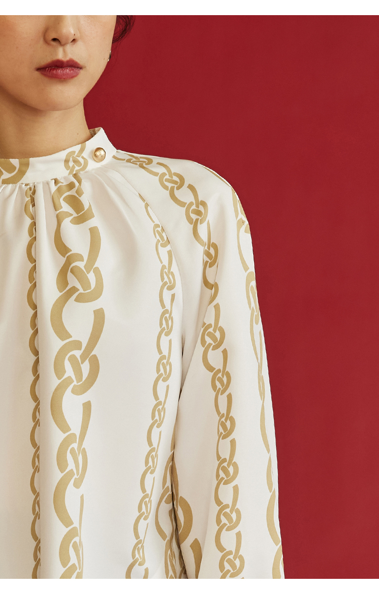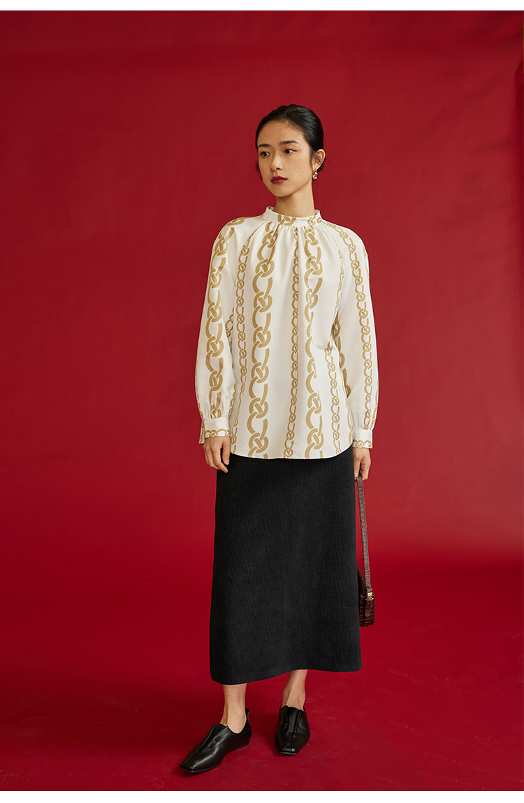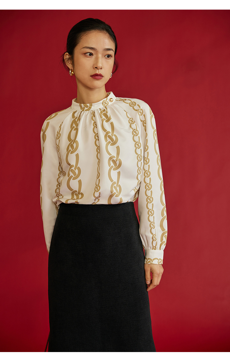 HeyDress龙纹印花衬衫法式宽松立领中国风衬衣别致叠穿上衣