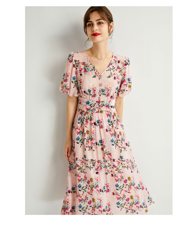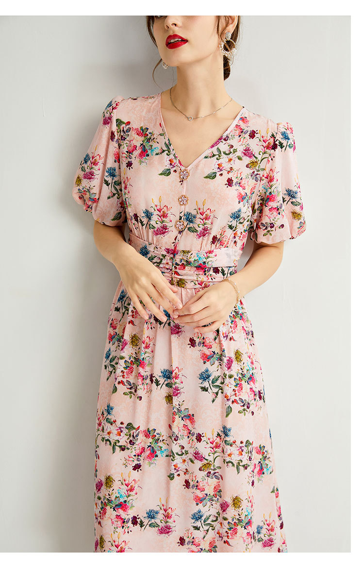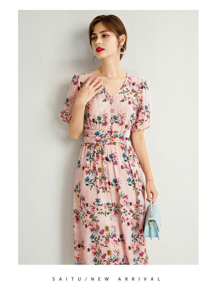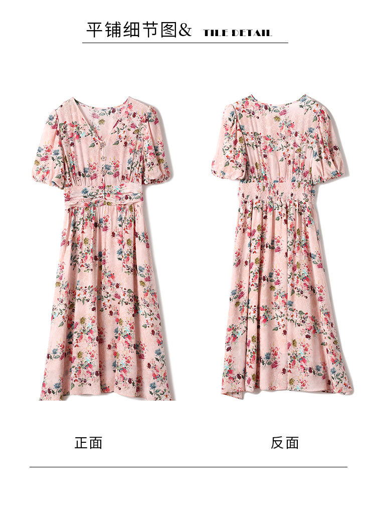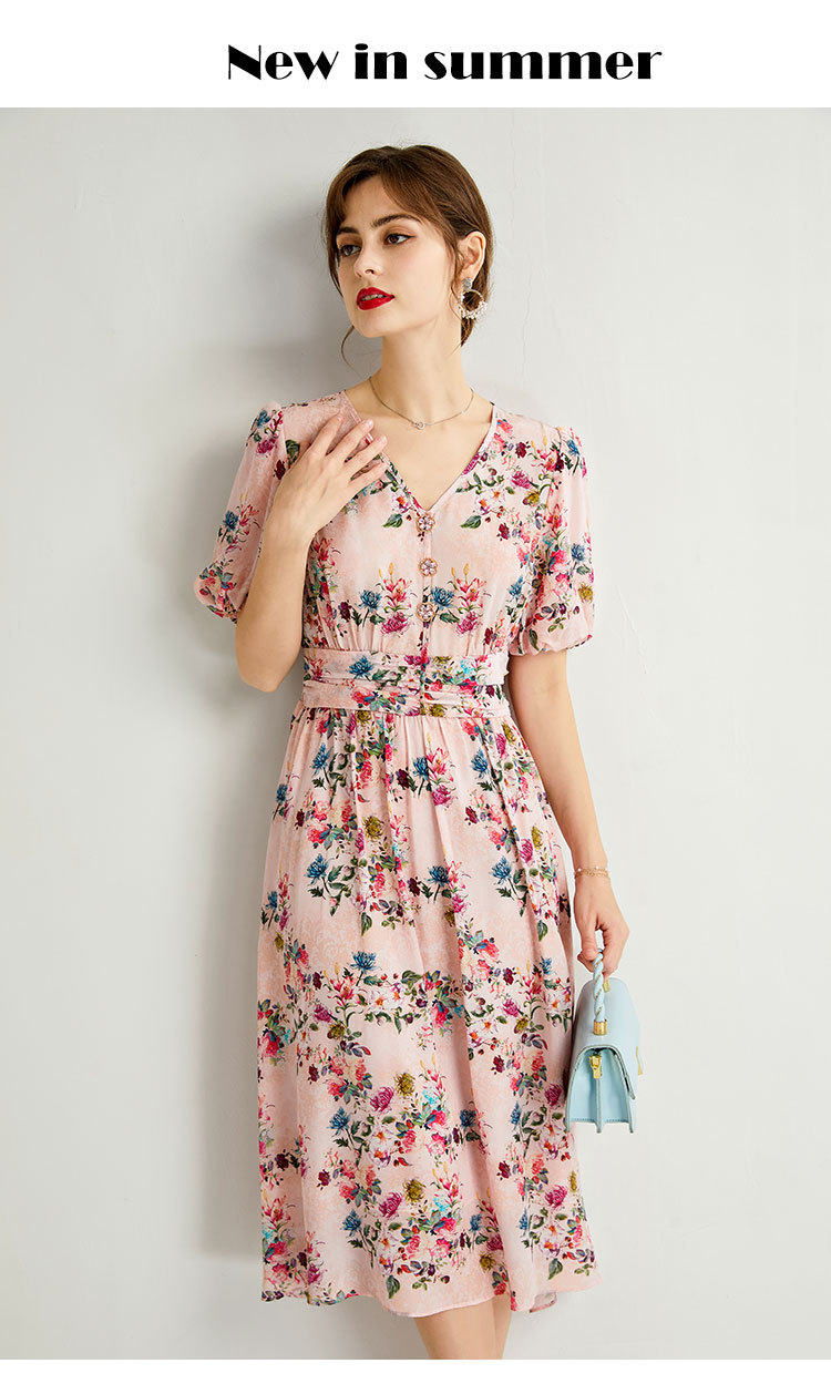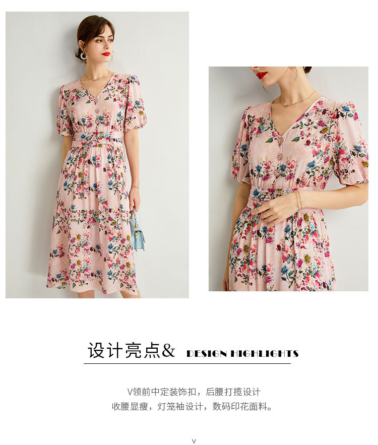 褶皱轻熟风双绉真丝,印花蚕丝连衣裙KBN-230120