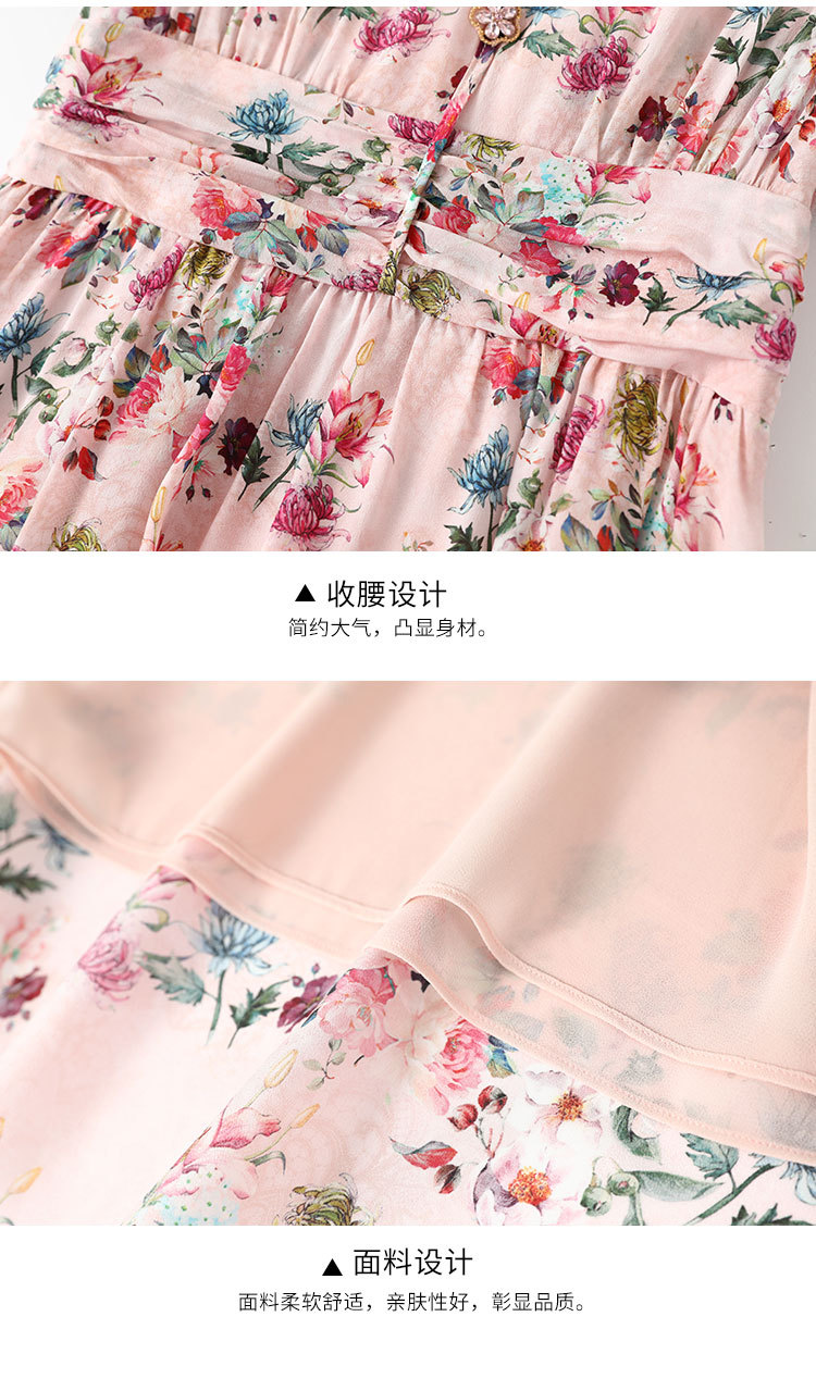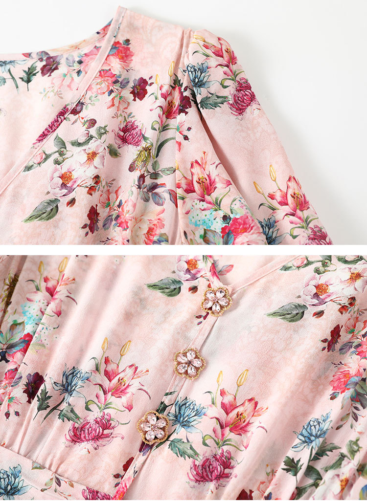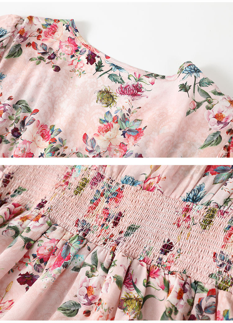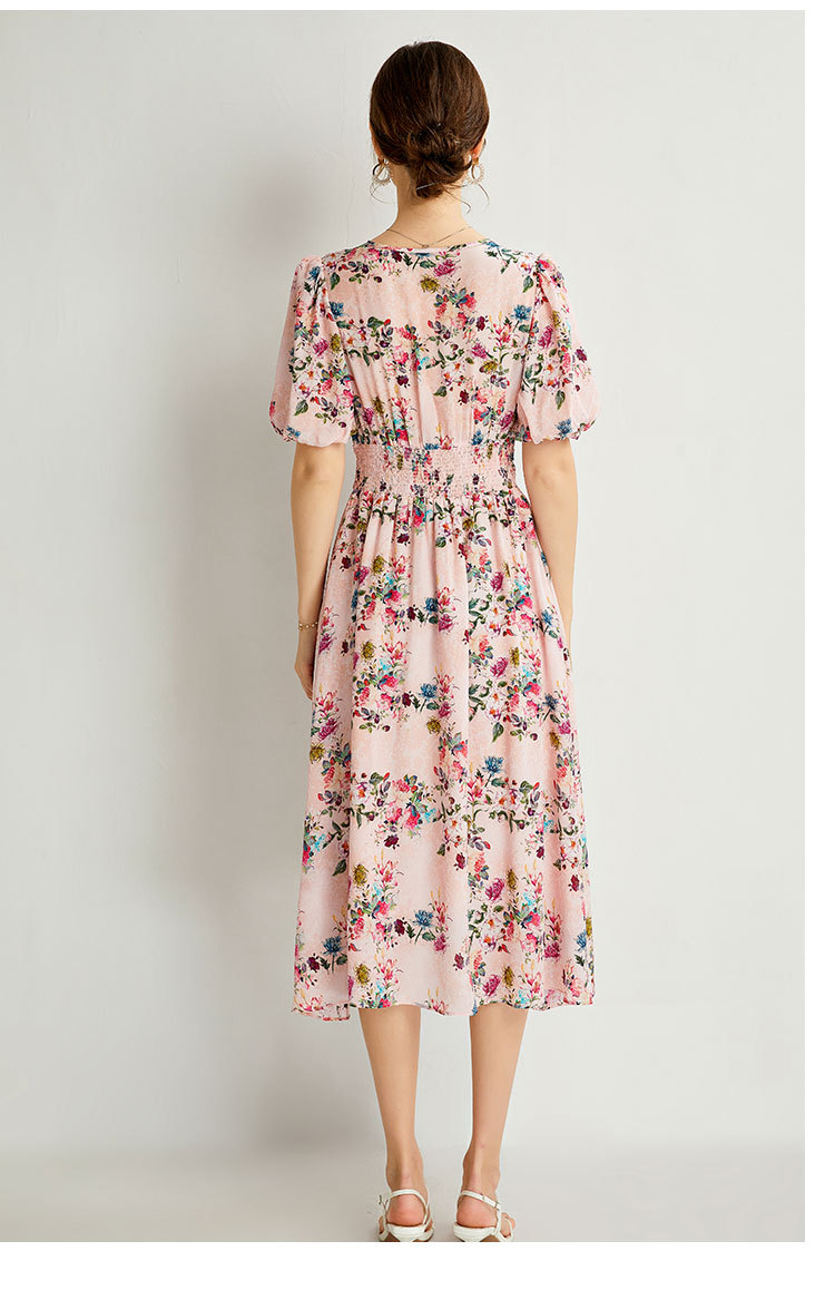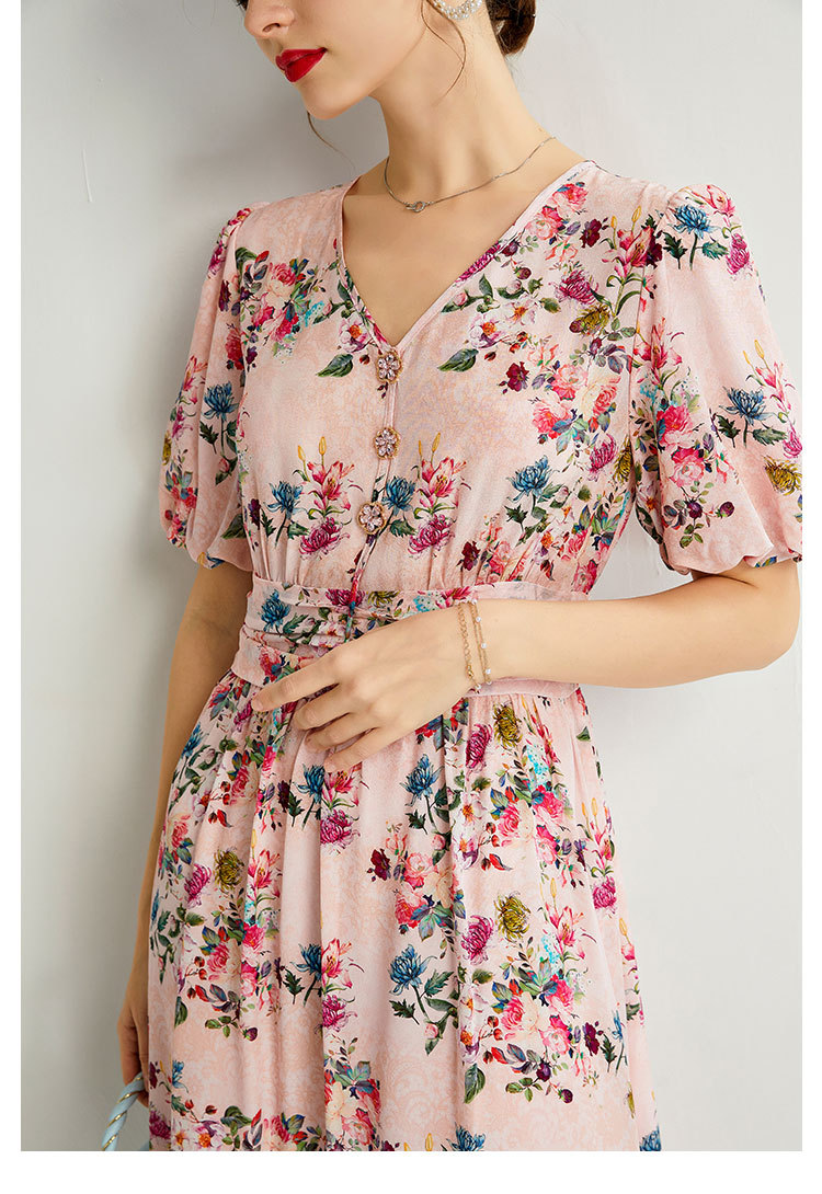 褶皱轻熟风双绉真丝,印花蚕丝连衣裙KBN-230120