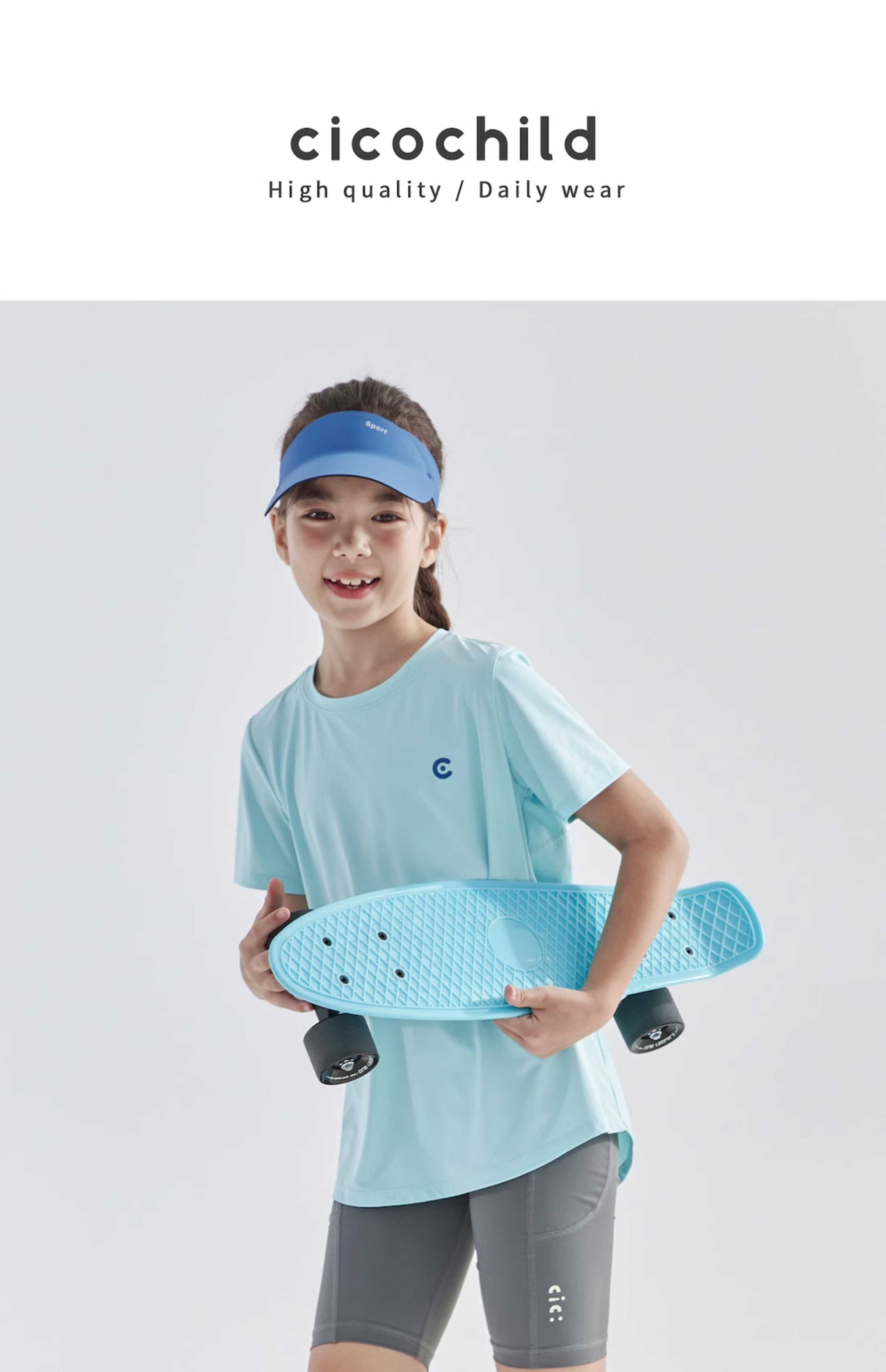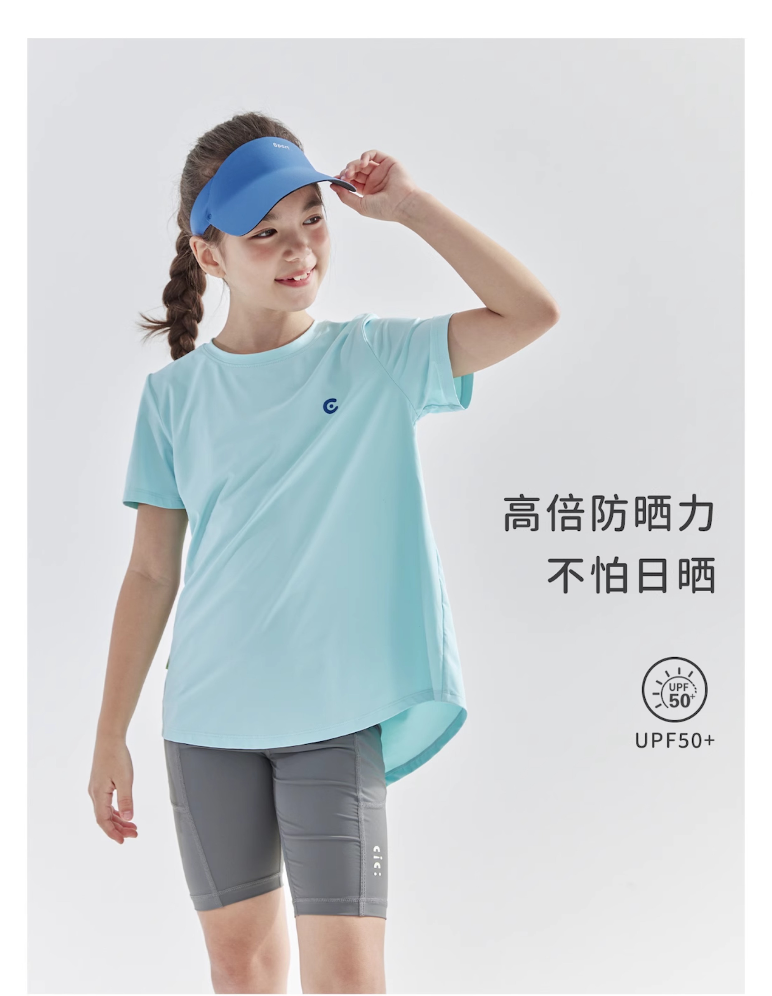 cicochild2025年夏季新款亲子款中大女童后背开衩短袖高弹透气T恤