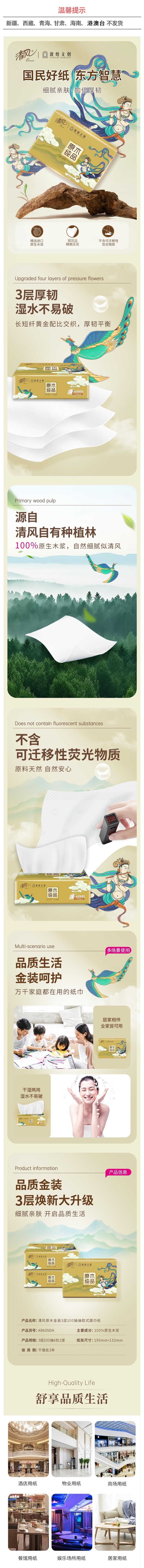 清风 敦煌文创原木纯品系列3层100抽纸巾6包/提 DH032049