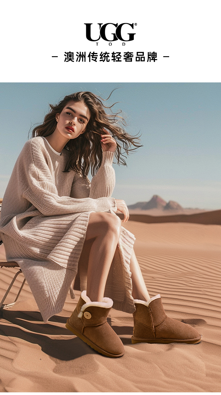 澳洲UGG经典侧边扣羊皮毛一体雪地靴