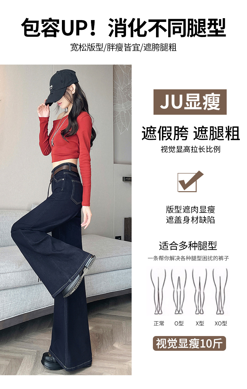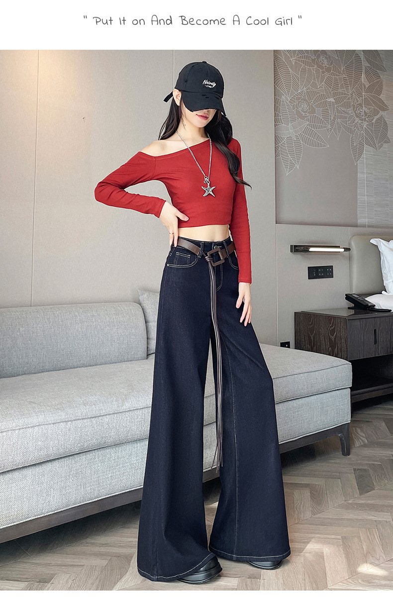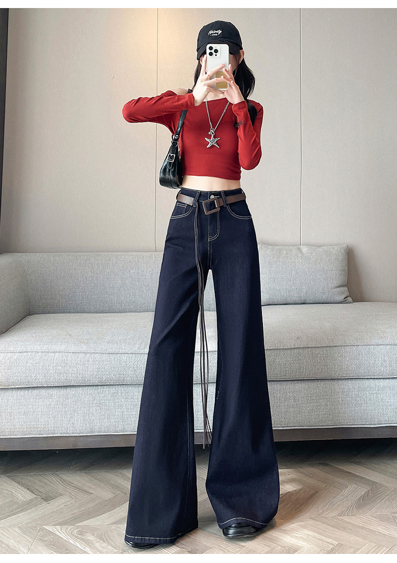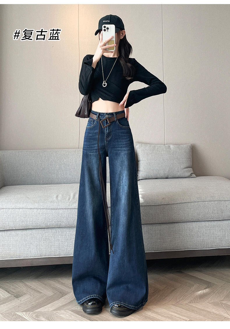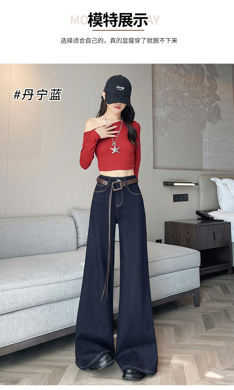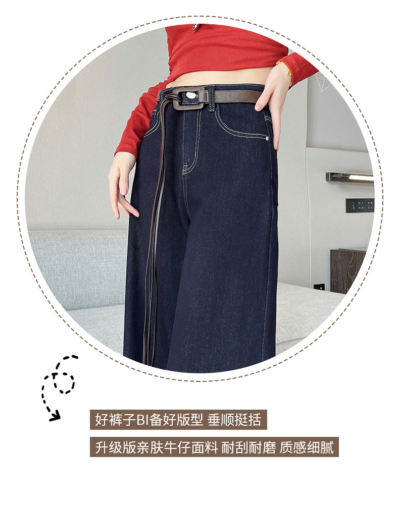 雀说黑金蓝阔腿牛仔裤女高腰宽松高级感慵懒风腰带喇叭裤AL8096
