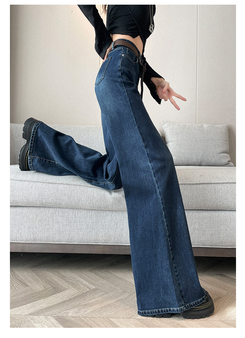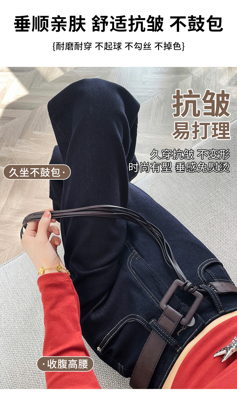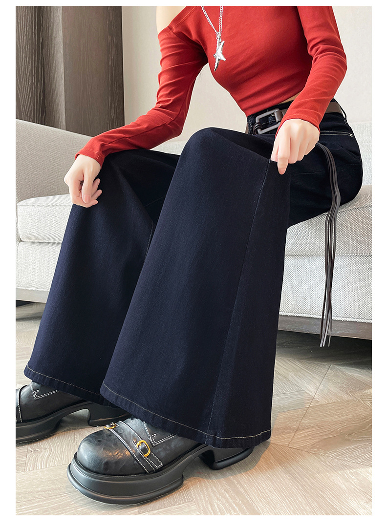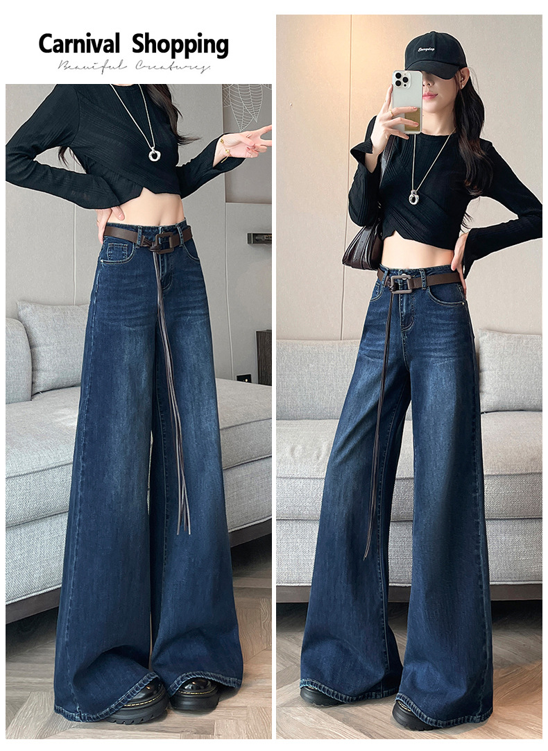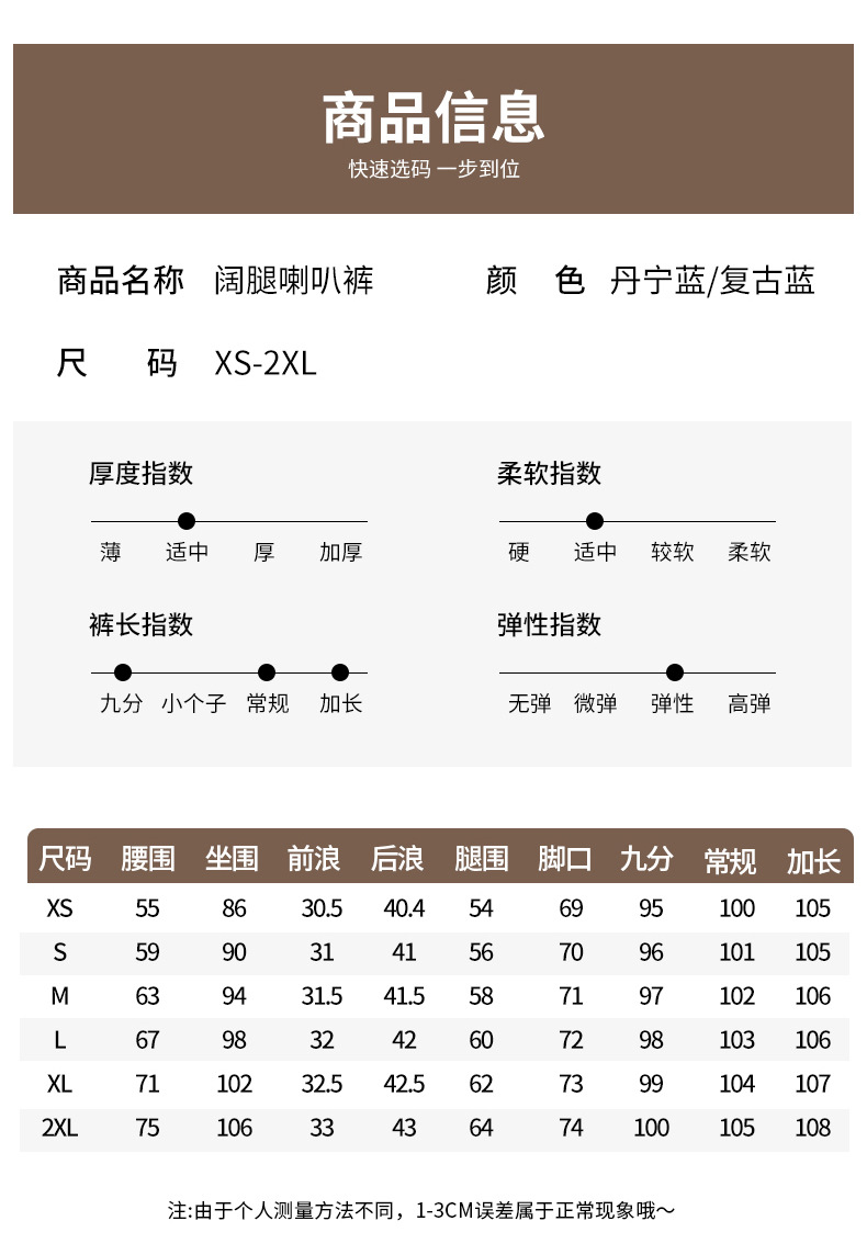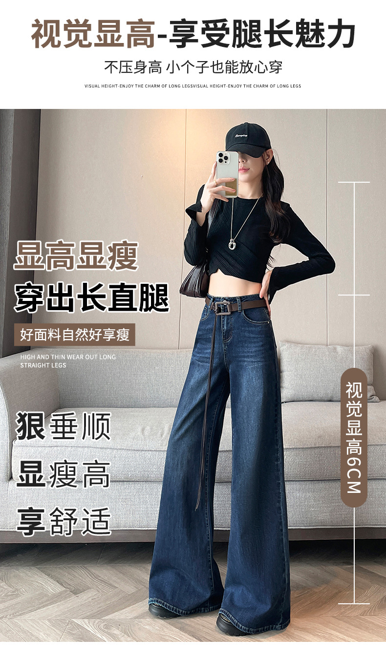 雀说黑金蓝阔腿牛仔裤女高腰宽松高级感慵懒风腰带喇叭裤AL8096