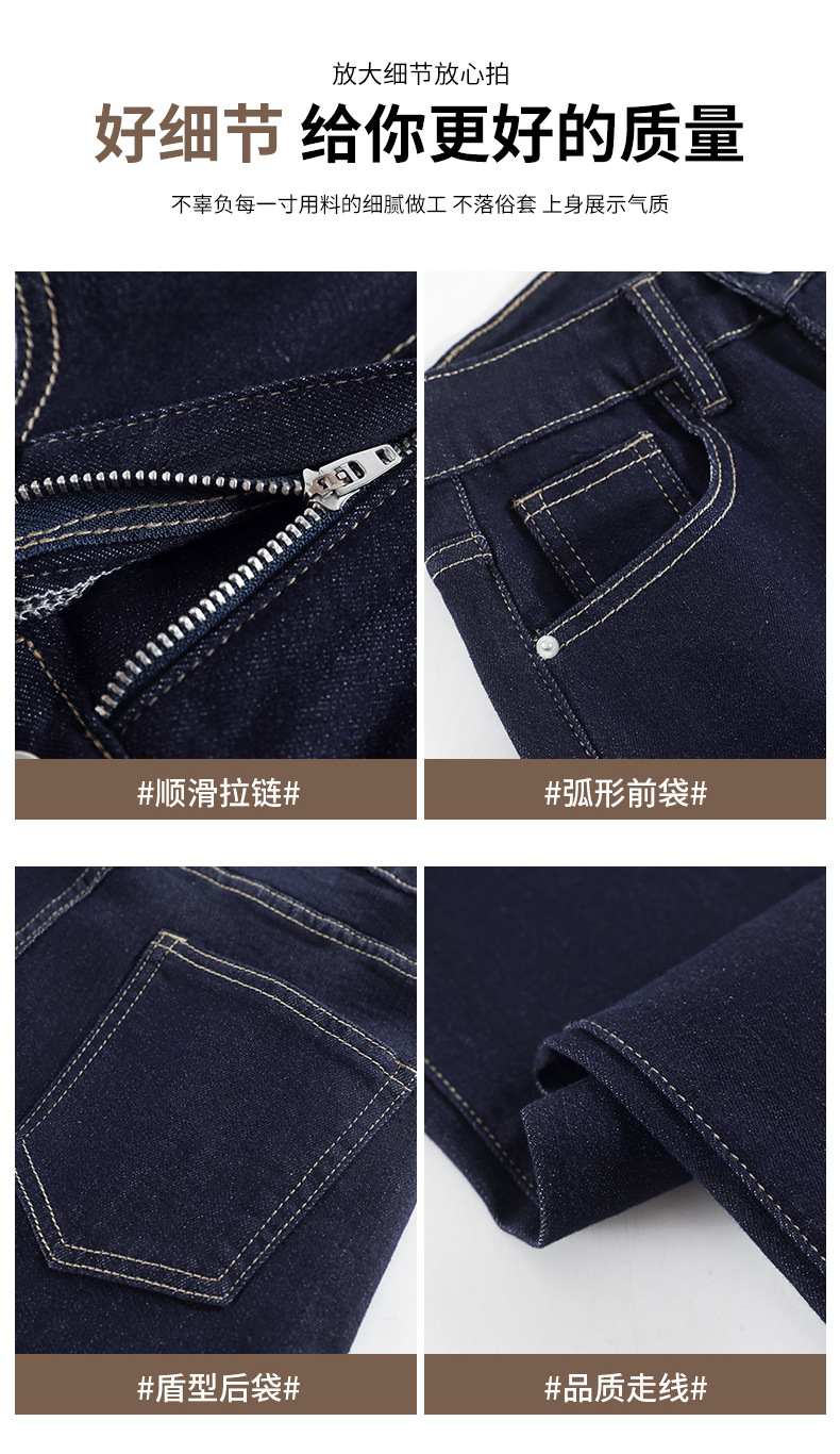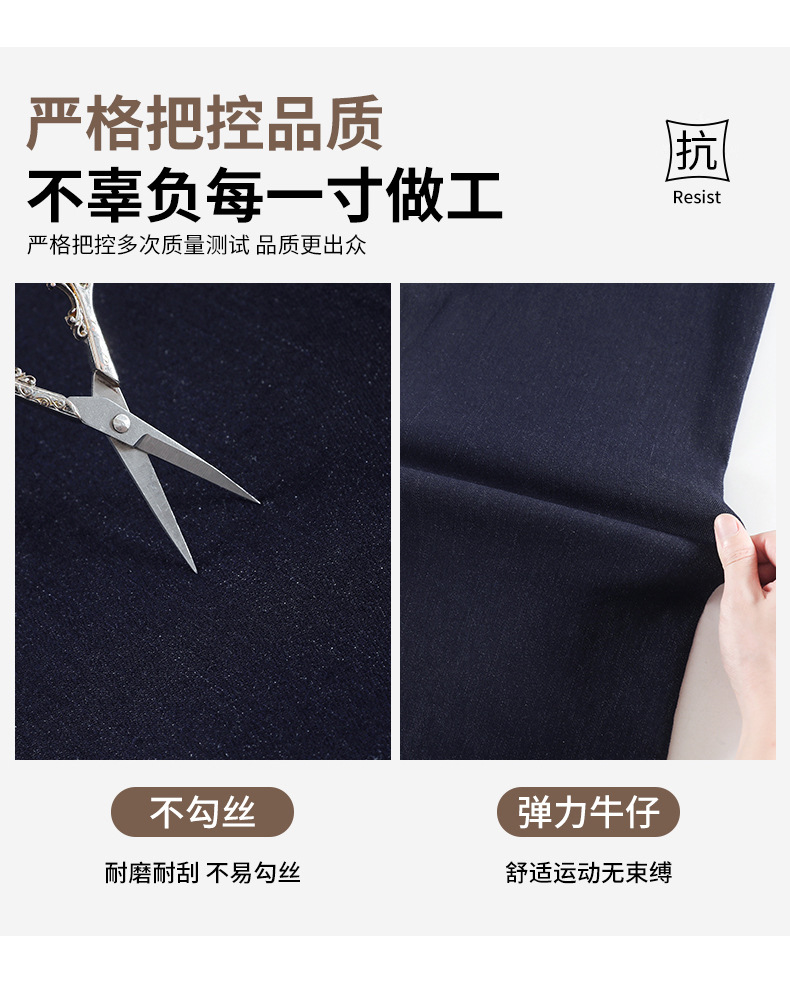 百媚生 松紧腰系带牛仔裤女直筒裤休闲长裤325083