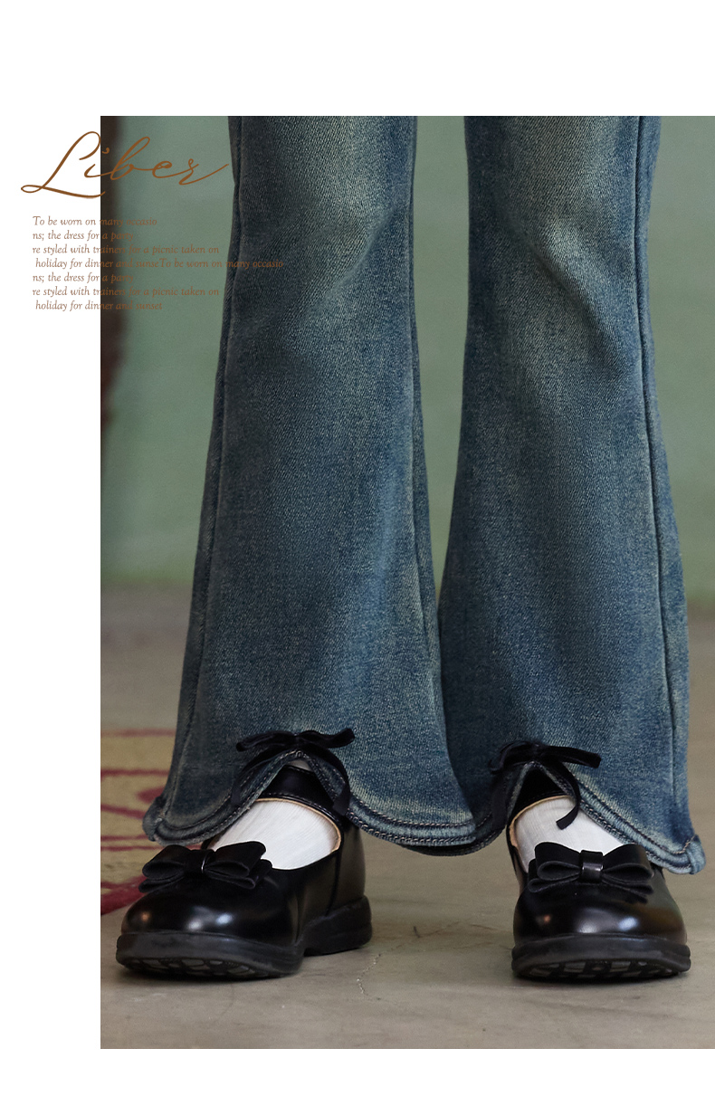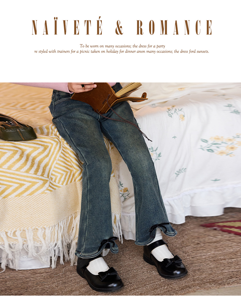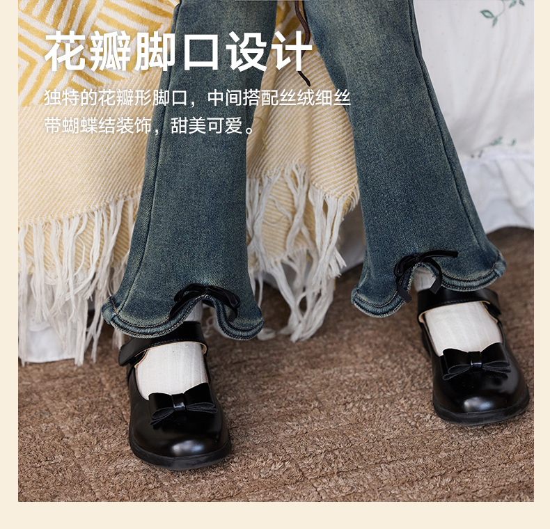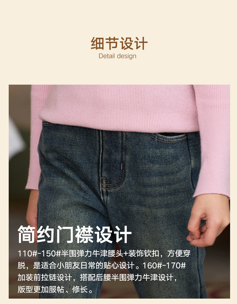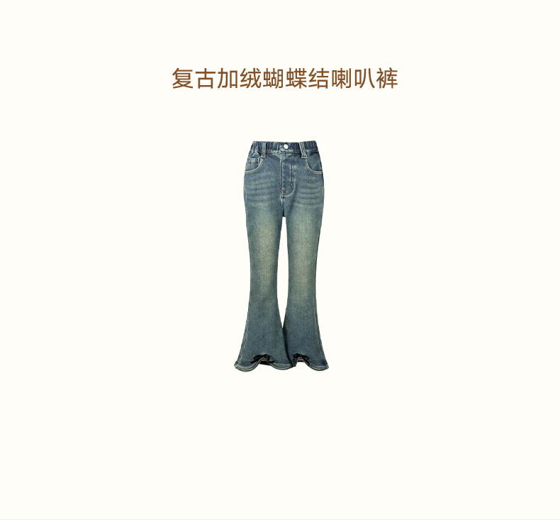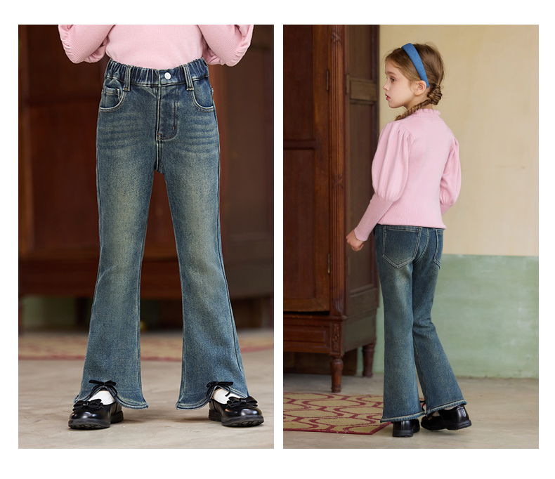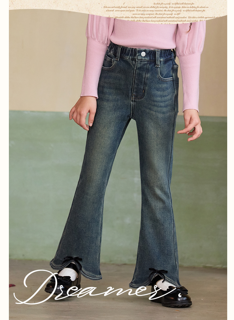 LittleNaive女童一体绒弹力牛仔裤冬季加厚牛仔裤儿童加绒喇叭裤