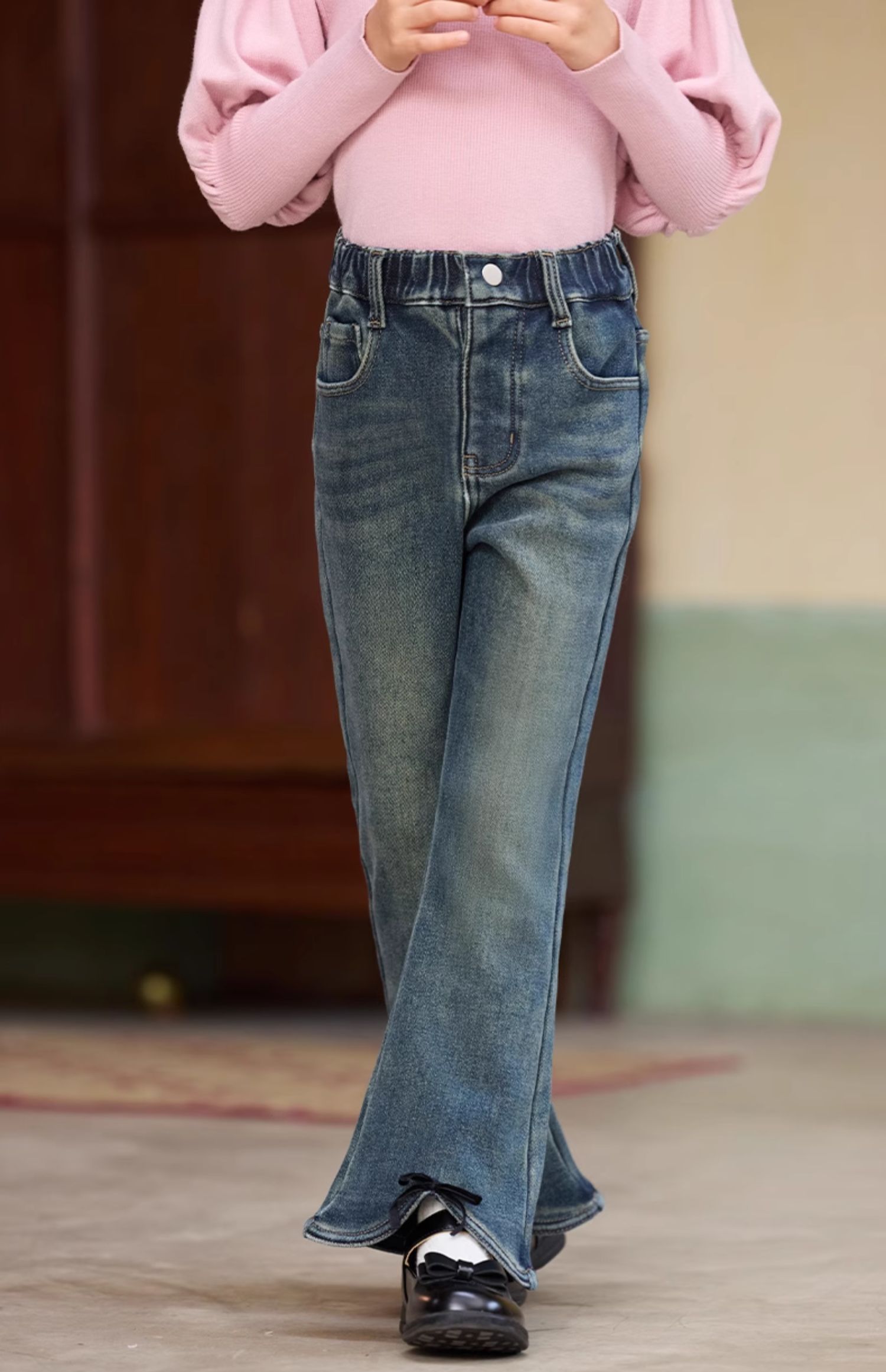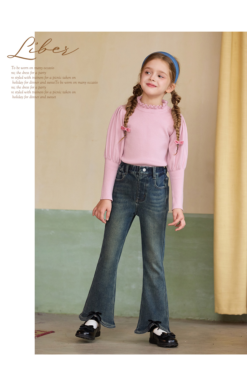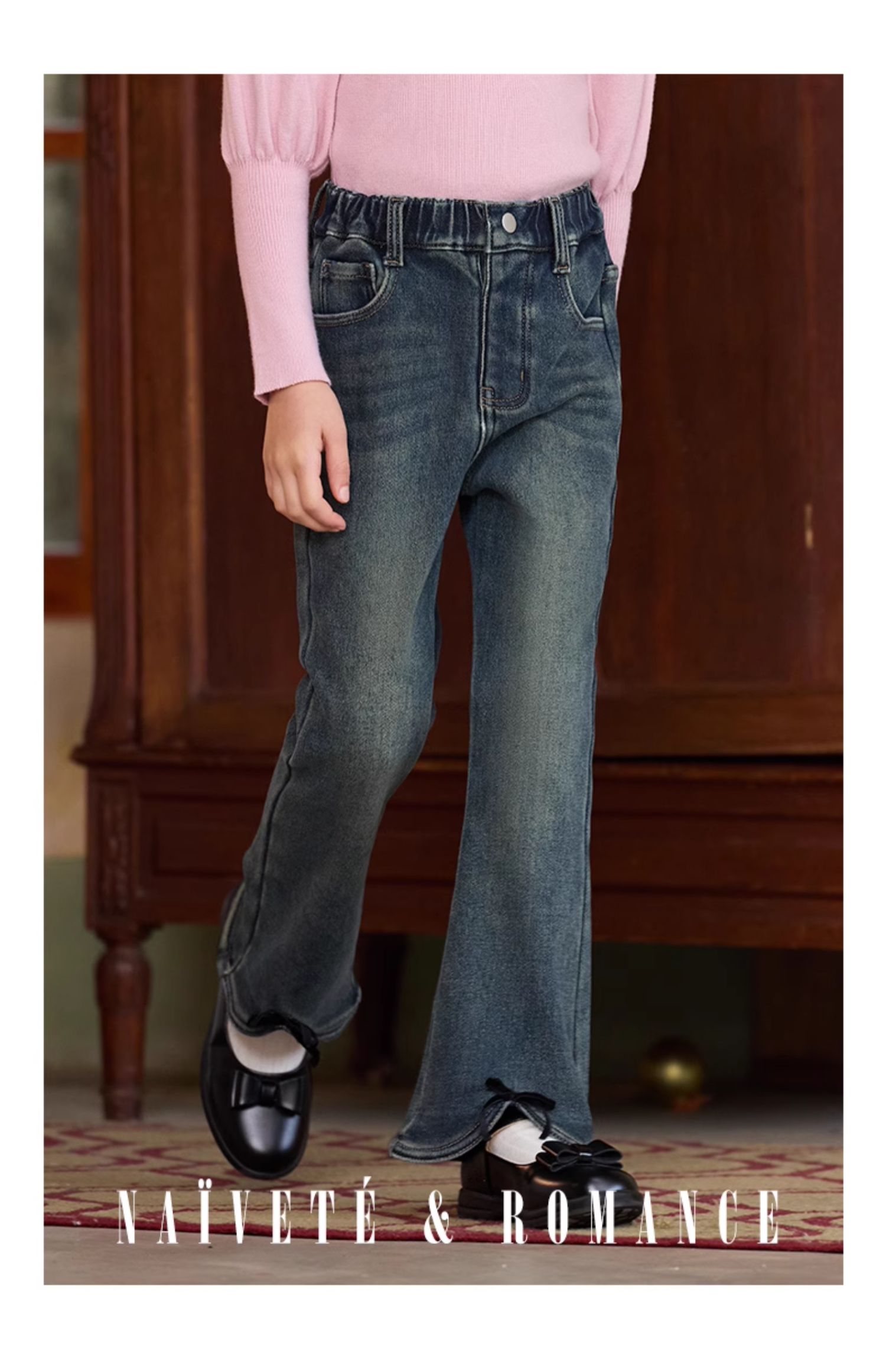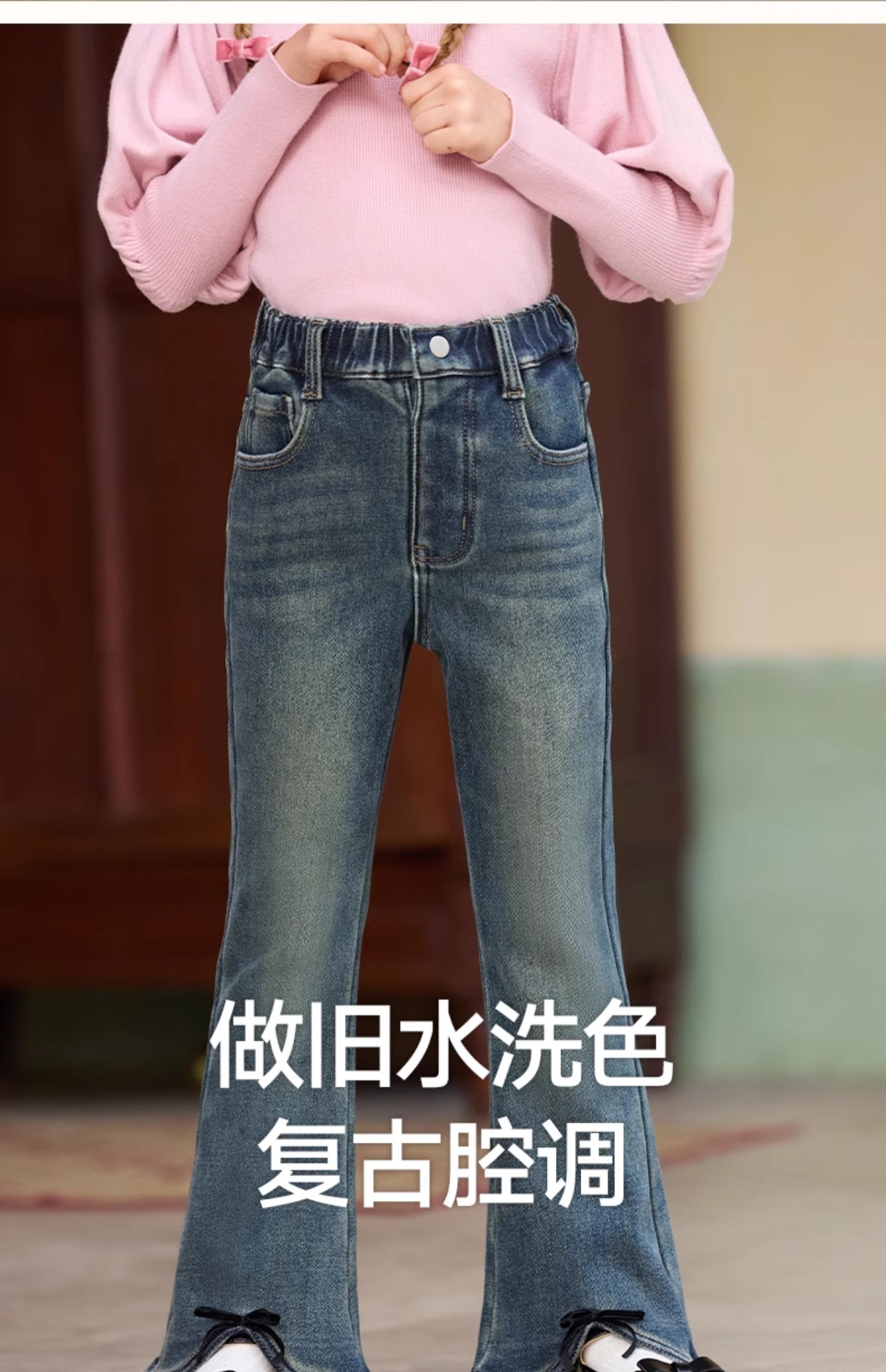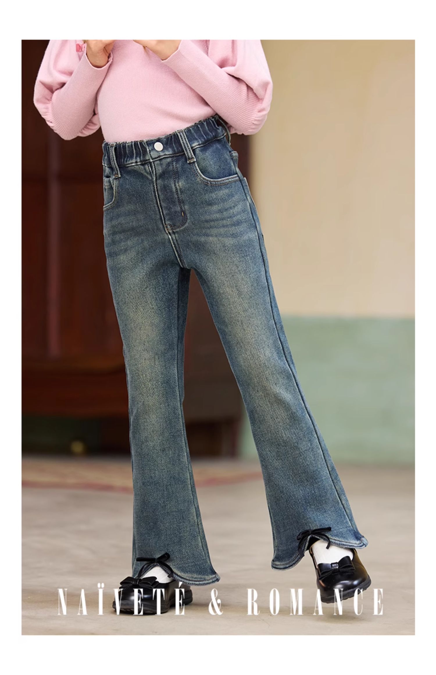 LittleNaive女童一体绒弹力牛仔裤冬季加厚牛仔裤儿童加绒喇叭裤