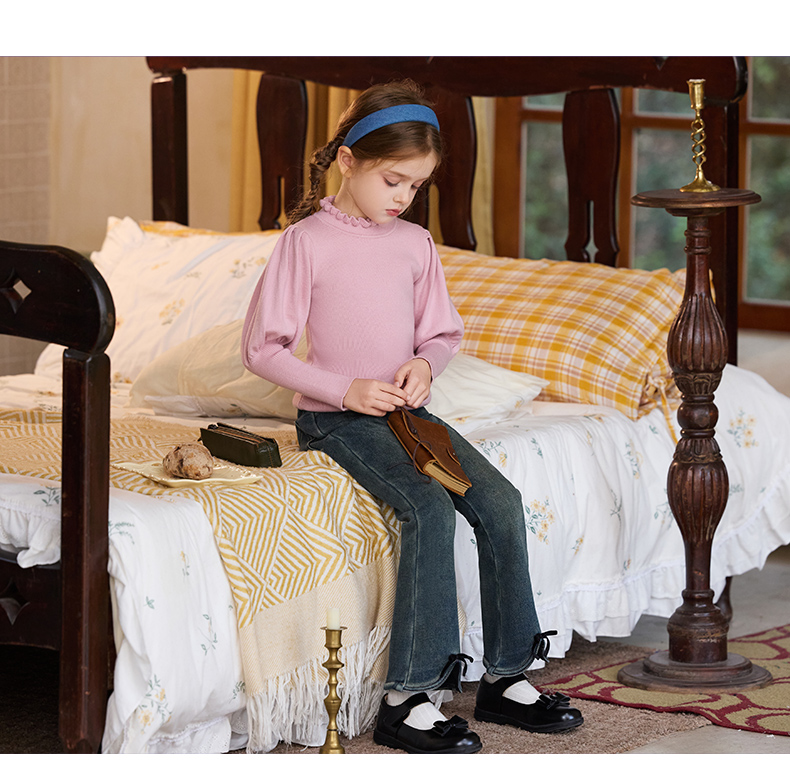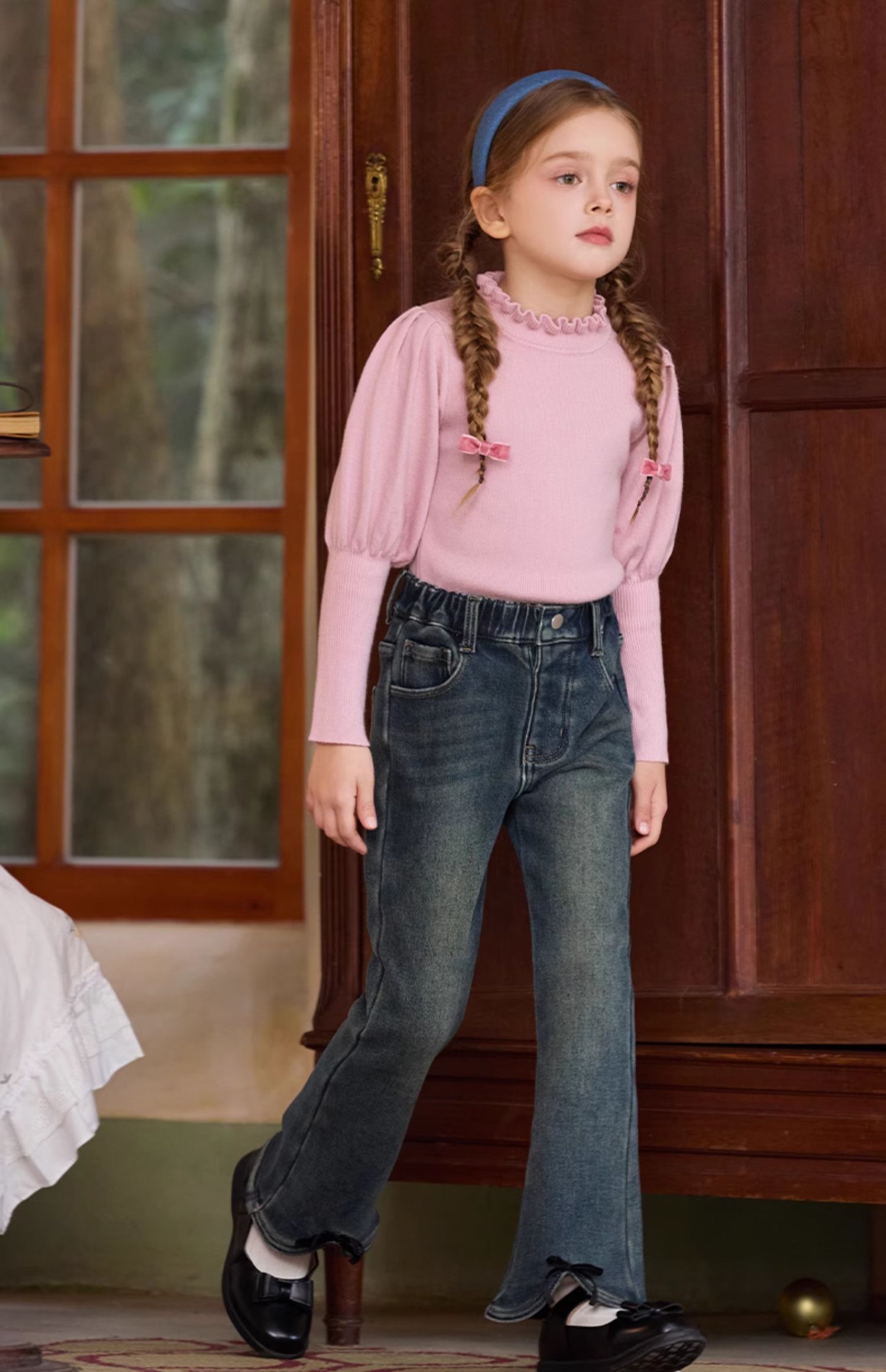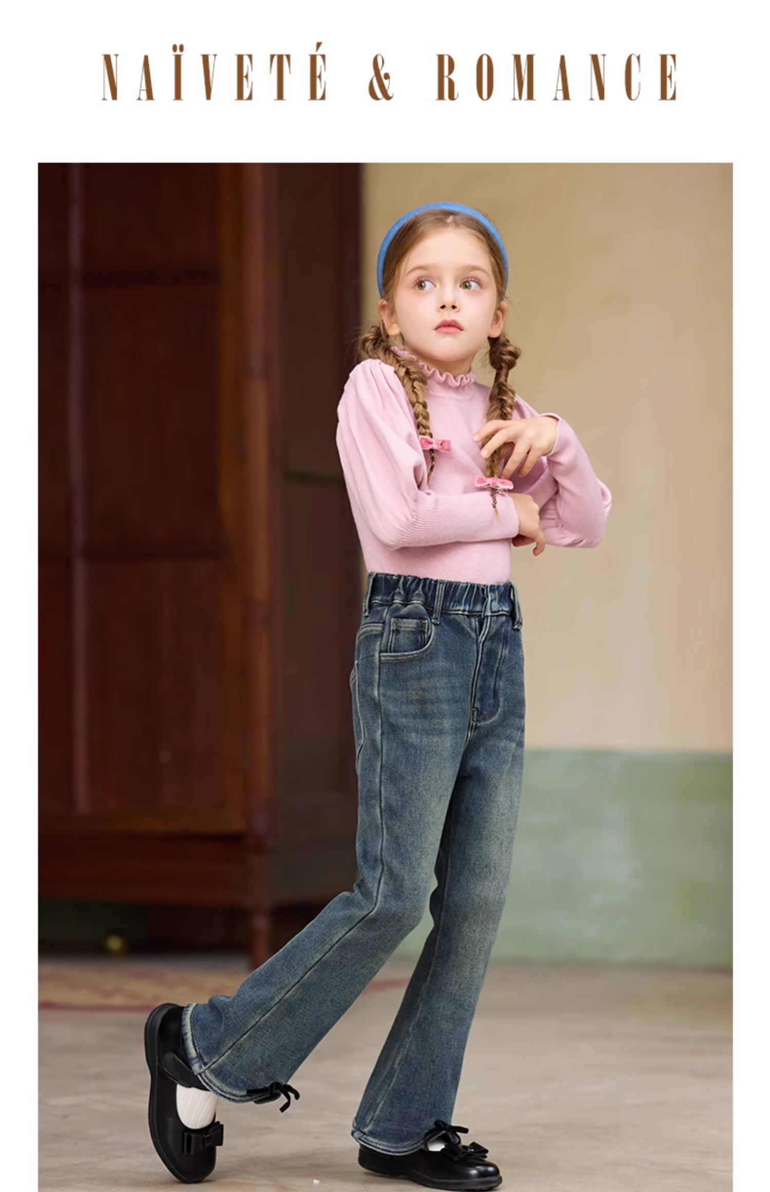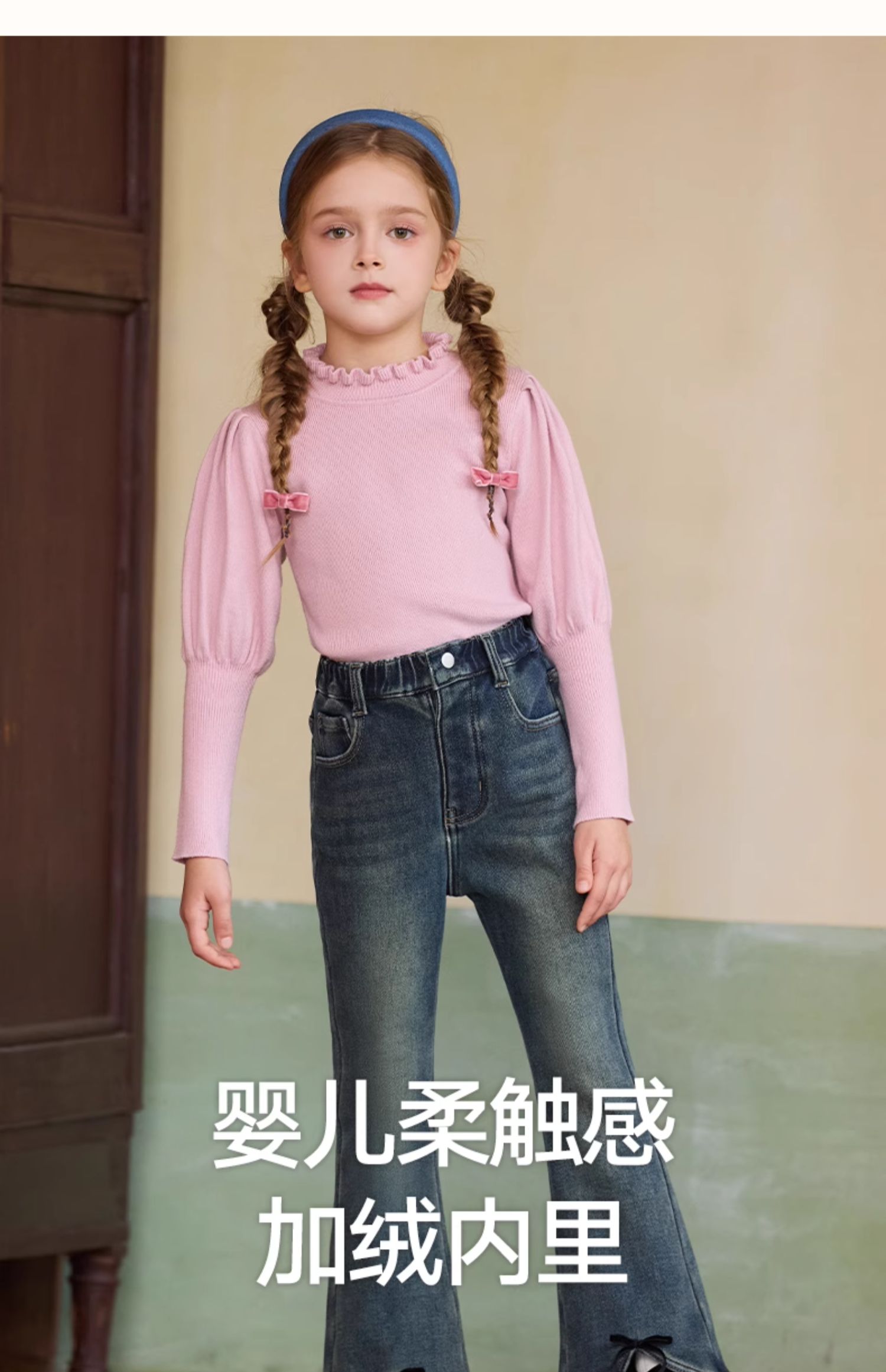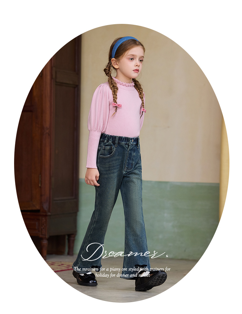 LittleNaive女童一体绒弹力牛仔裤冬季加厚牛仔裤儿童加绒喇叭裤
