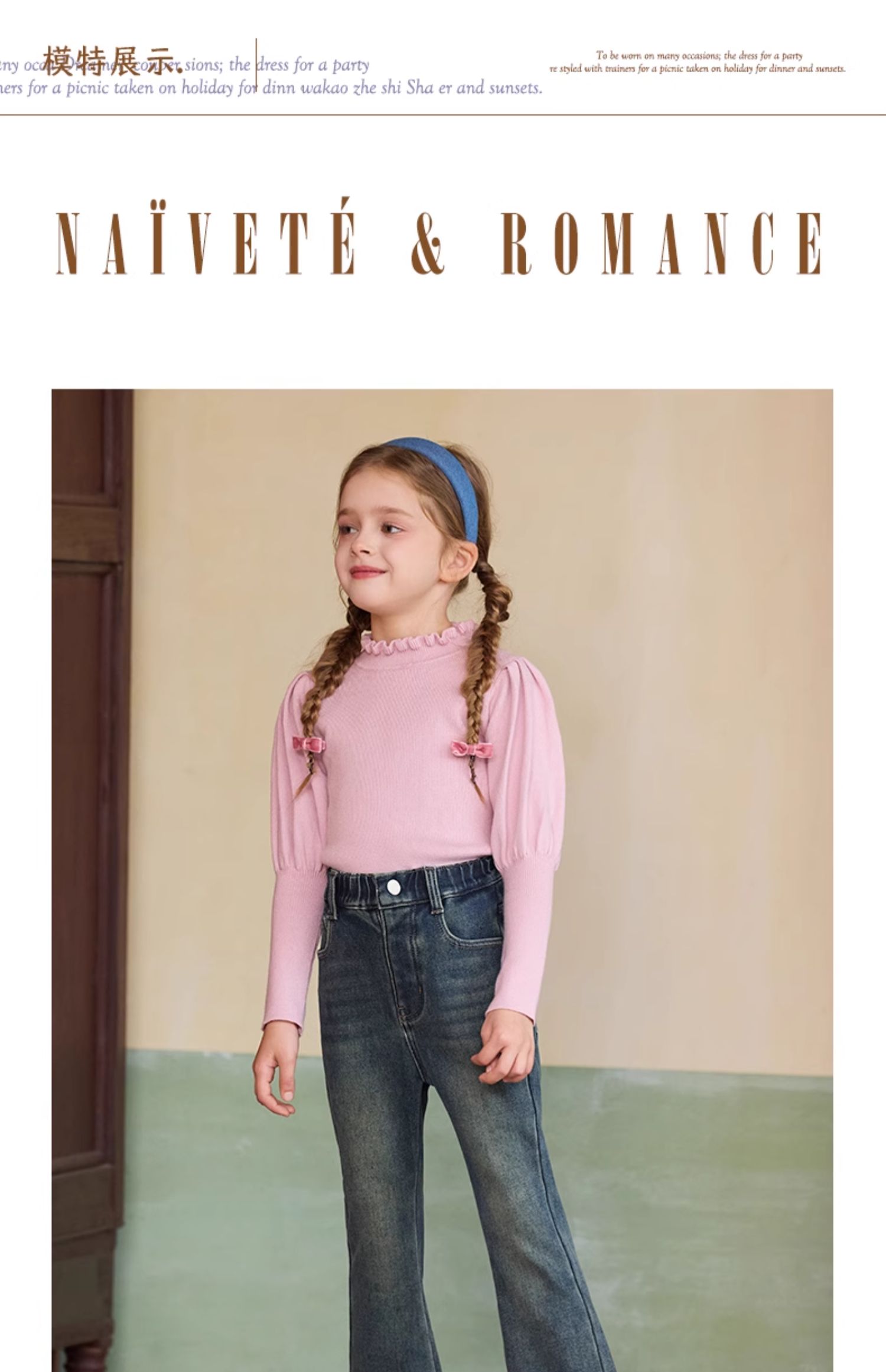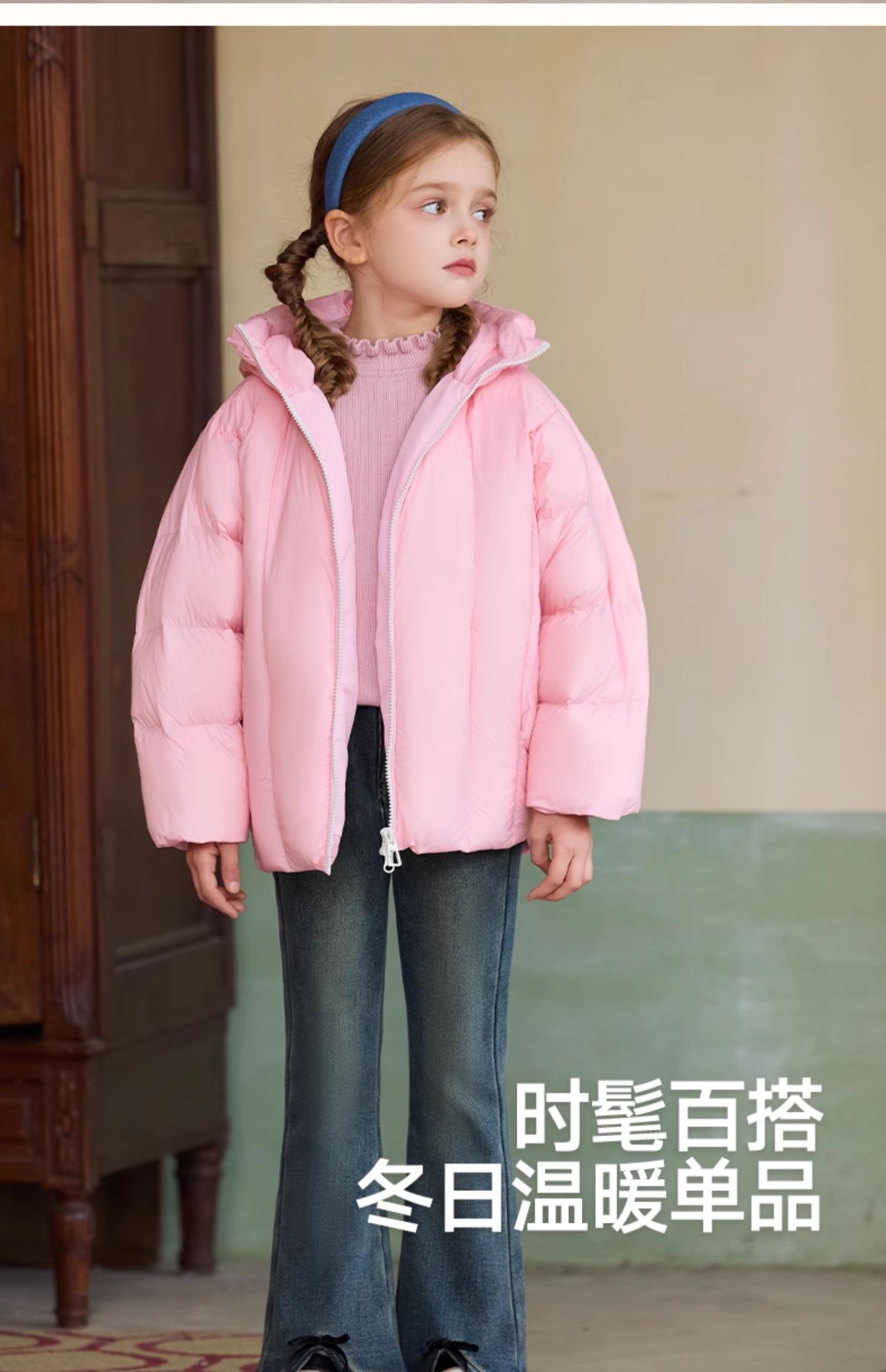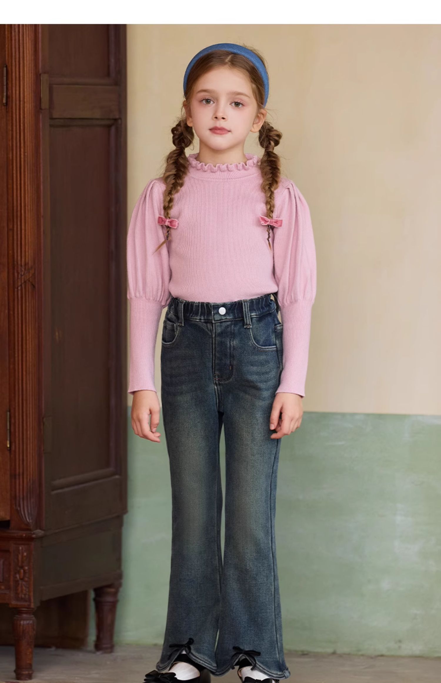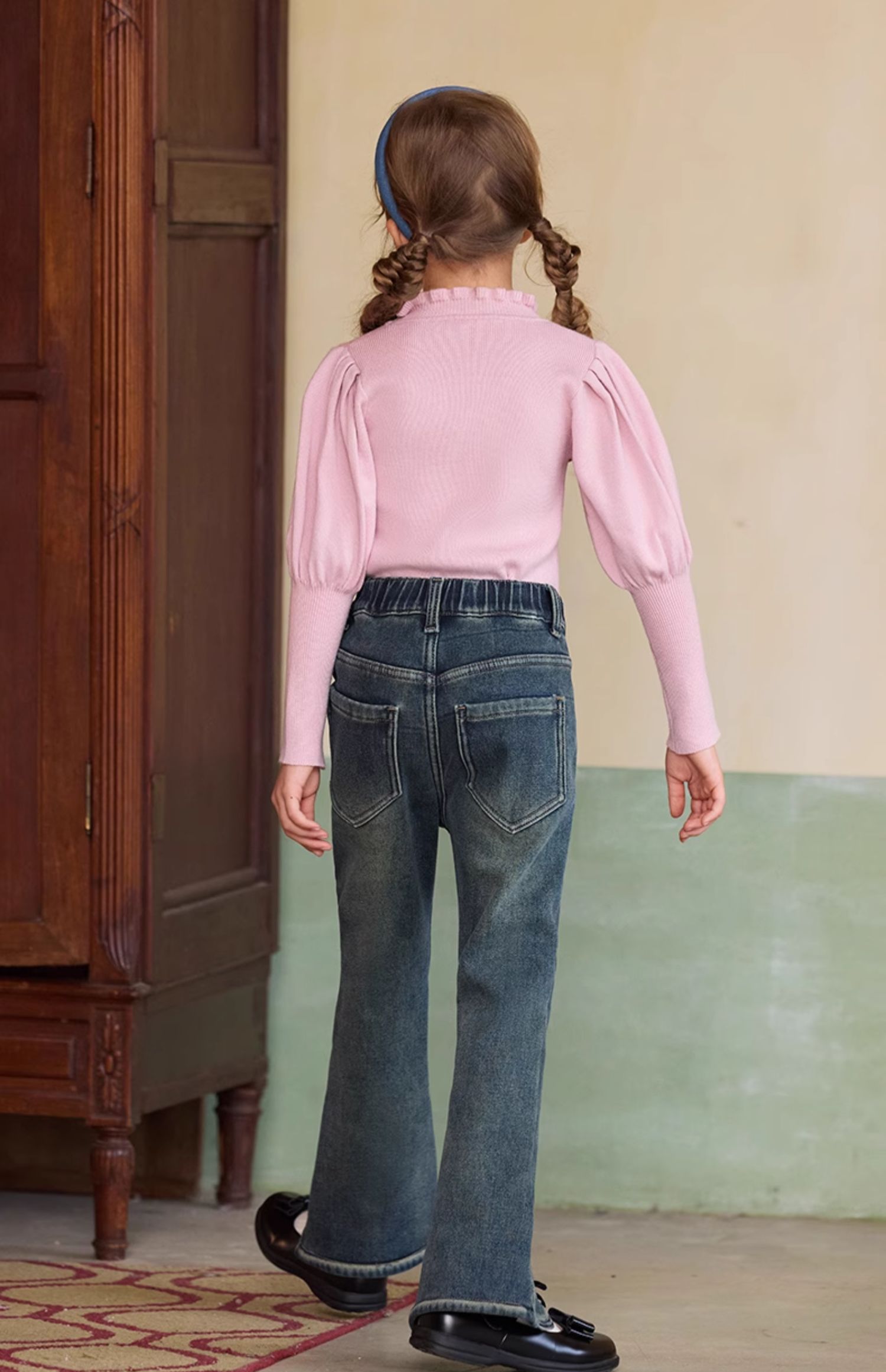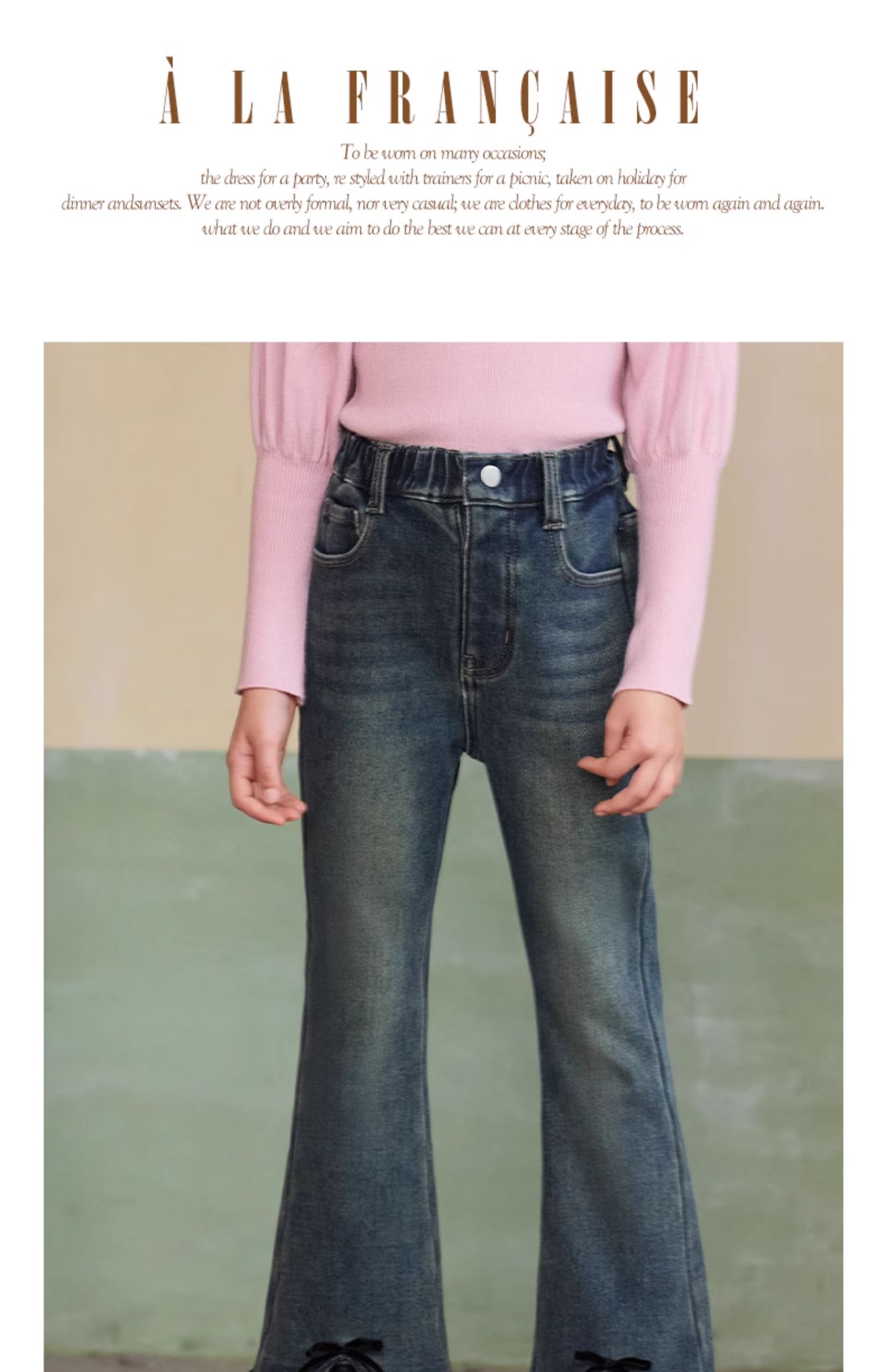 LittleNaive女童一体绒弹力牛仔裤冬季加厚牛仔裤儿童加绒喇叭裤