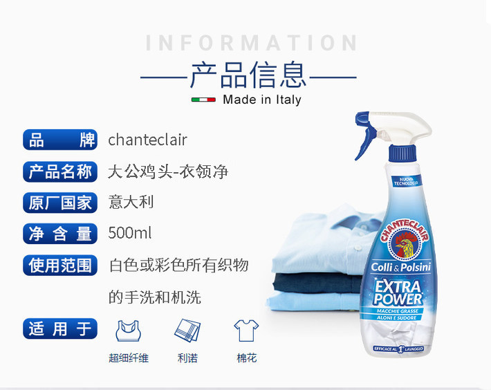 500ml大公鸡头衣领袖口清洁剂 呵护衣物不伤手