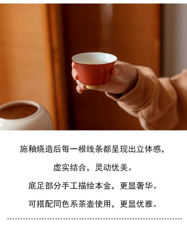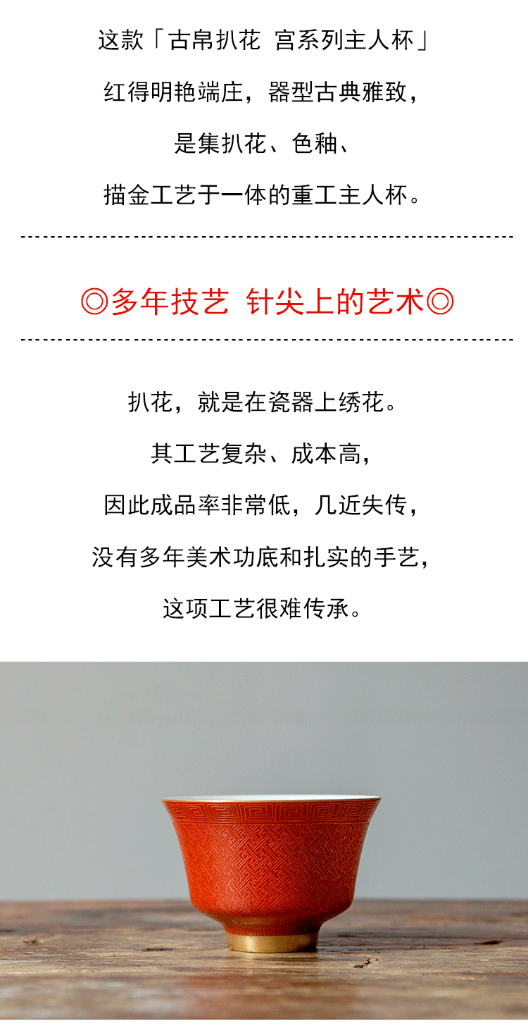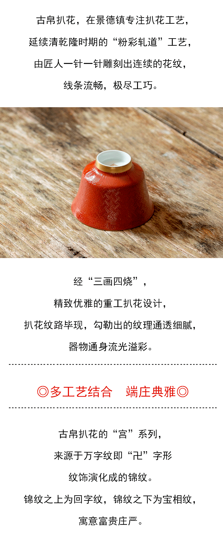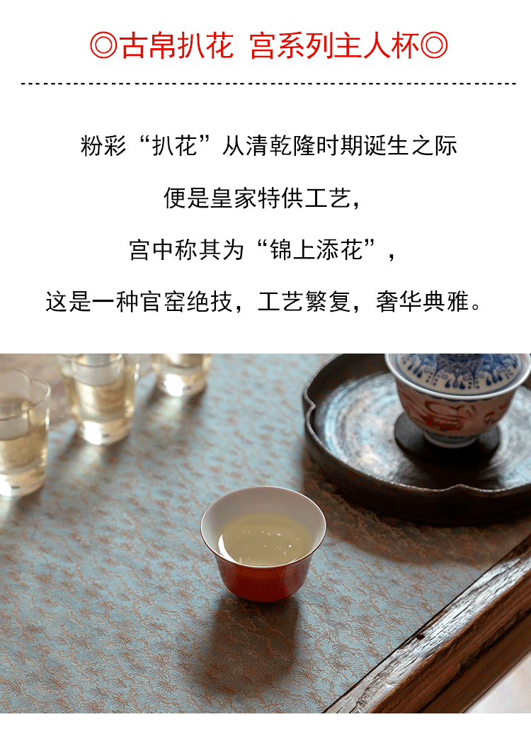 茶香记 景德镇古帛扒花宫系列配杯70ml陶瓷茶杯主人杯传统大气