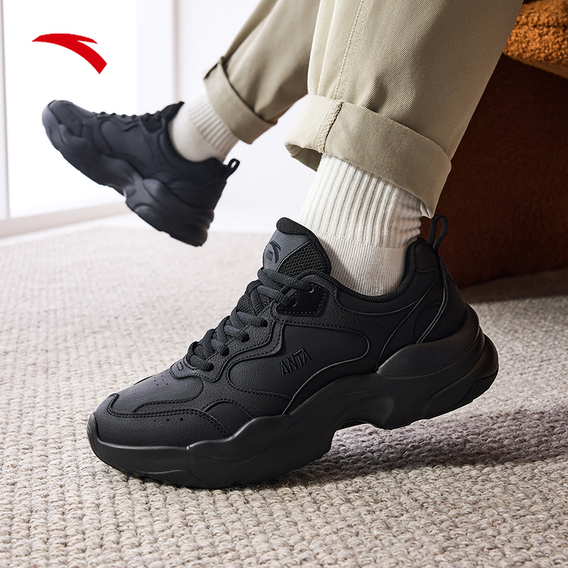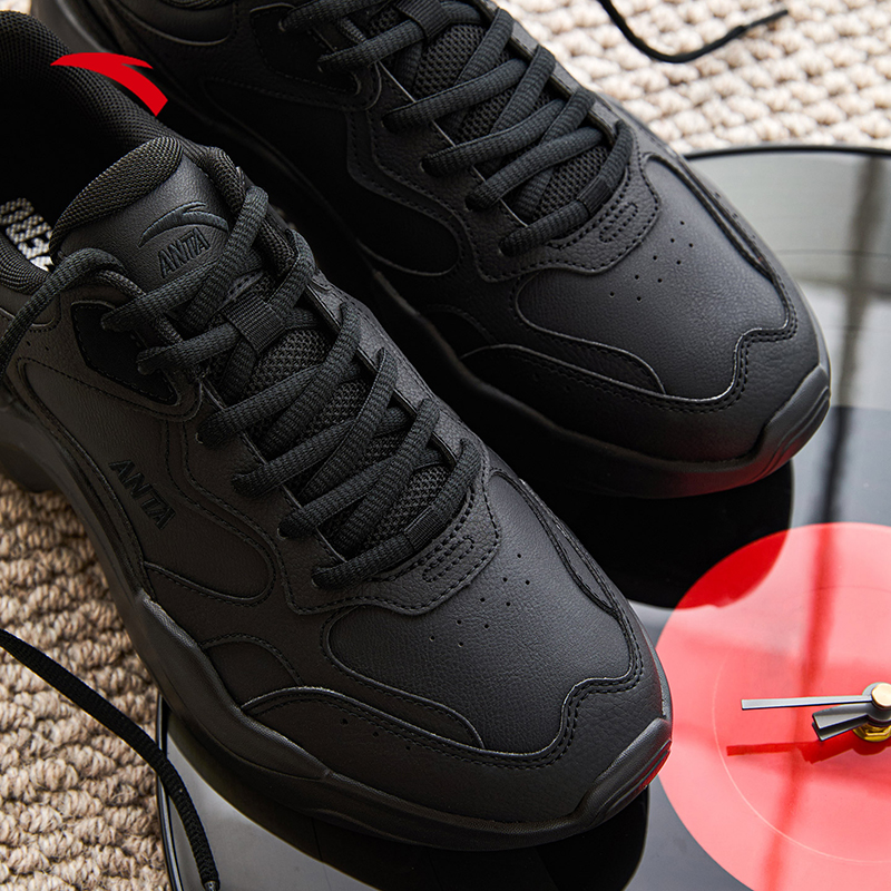 【399任选2件】安踏经典休闲鞋男厚底舒适软度运动鞋百搭时尚黑色男鞋112538814