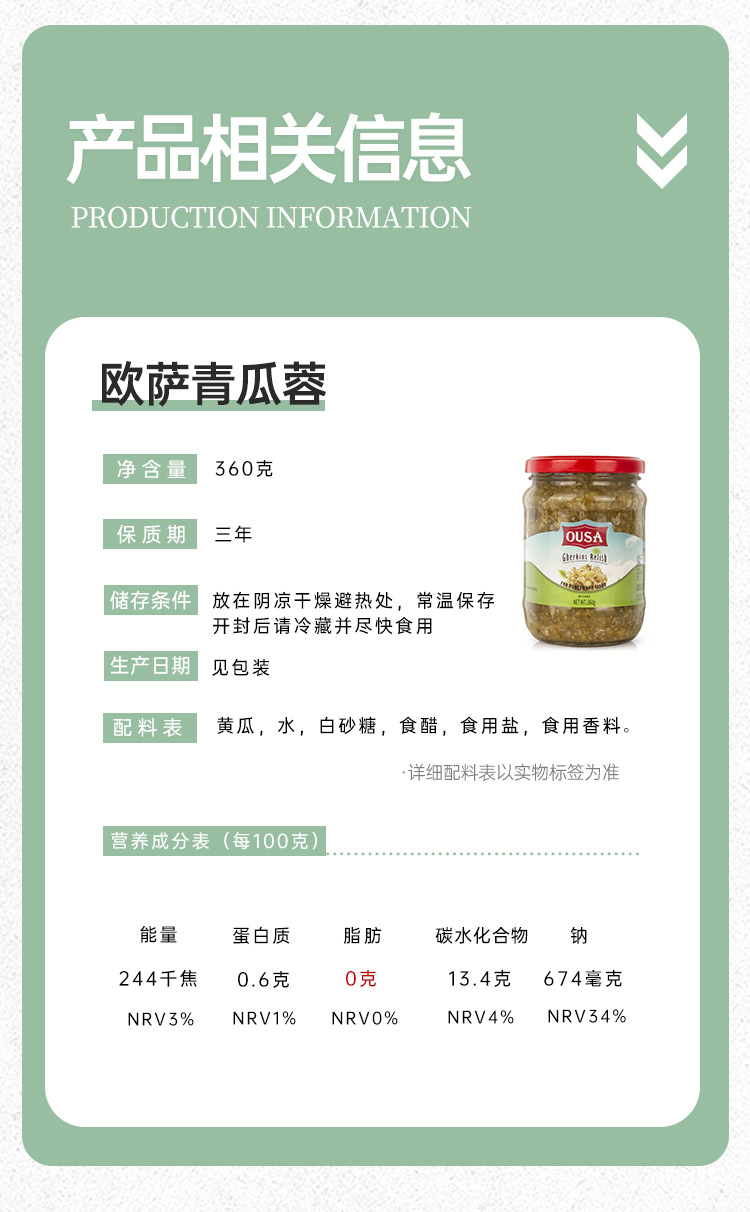 欧萨青瓜蓉360g