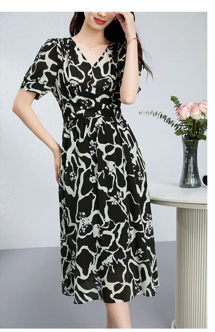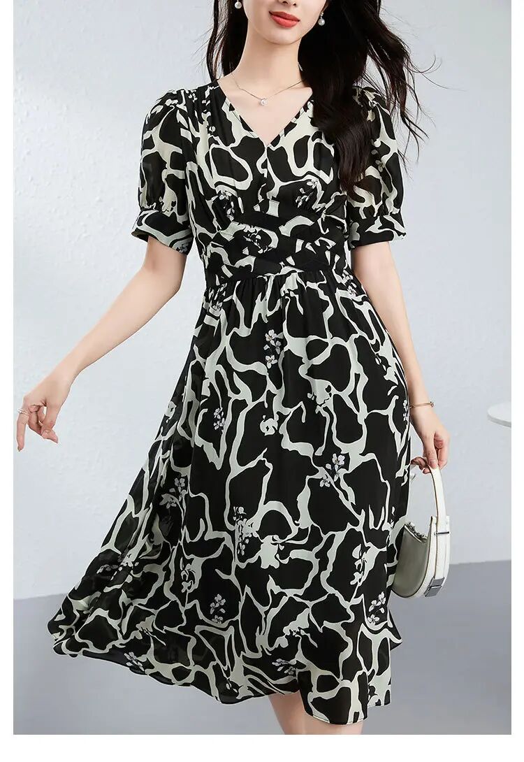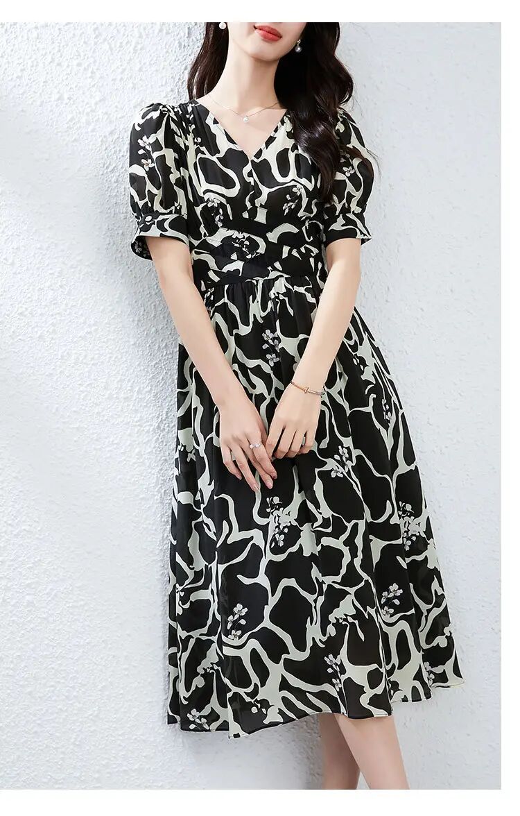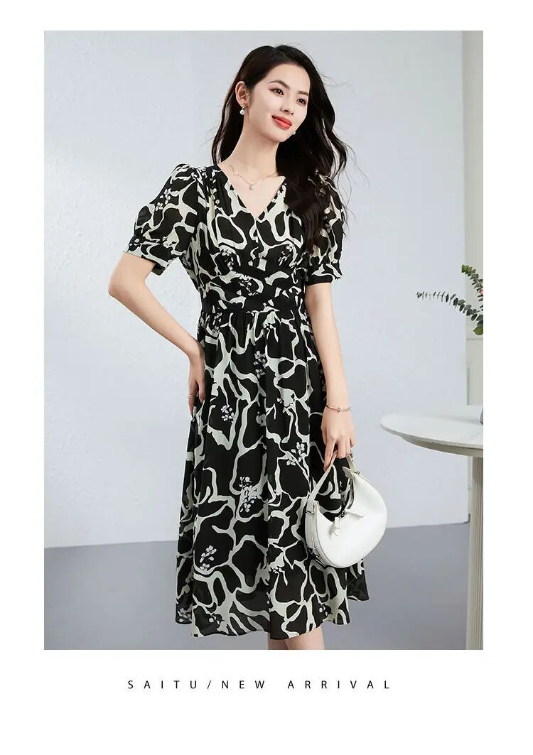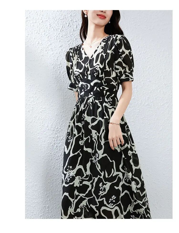 【高货kbnq】全新升级【铂金会员441/天猫599/差价158】(03119) 洛诗琳桑蚕丝连衣裙轻奢高级感纯欲风高品质印花a字长裙