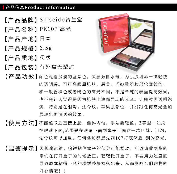 资生堂PK107高光粉饼蜜粉饼6.5g
