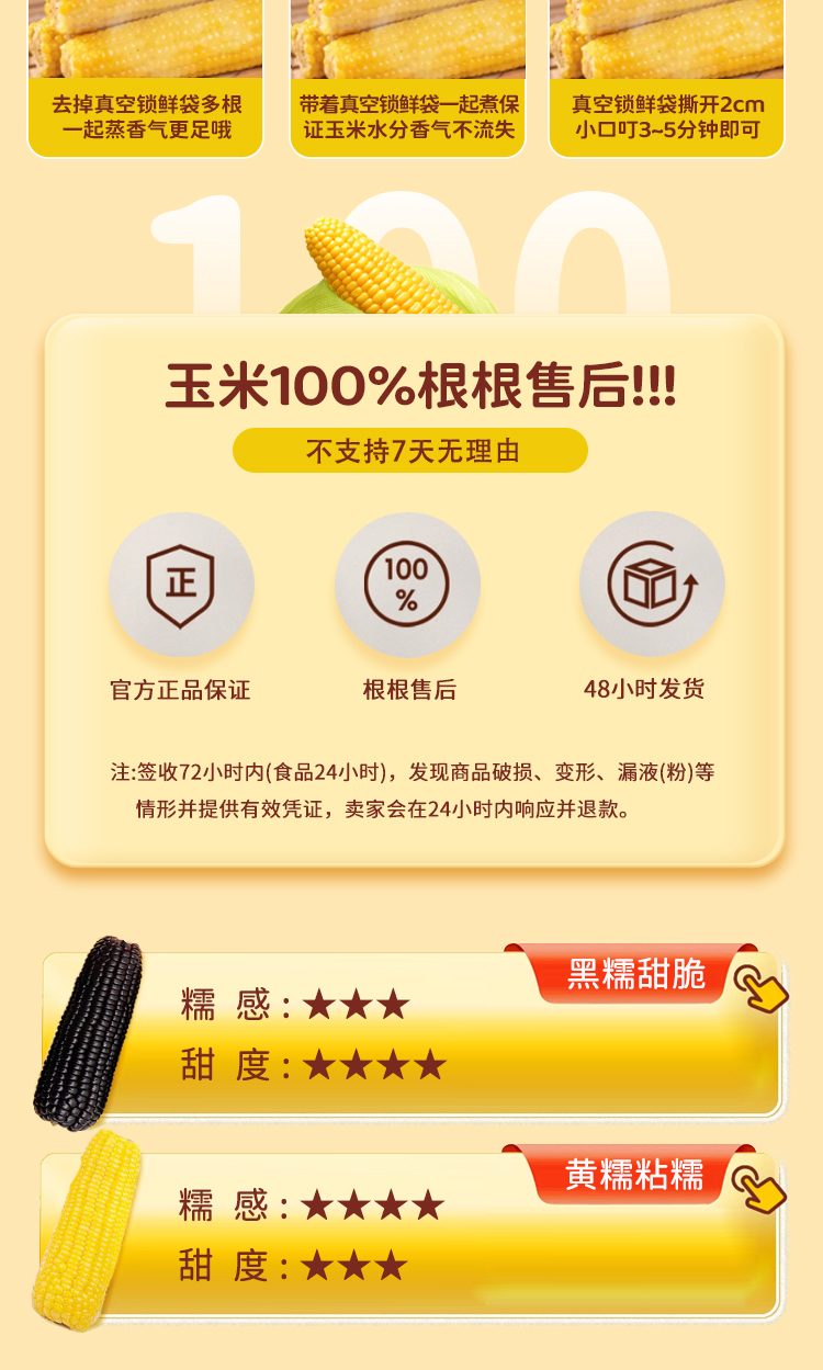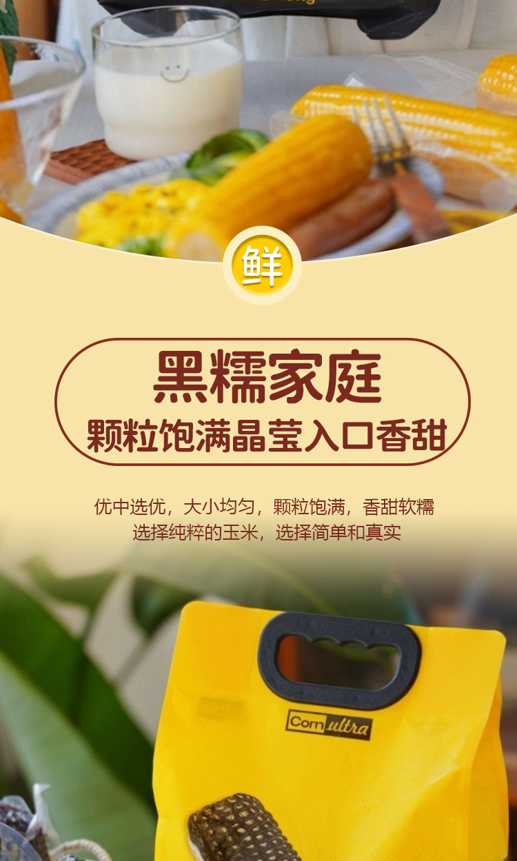【品名】黑金时刻黄糯玉米/黑糯玉米 【规格】家庭装1.3kg/袋(6根) 【保质期】12个月 【储存方法】常温或冷藏(0-4℃)保存,请勿置于阳光直射处暴晒 【产地】黑龙江 【发货地】黑龙江 【发货快递】中通,邮政 【不发货区域】新疆,西藏,港澳台地区不发 【补邮费地区】青海+7元 【发货时效】48小时,节假日顺延 |